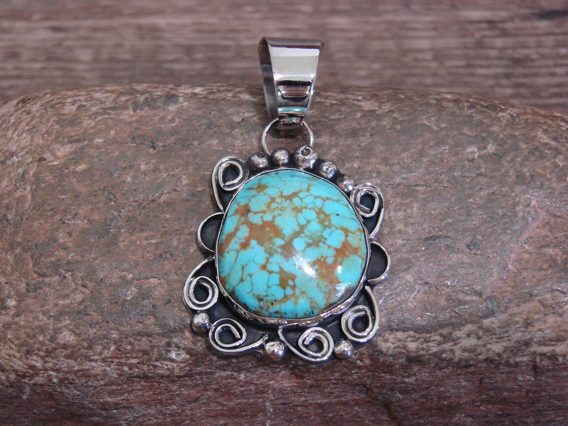 Native American Nickel Silver & Turquoise Pendant - Cleveland