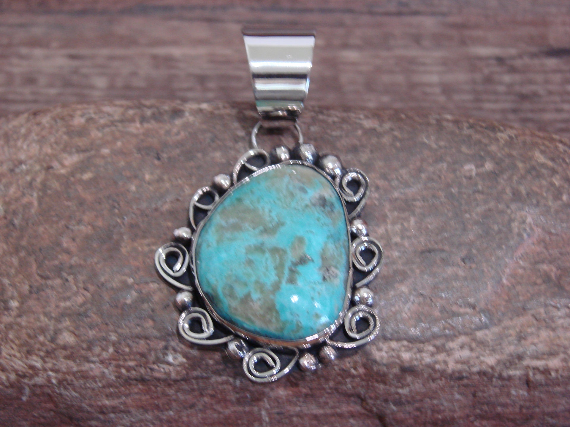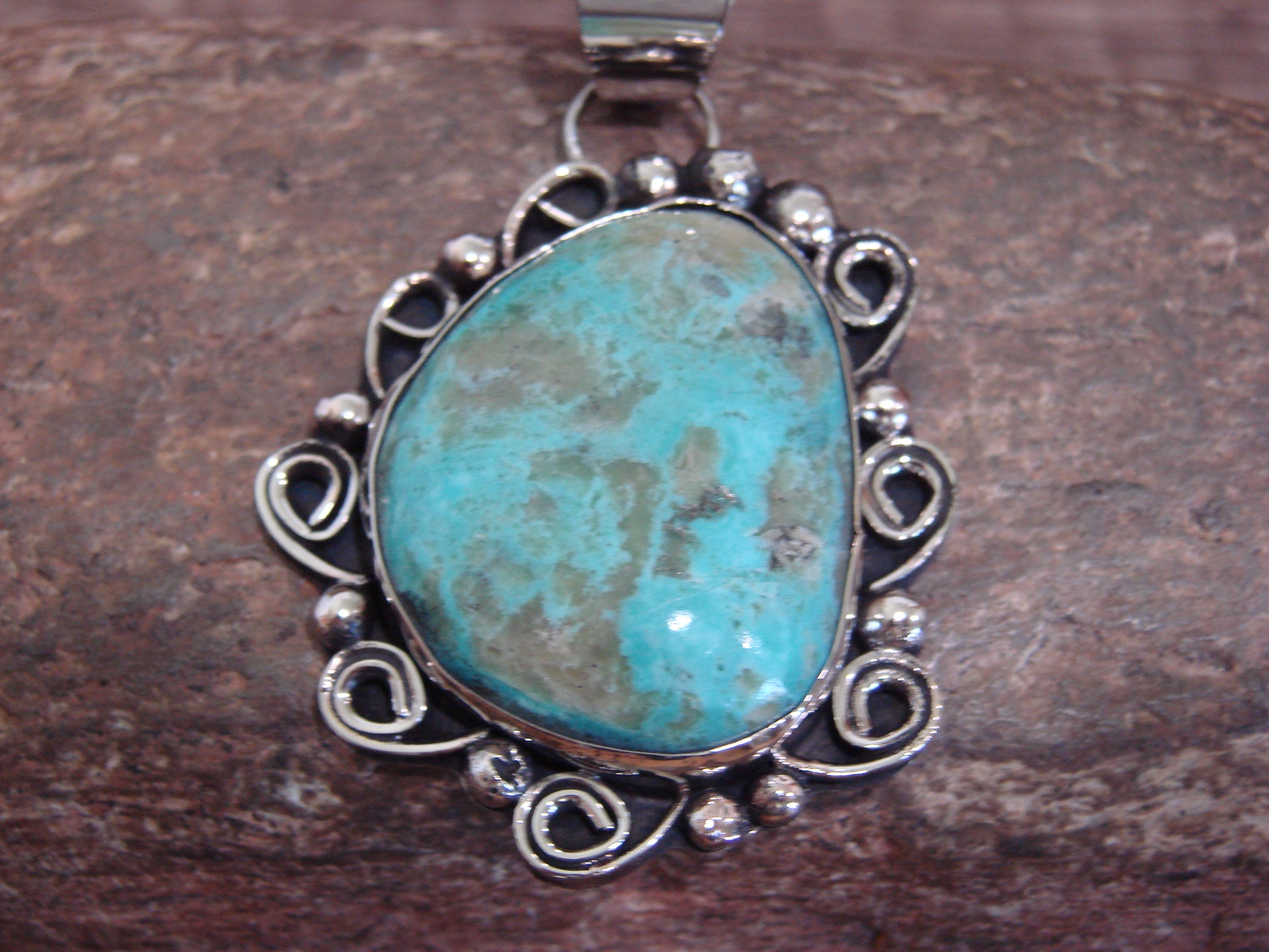 Native American Nickel Silver & Turquoise Pendant - Cleveland