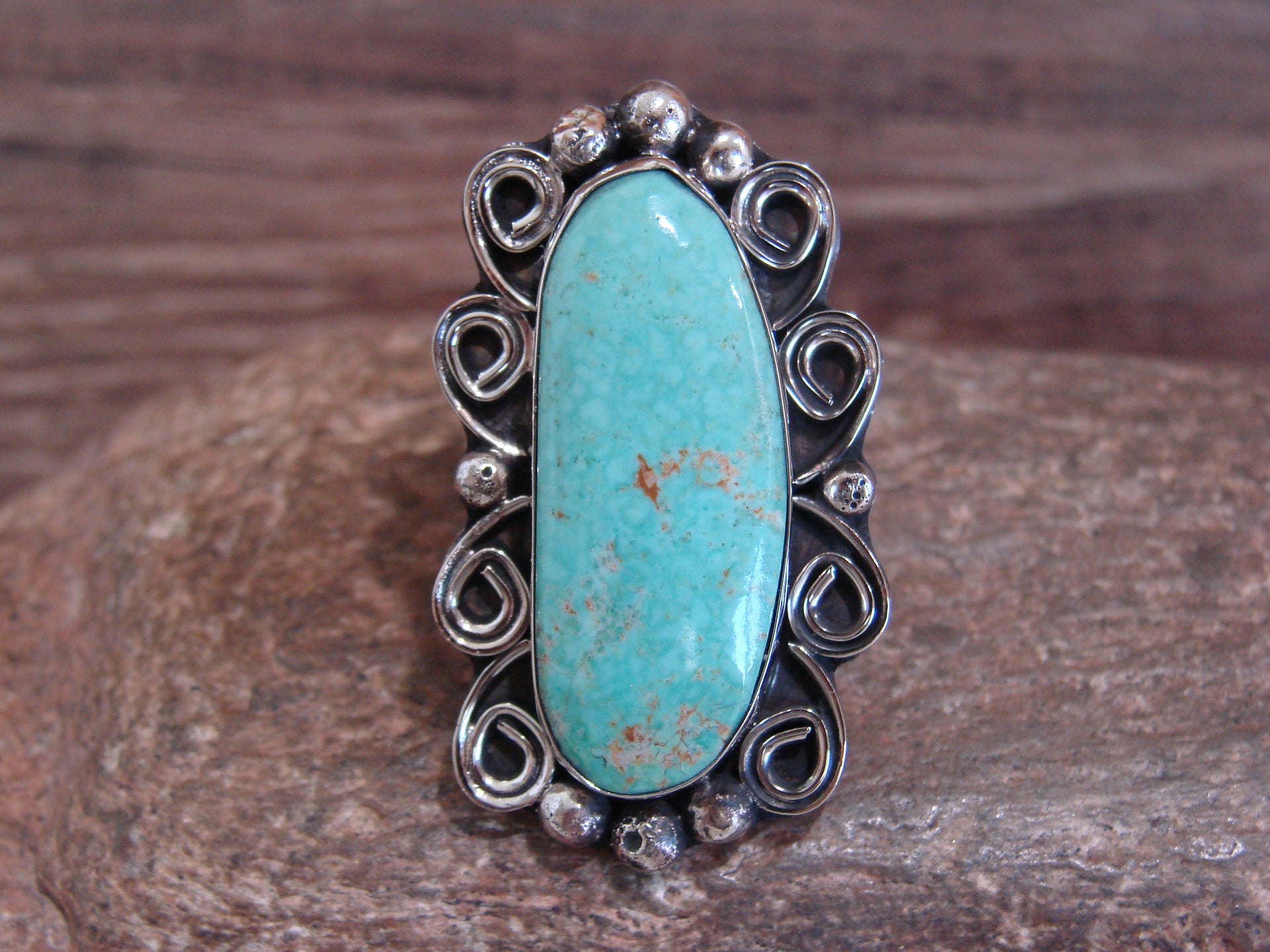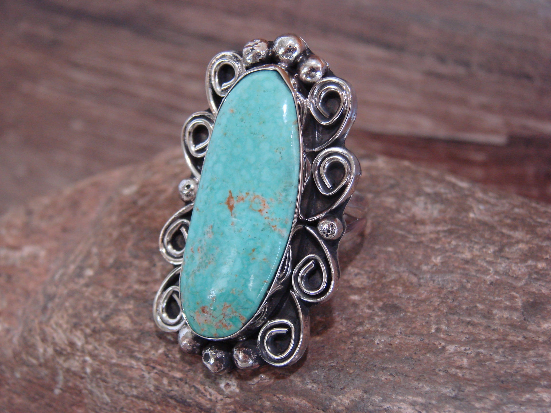 Native American Nickel Silver & Turquoise Ring by Cleveland - Size 10
