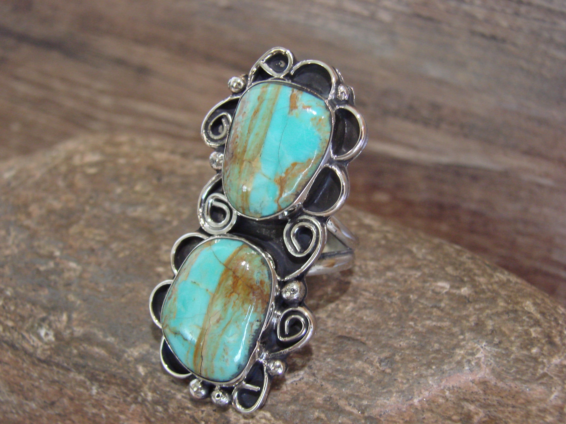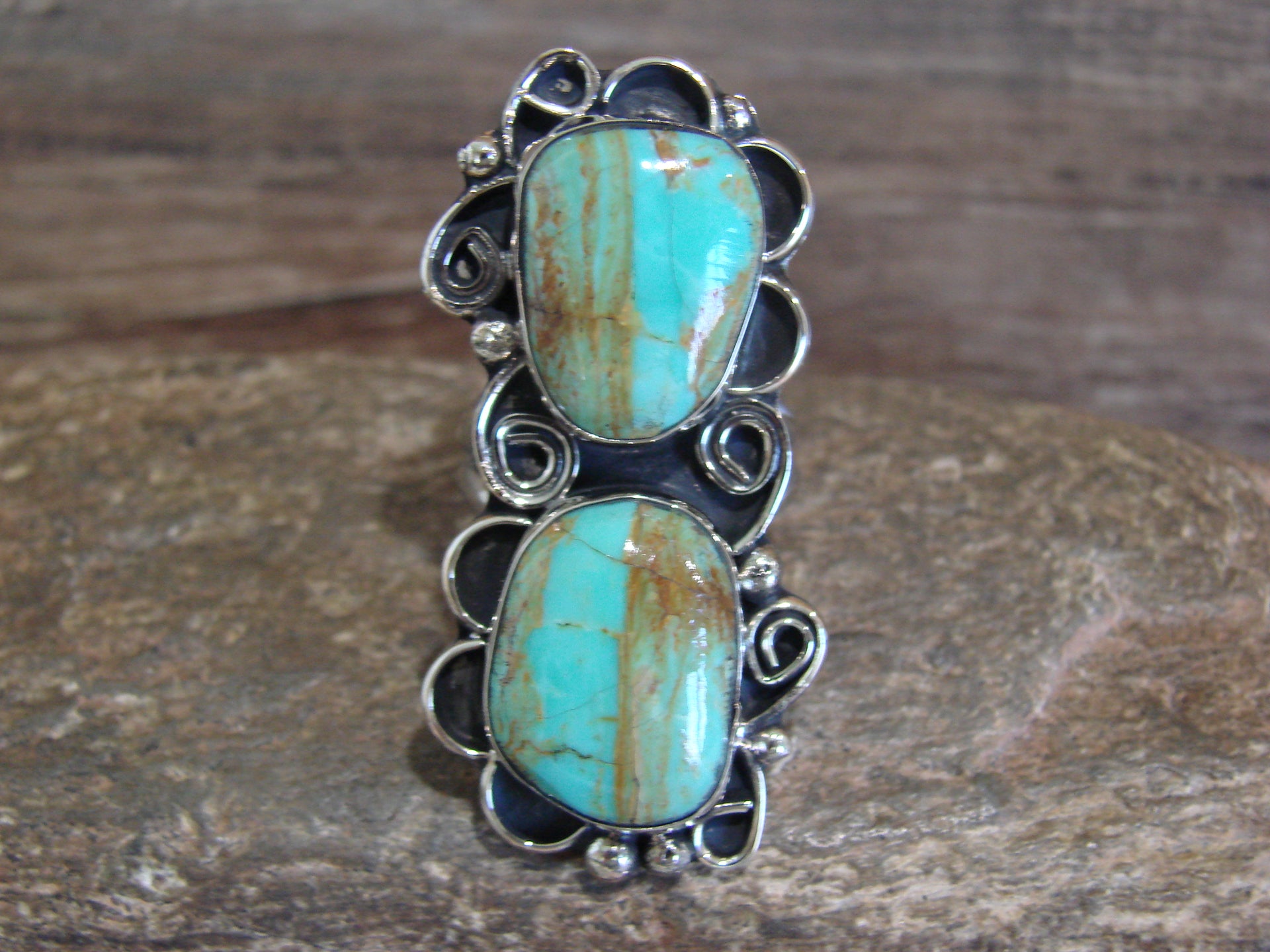 Native American Nickel Silver & Turquoise Ring by Cleveland - Size 10