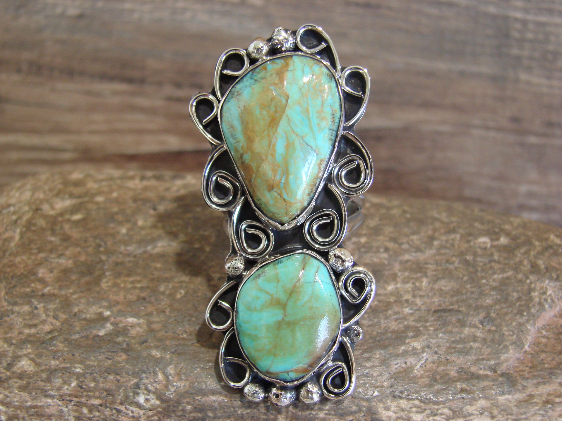 Native American Nickel Silver & Turquoise Ring by Cleveland - Size 10