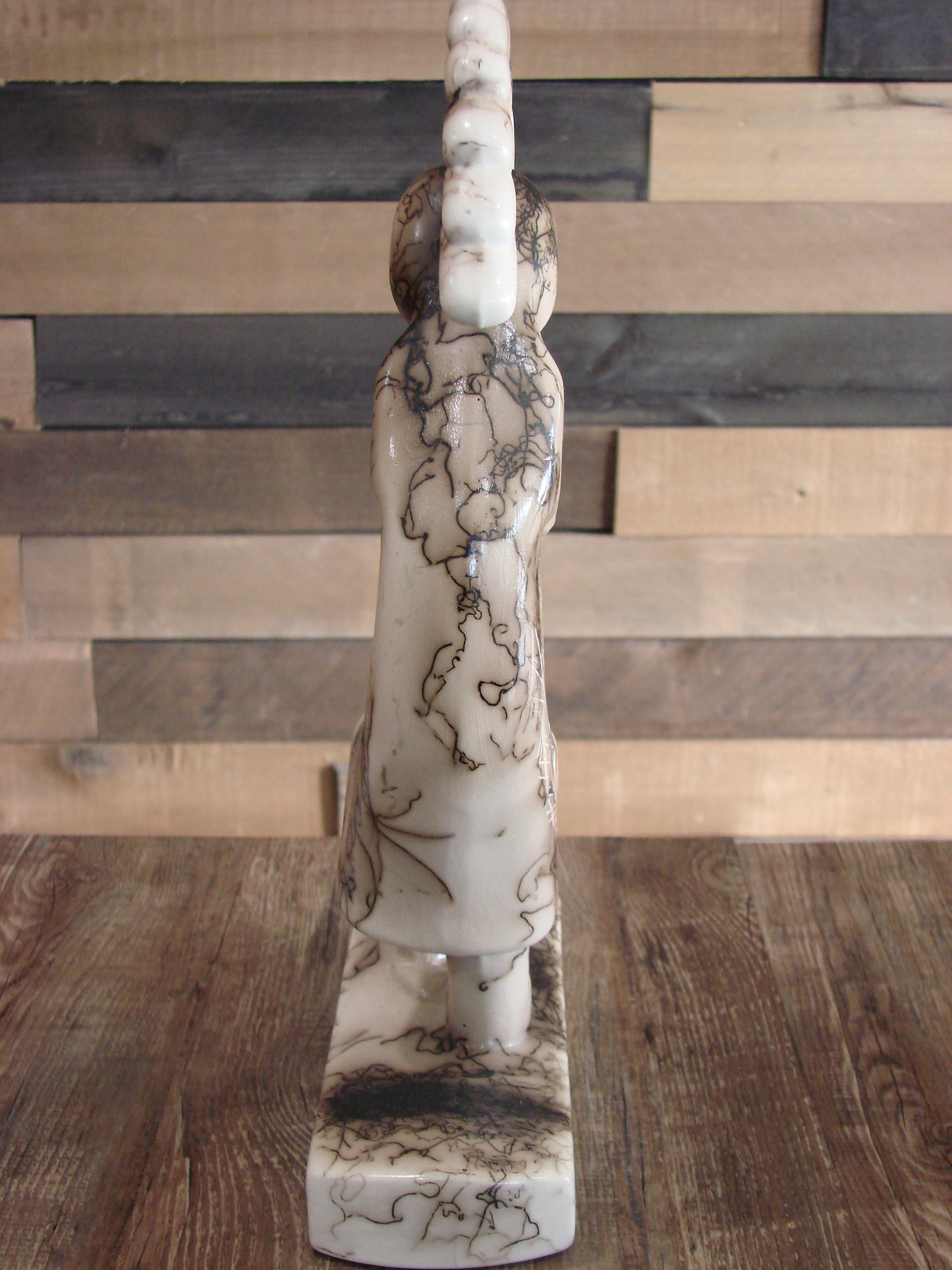 Native American Navajo Indian Horse Hair Kokopelli Sculpture from Western New Mexico. This Kokopelli sculpture features beautiful horse hair and hand etching throughout. The Horse hair is laid over this piece during firing, the result is a beautiful one of a kind look! Hand etched by Navajo artist Vail. Signed on the bottom. Free shipping included!