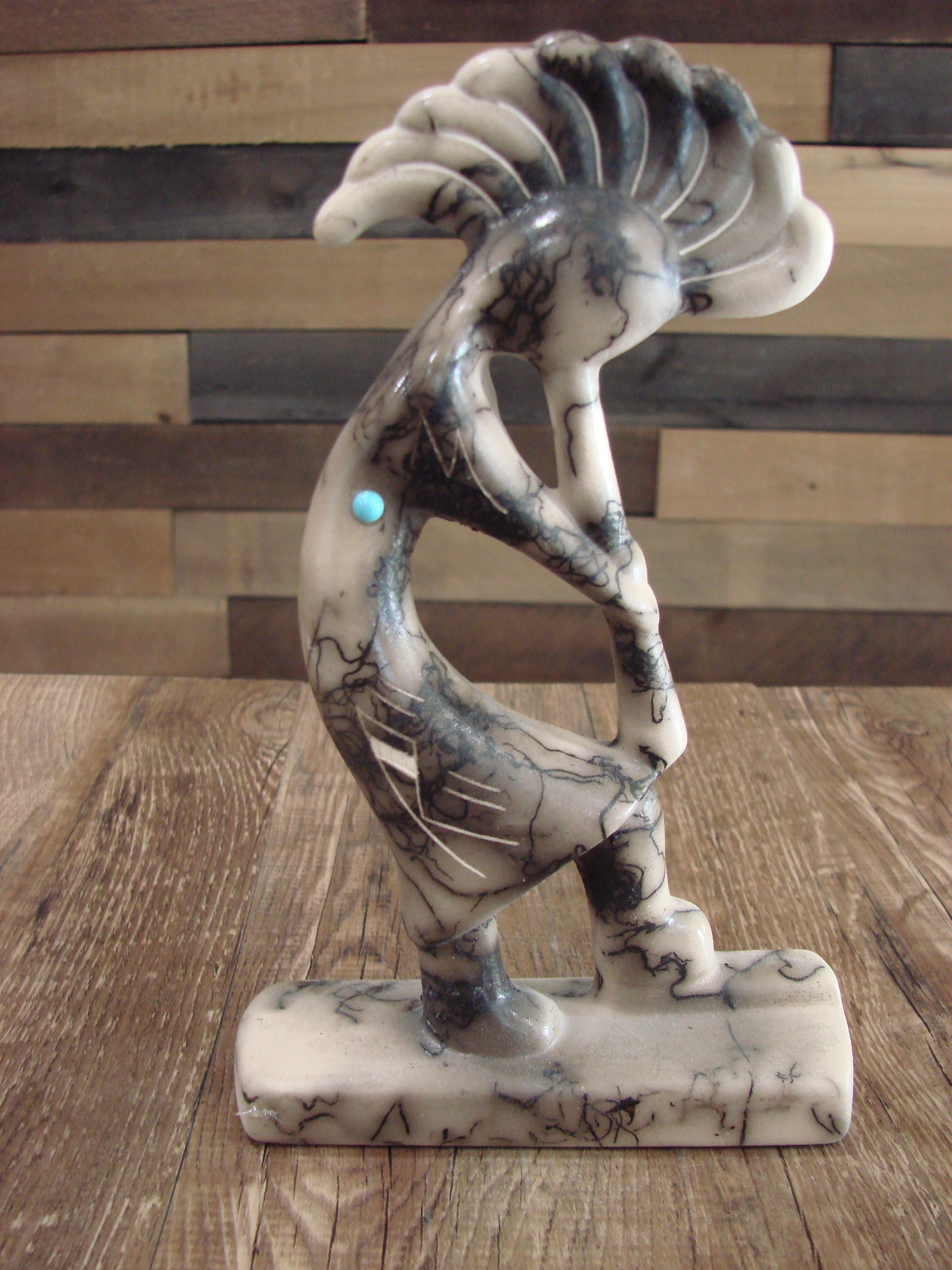 Native American Pottery Horse Hair Kokopelli Sculpture by Vail