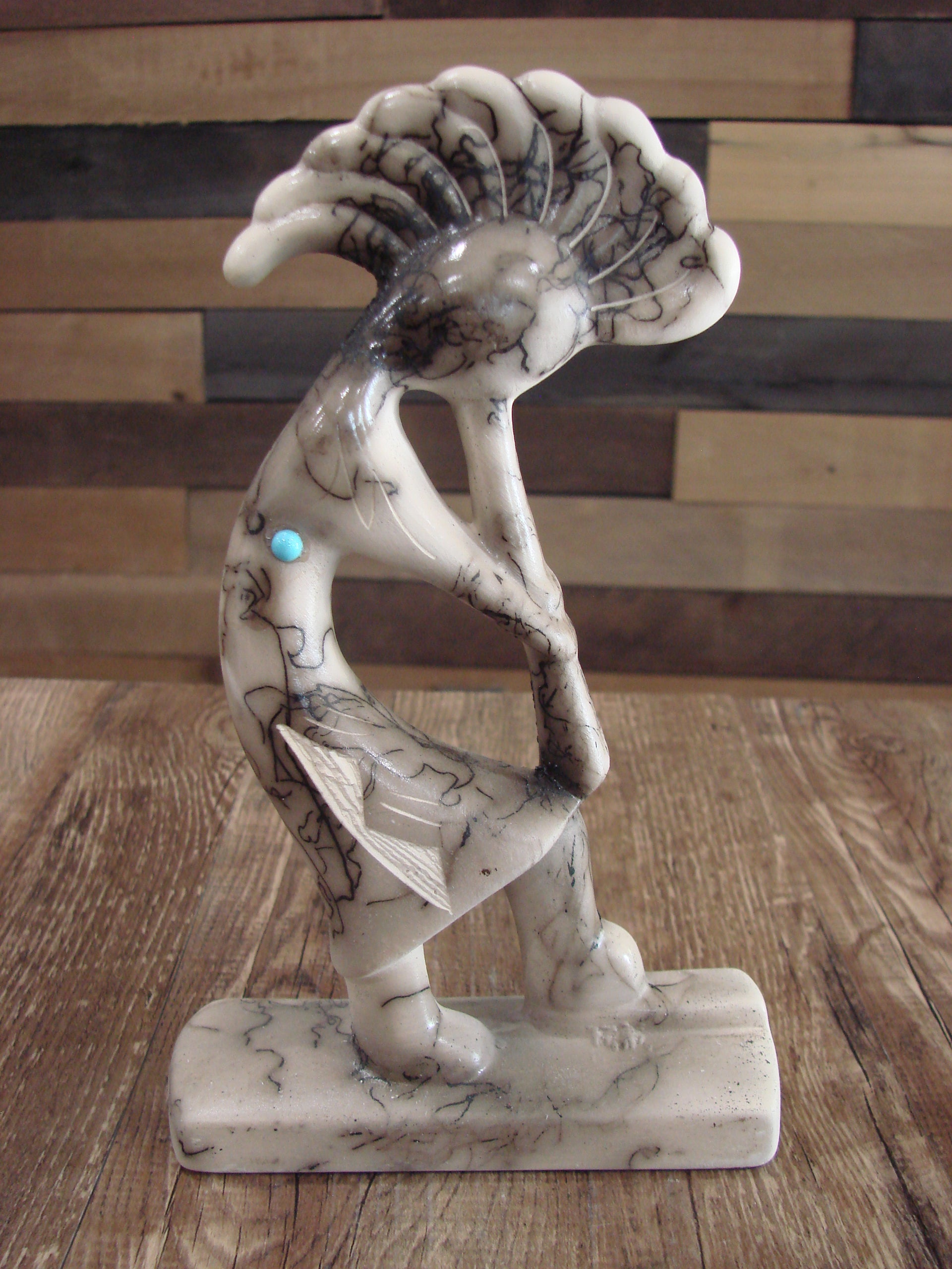 Native American Pottery Horse Hair Kokopelli Sculpture by Vail