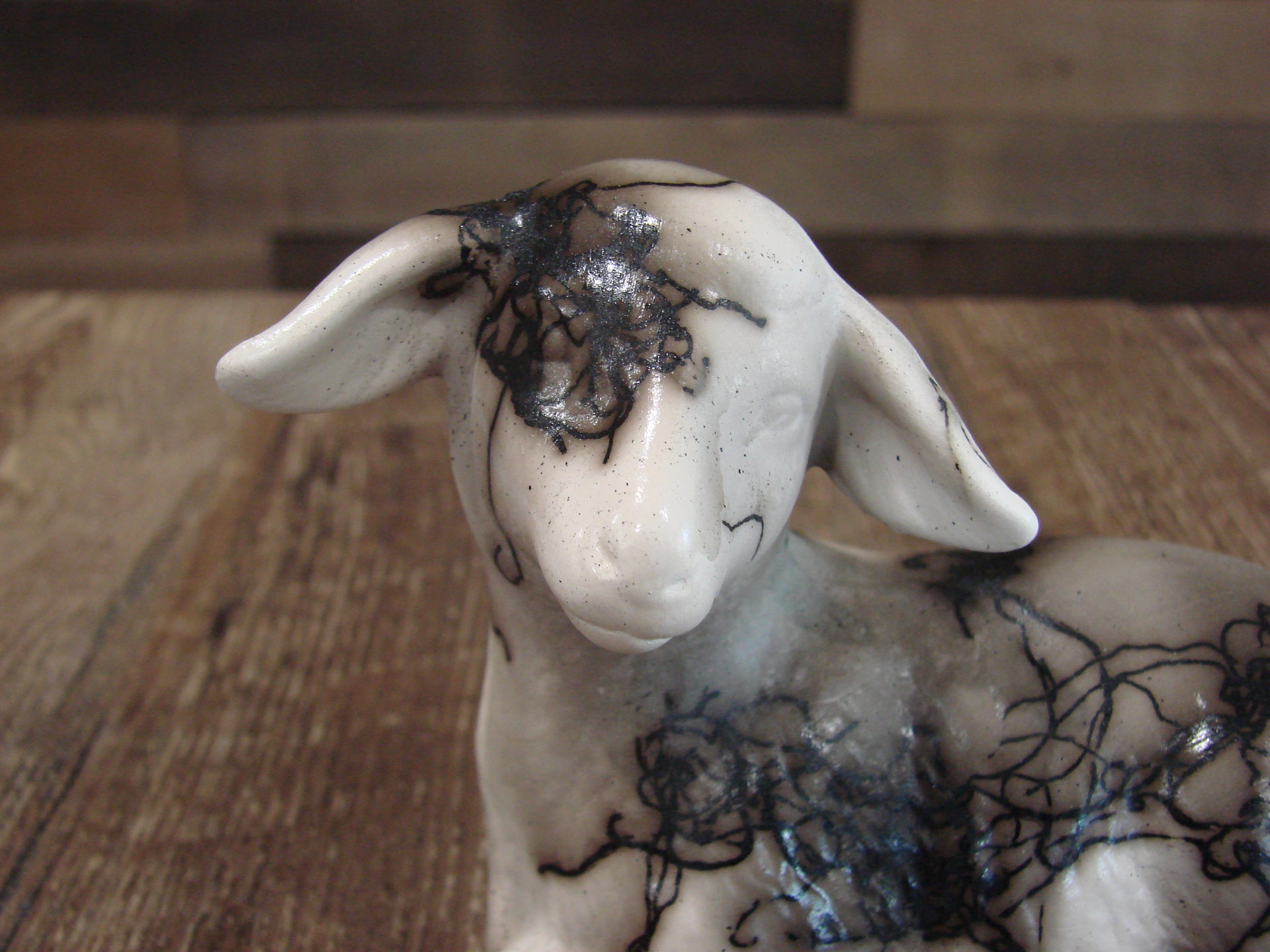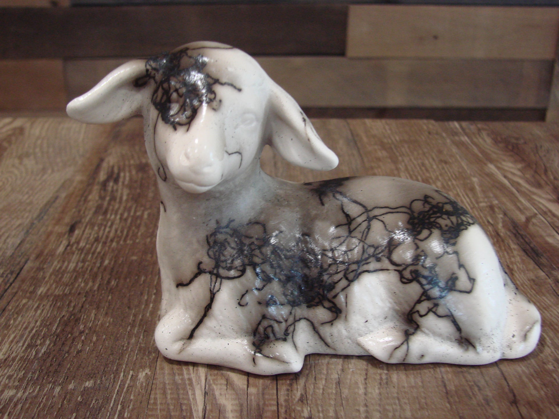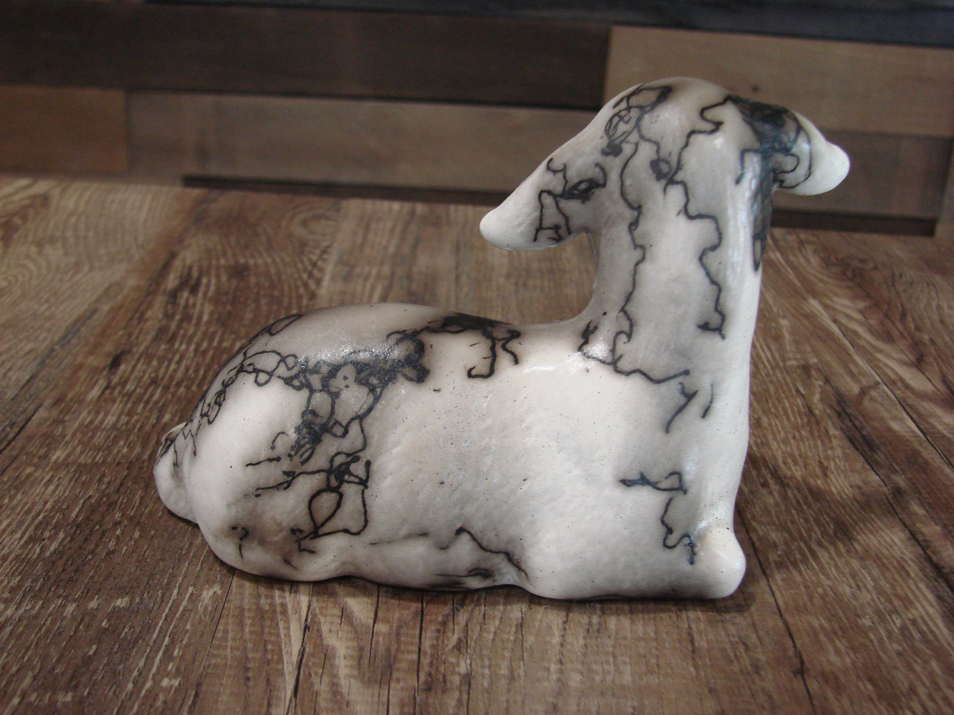 - Native American Pottery Horse Hair Lamb Sculpture by Vail