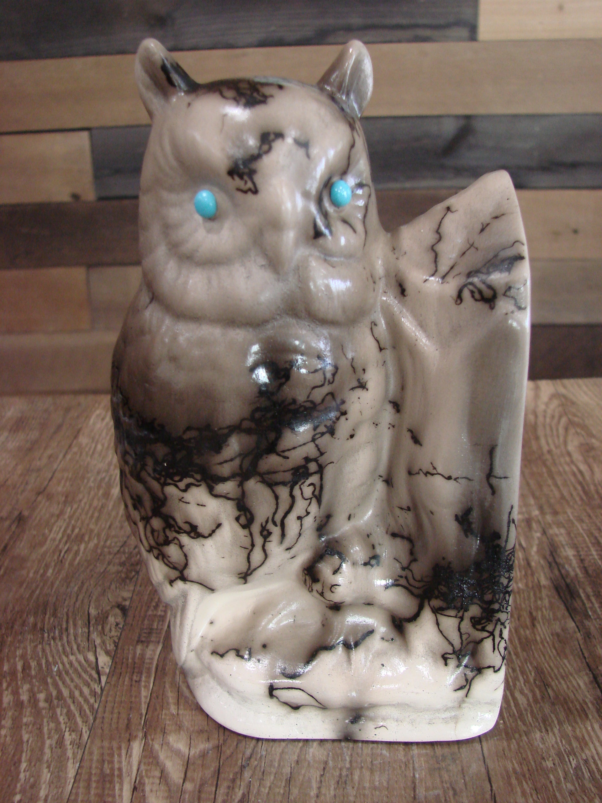 Native American Navajo Indian Horse Hair Owl Book End Pottery from Western New Mexico. This sculpture features beautiful horse hair throughout. The Horse hair is laid over this piece during firing. The result is a unique one of a kind look. Hand etched by Navajo artist Vail. Signed on the bottom. Free Shipping included!