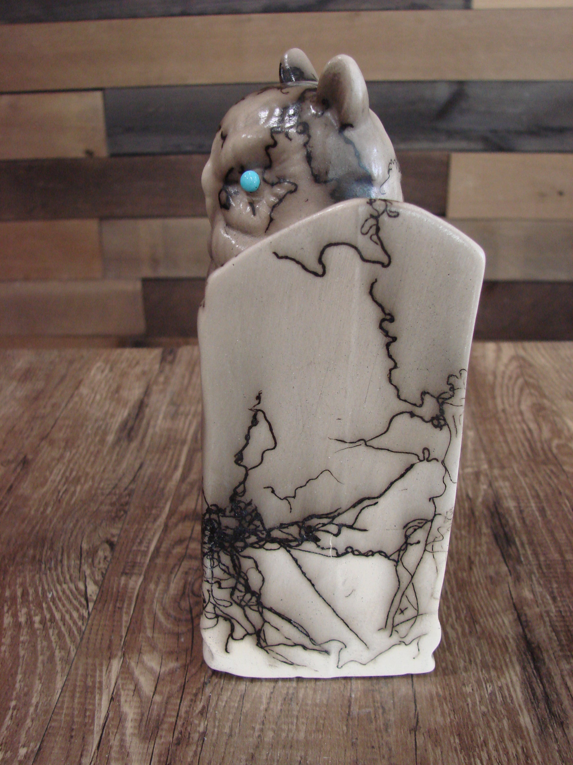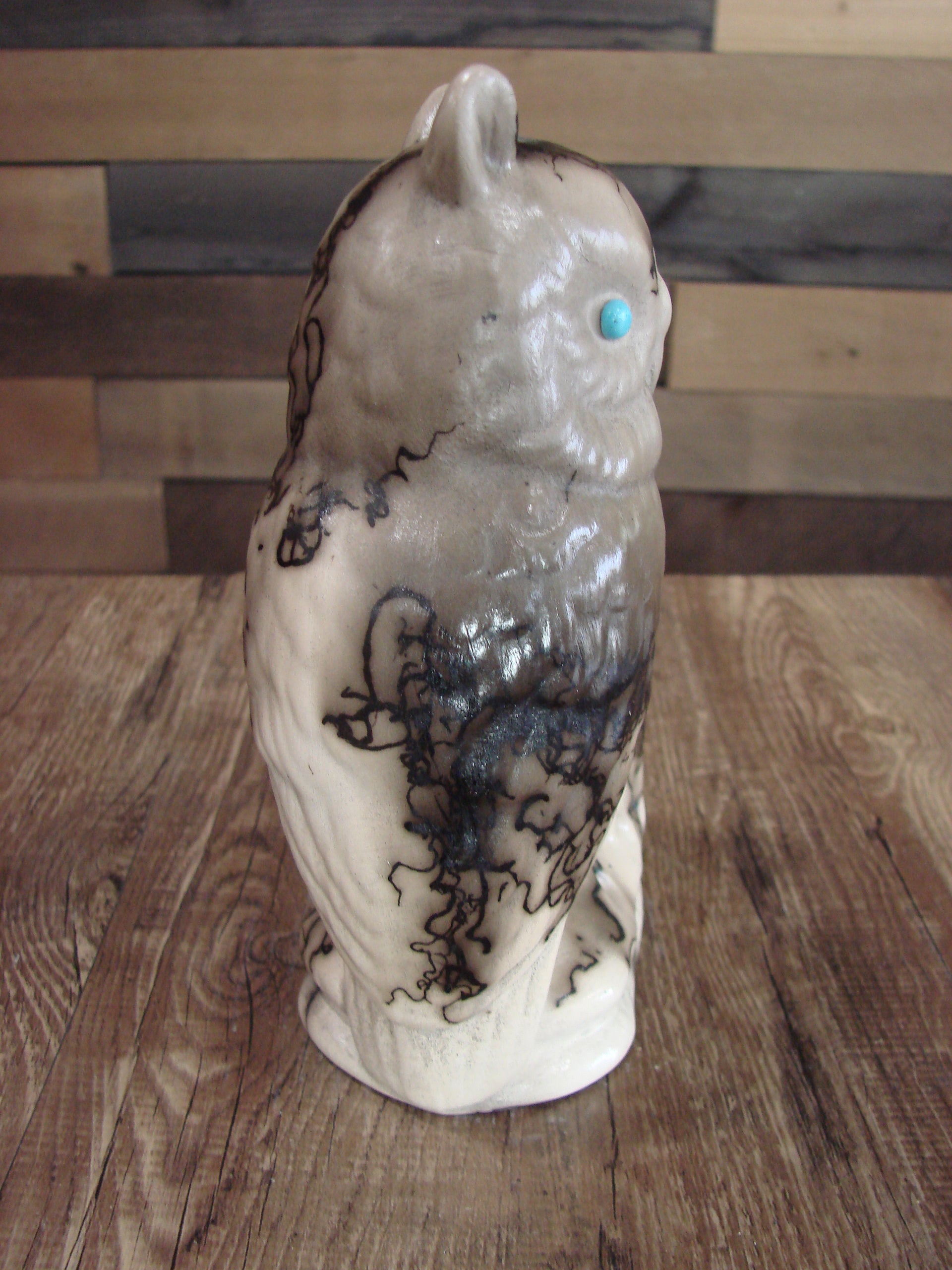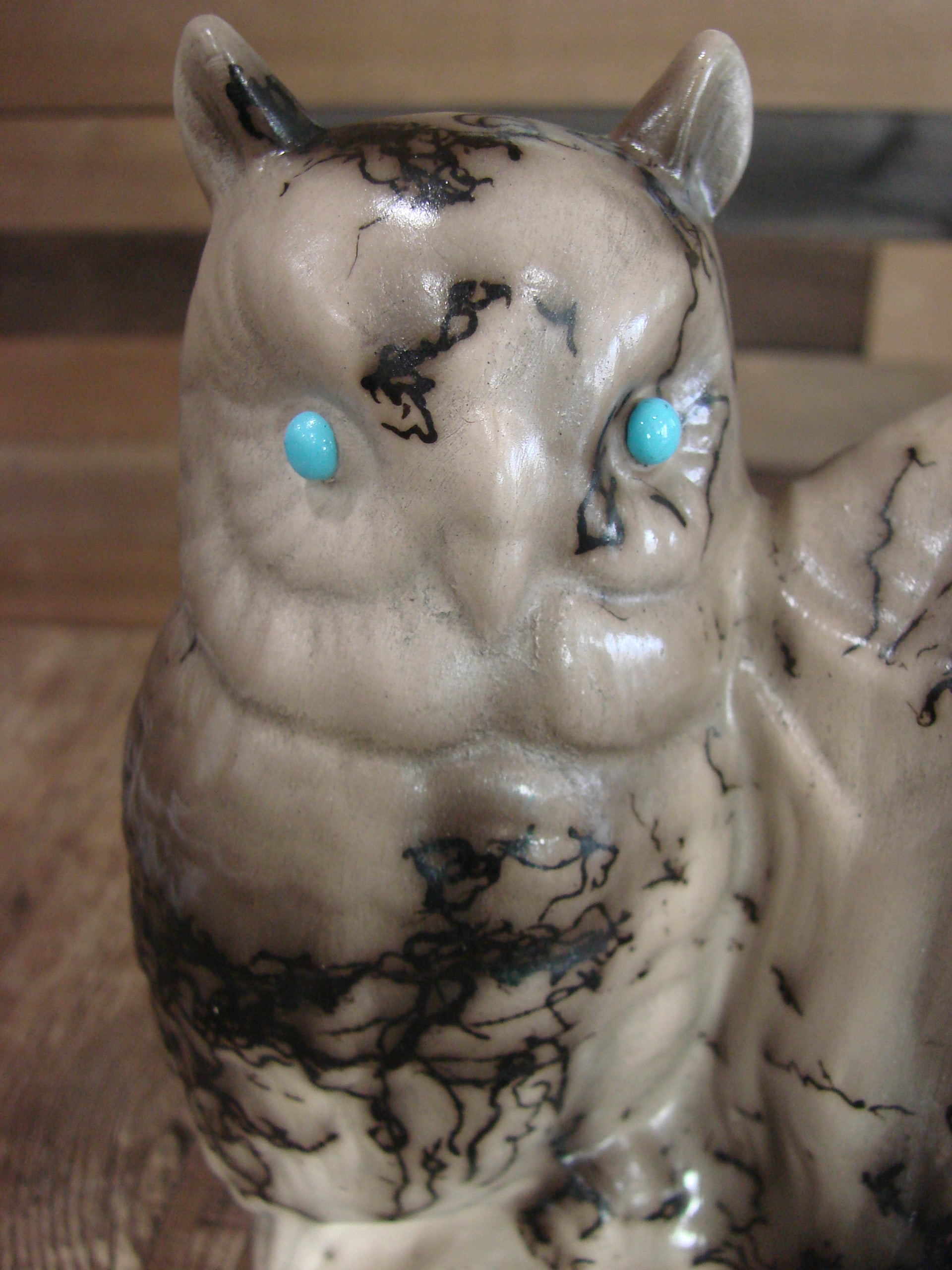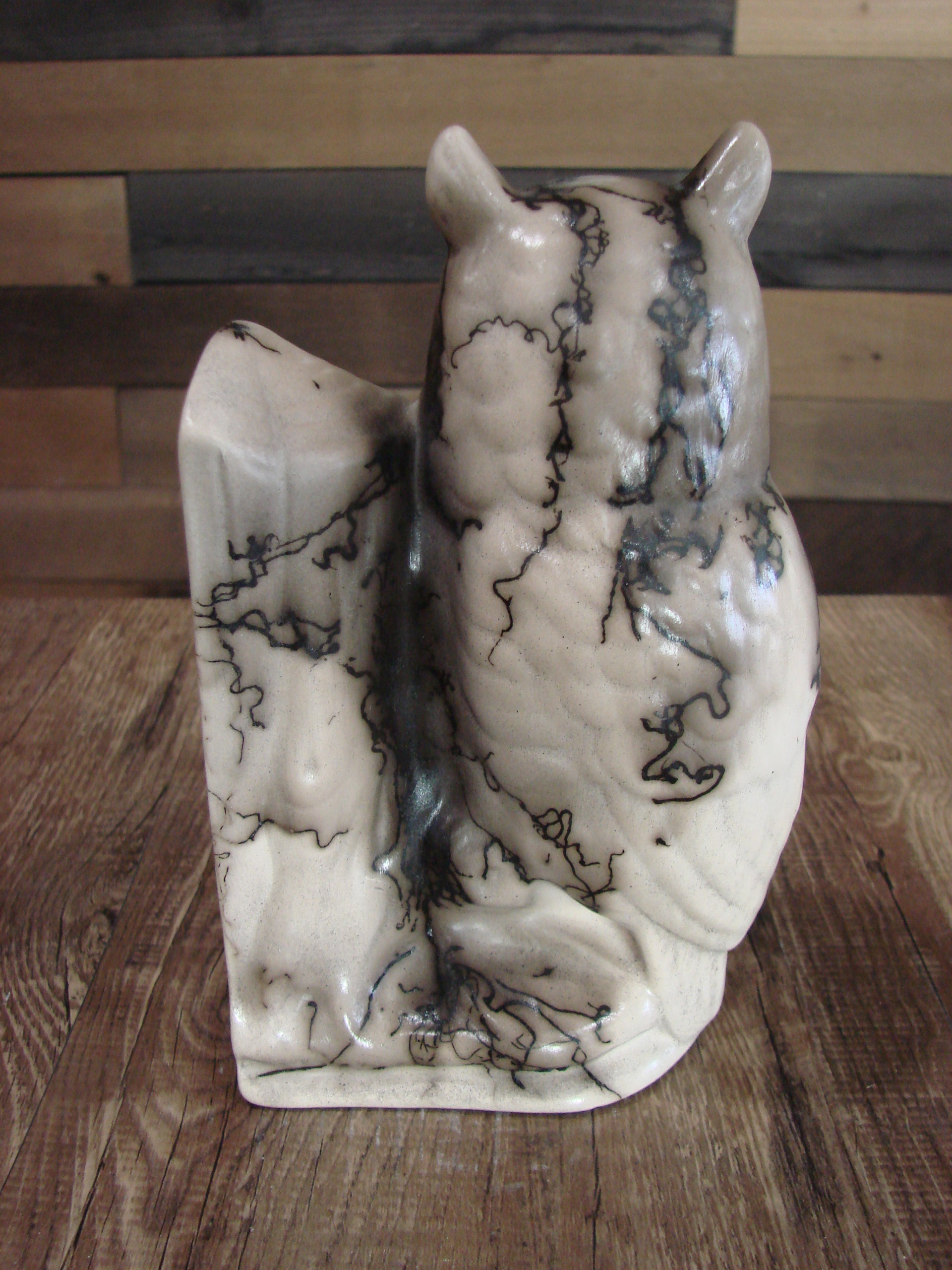- Native American Pottery Horse Hair Owl Book End by Vail