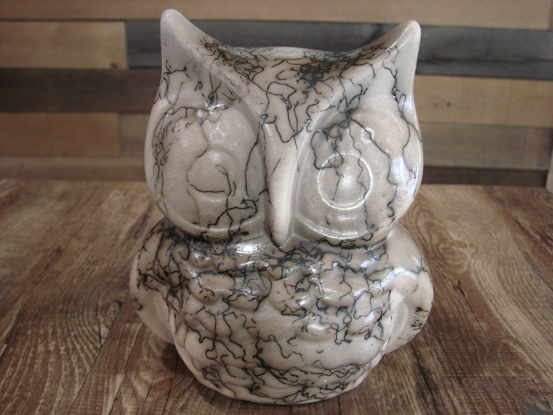 - Native American Pottery Horse Hair Owl Sculpture by Vail