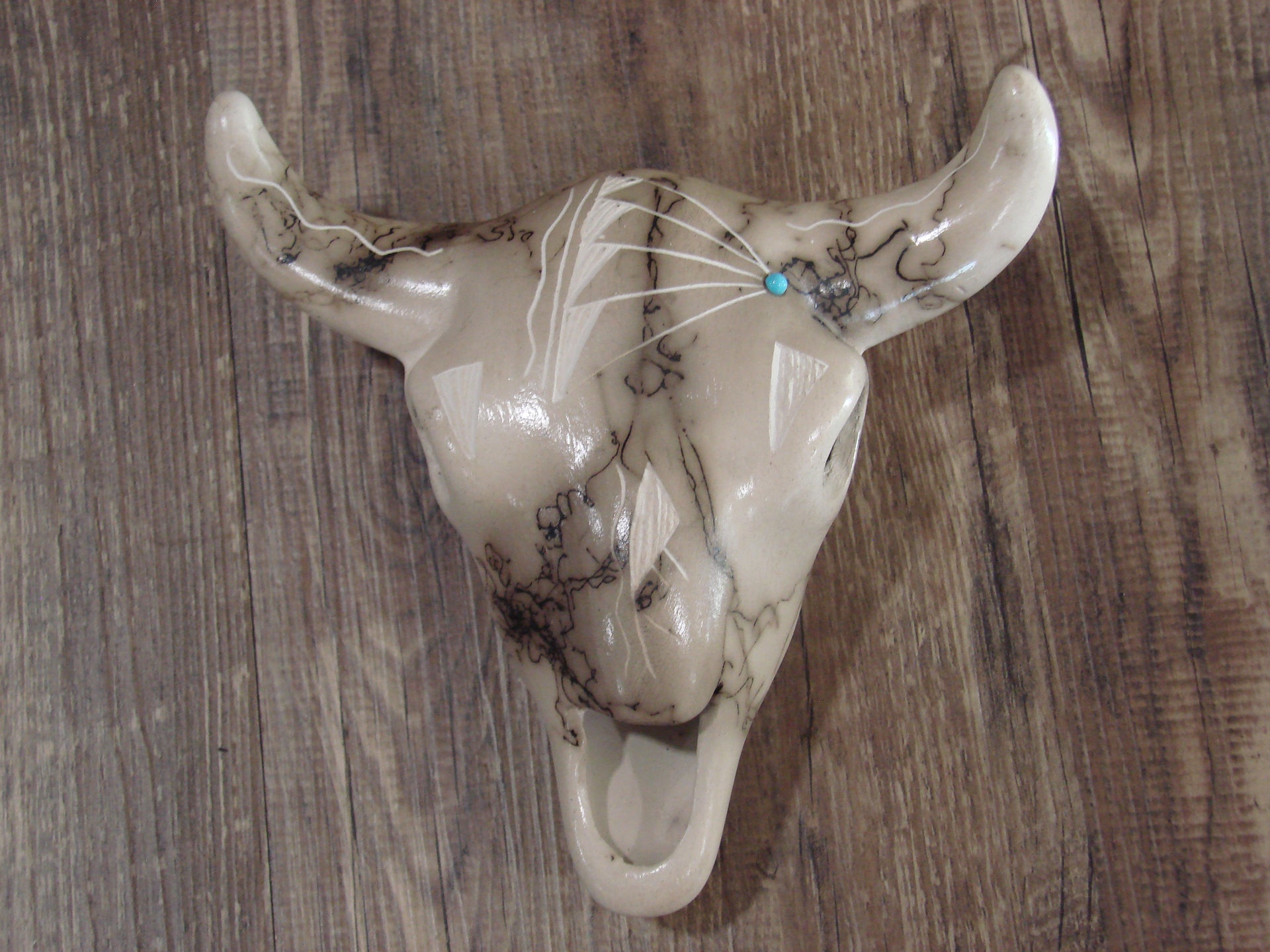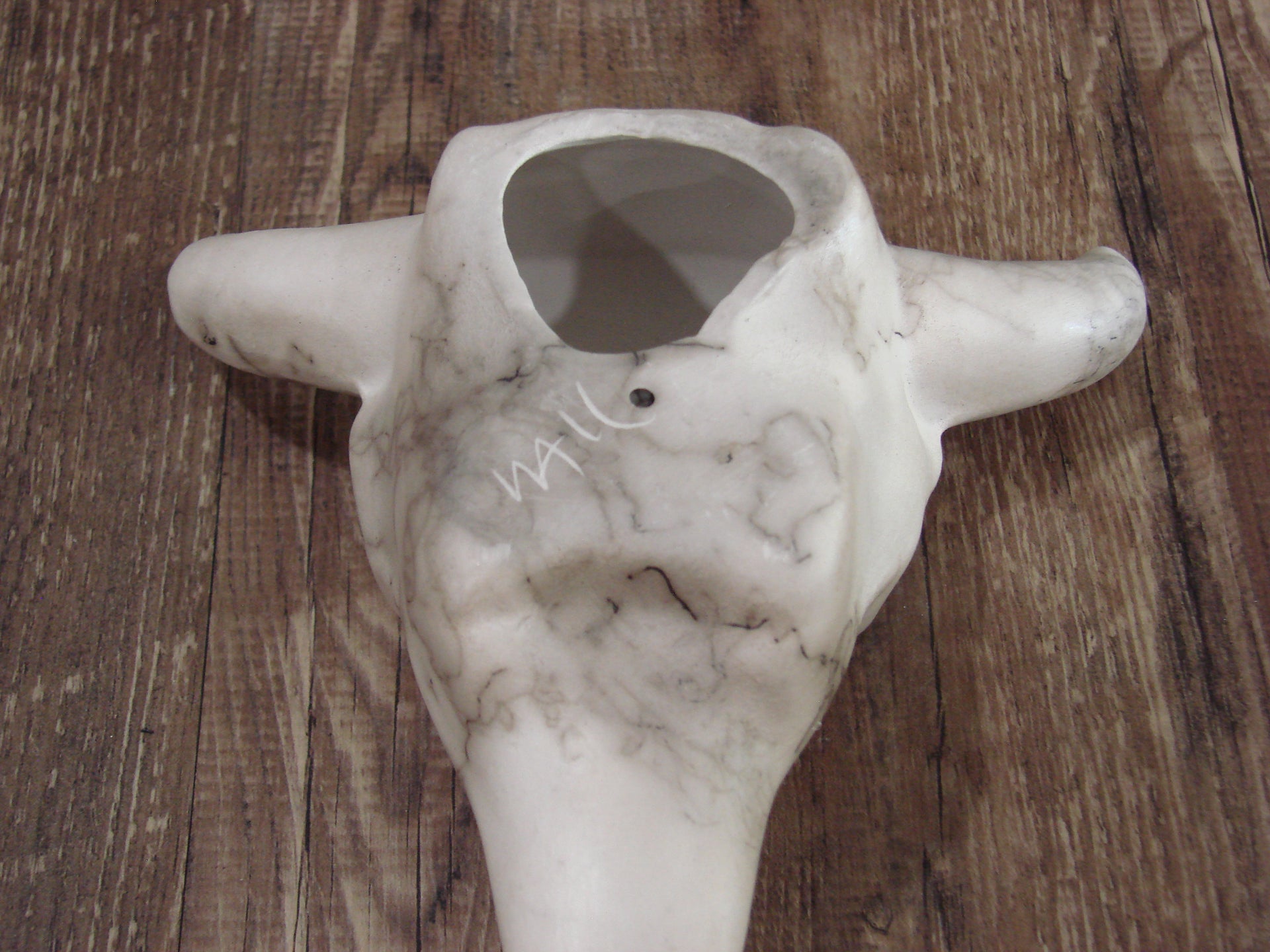 Genuine Native American Navajo Indian Horse Hair Skull Sculpture from Western New Mexico. This Kokopelli sculpture features beautiful horse hair and hand etching throughout. The Horse hair is laid over this piece during firing, the result is a beautiful one of a kind look! Hand etched by Navajo artist Vail. Signed on the bottom. Free shipping included!