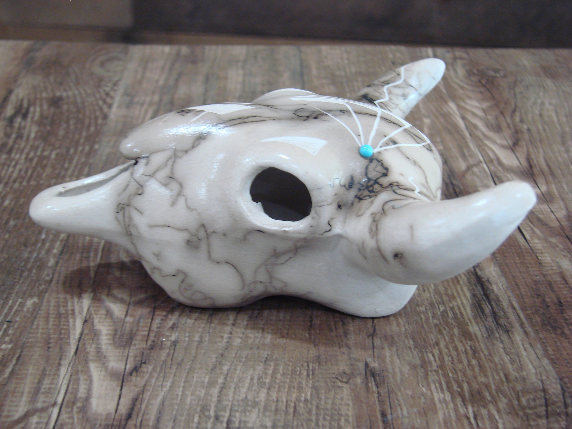 - Native American Pottery Horse Hair Skull Sculpture by Vail