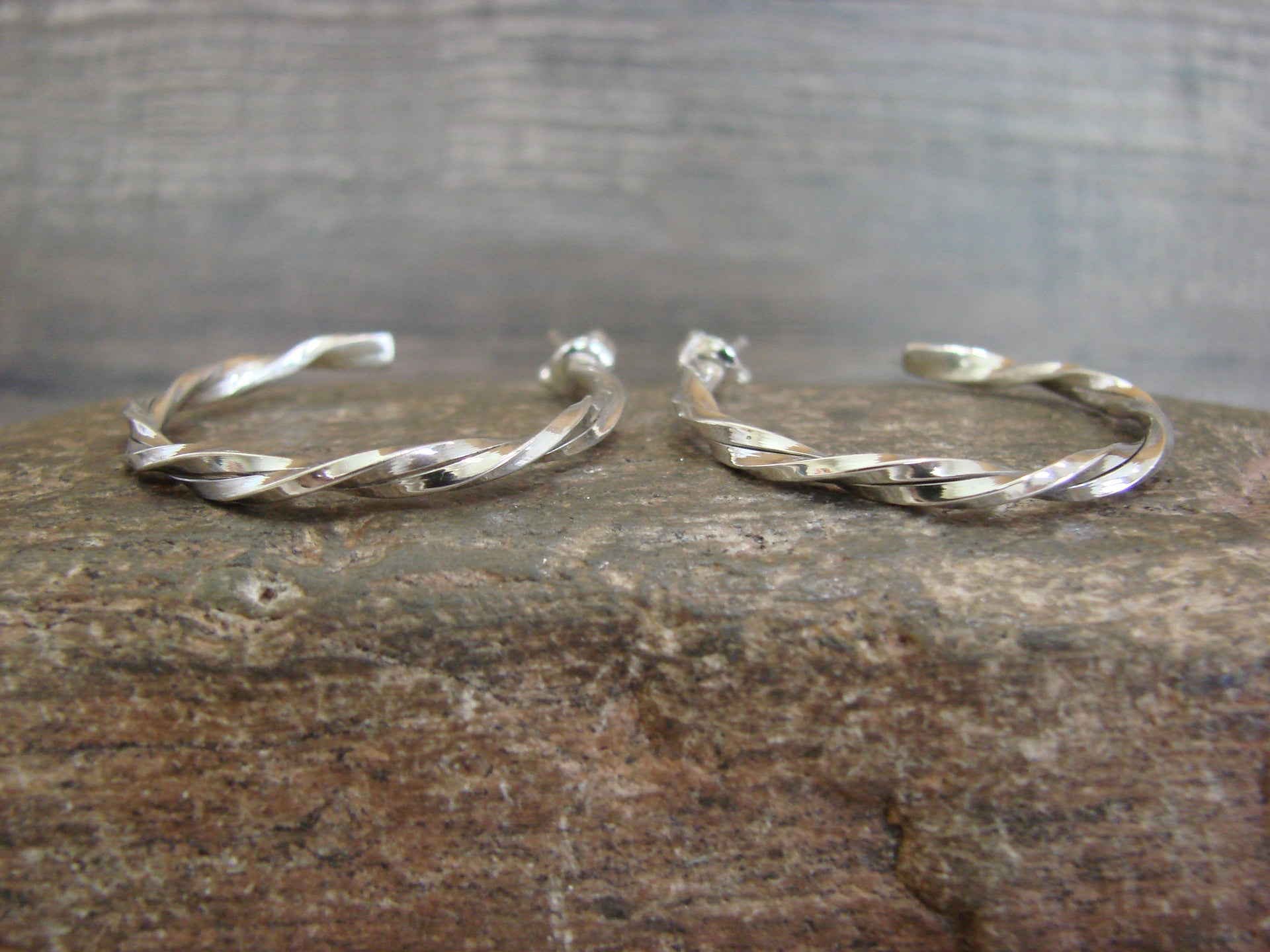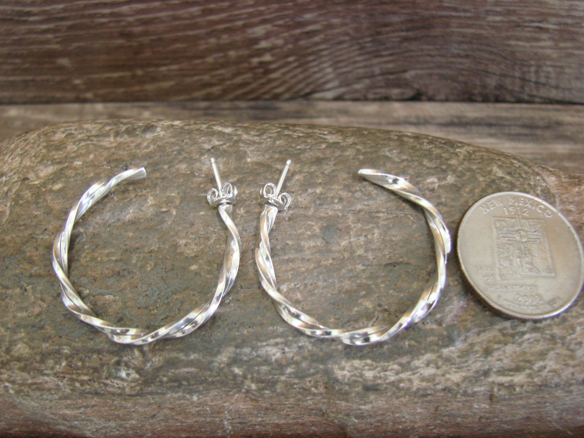 - Native American Sterling Silver 1 1/4" Twisted Hoop Earrings by Tahe