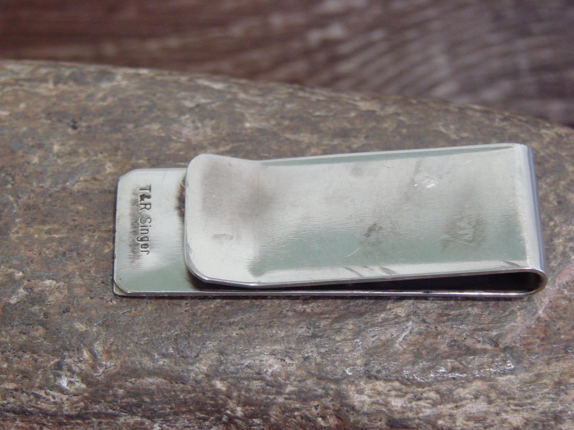 Genuine Native American Navajo Indian Sterling Silver and Gold Fill Money Clip from Western New Mexico. This money clip features hand stamping and detail throughout the front. The focal is accented with 12kt Gold Fill. The clip is made with Spring Stainless Steel for added durability and spring. Navajo Indian handmade by Rosita Singer wife of the late Tommy Singer. Signed "T&R Singer" on the back. Free shipping and gift box included!