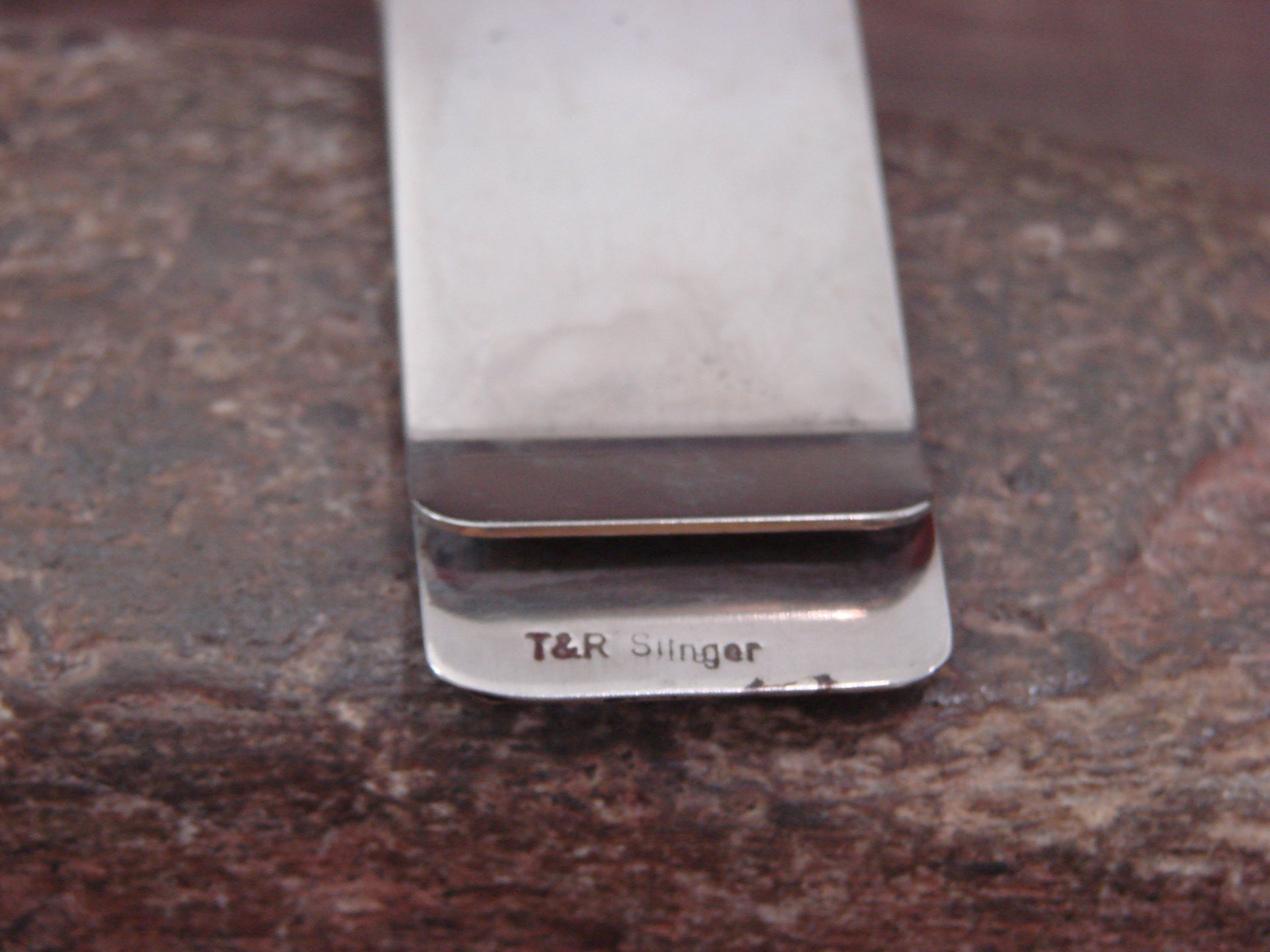 Native American Navajo Indian Sterling Silver and Gold Fill Money Clip from Western New Mexico. This money clip features hand stamping and detail throughout the front. The focal is accented with 12kt Gold Fill. The clip is made with Spring Stainless Steel for added durability and spring. Navajo Indian handmade by Rosita Singer wife of the late Tommy Singer. Signed "T&R Singer" on the back. Free shipping and gift box included!