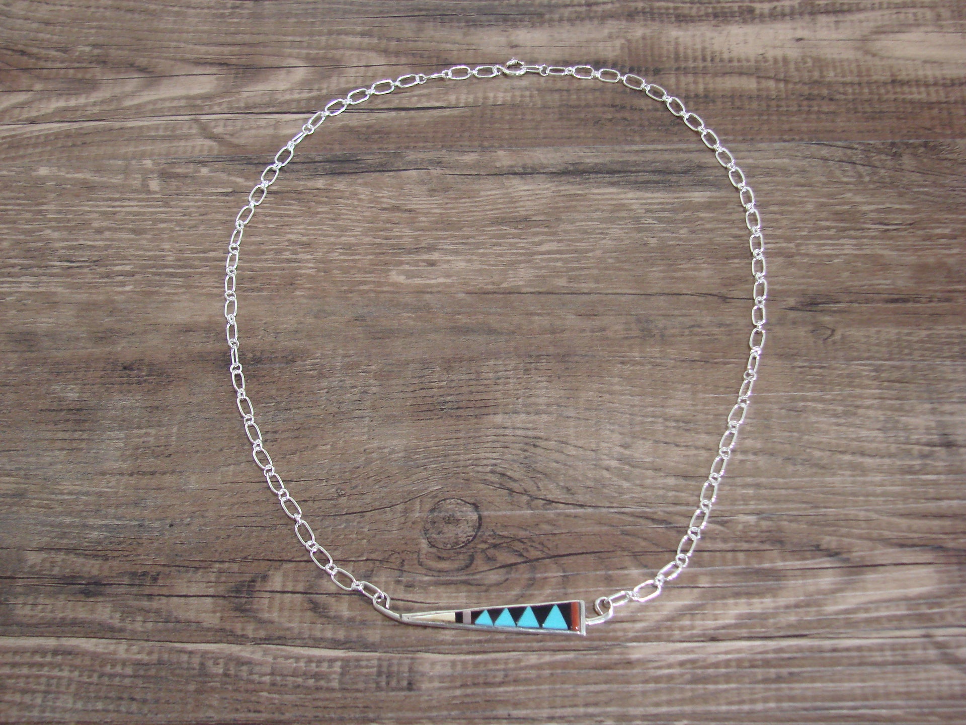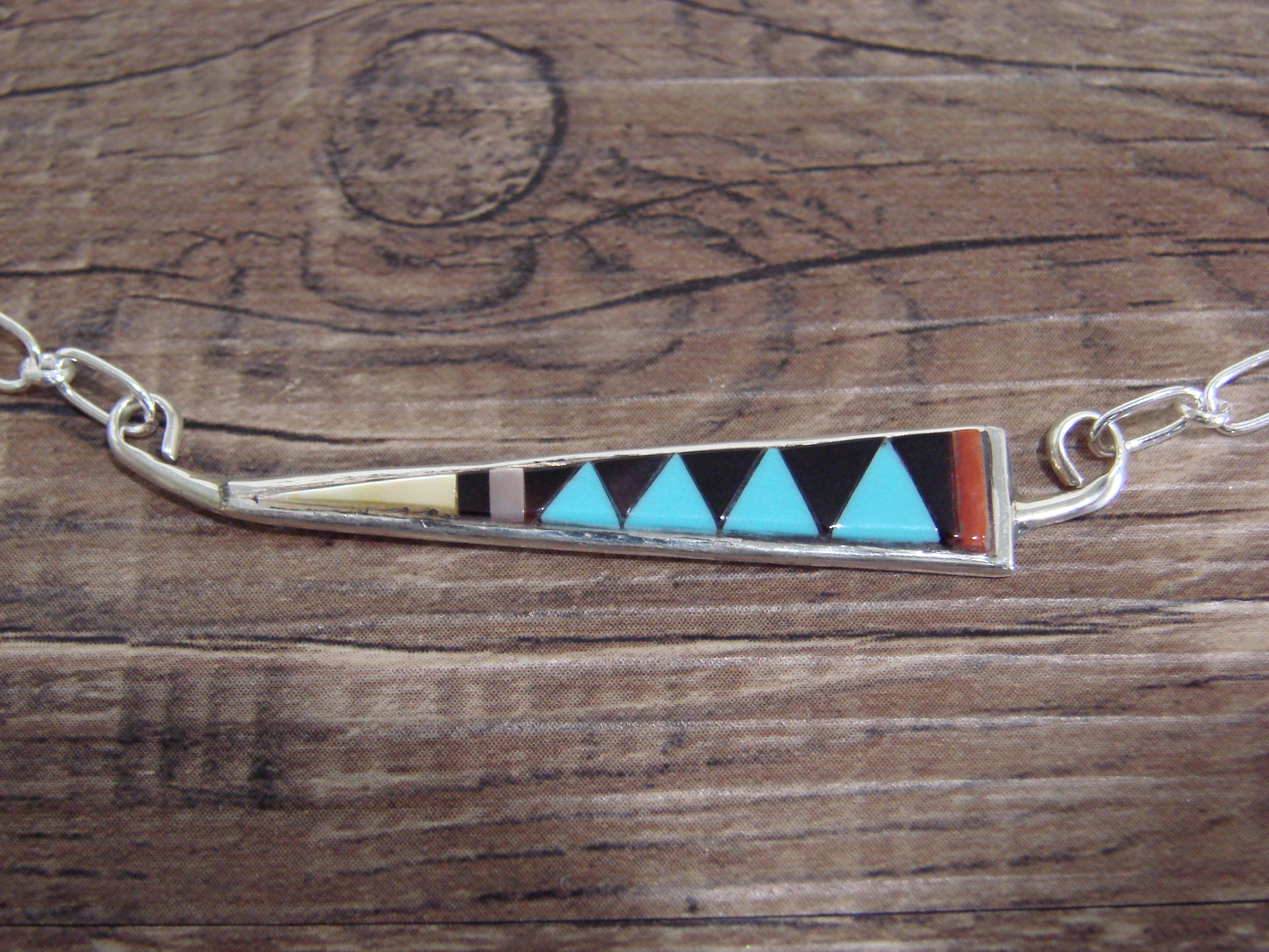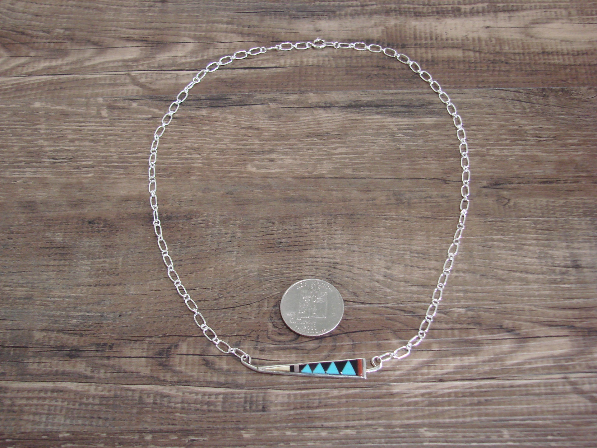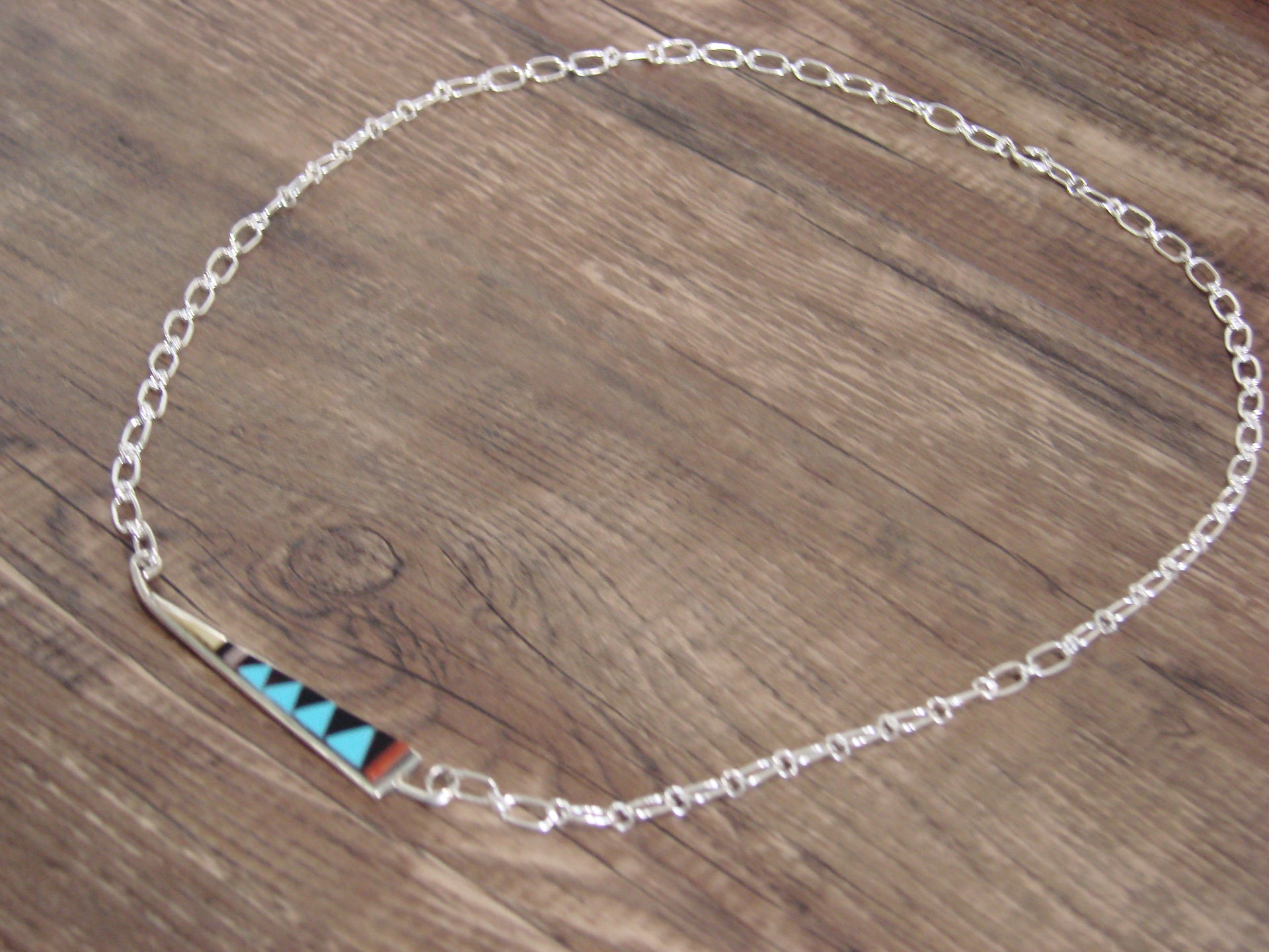 Native American Sterling Silver 18" Multi Stone Inlay Link Necklace - Qualo