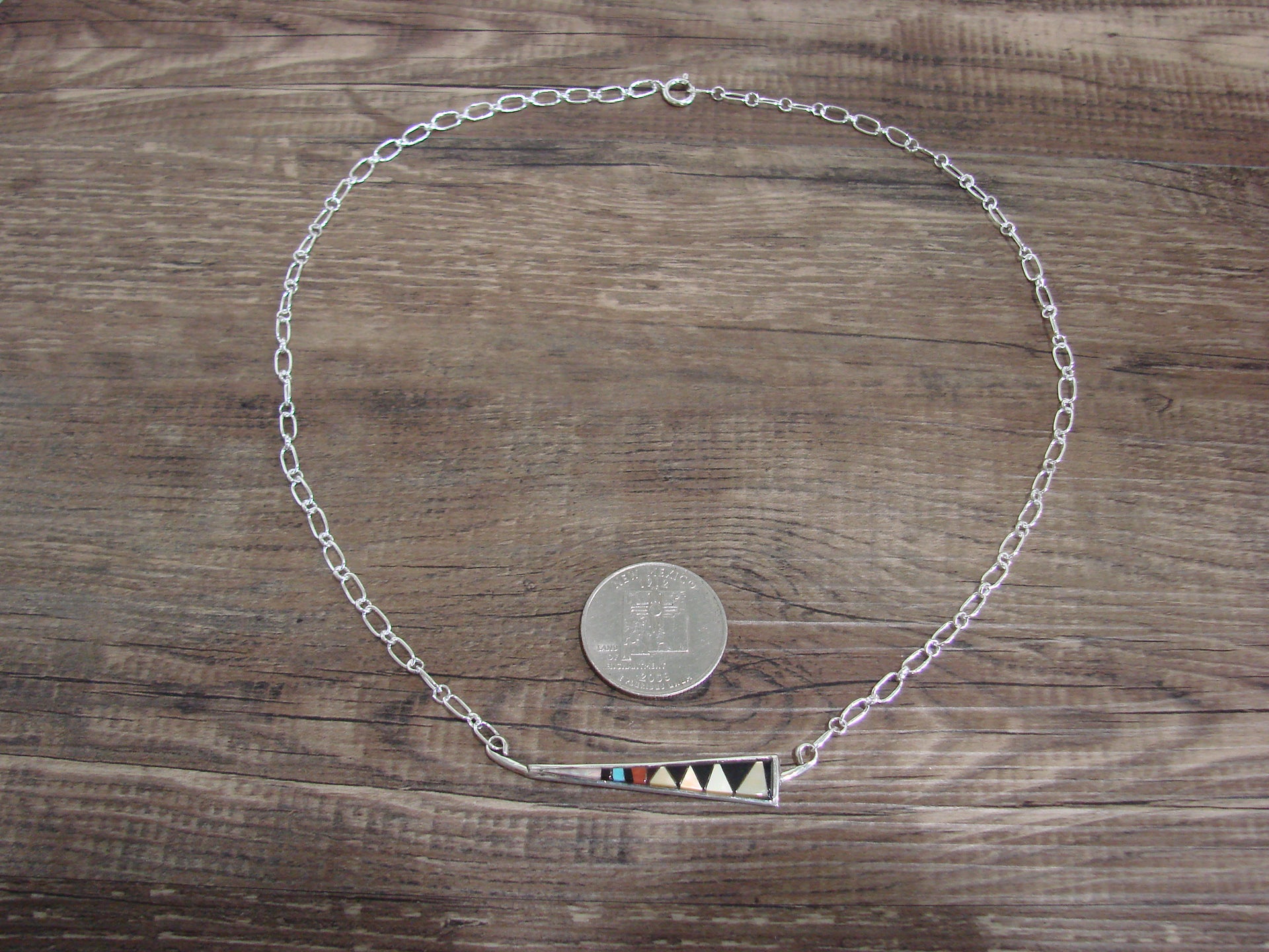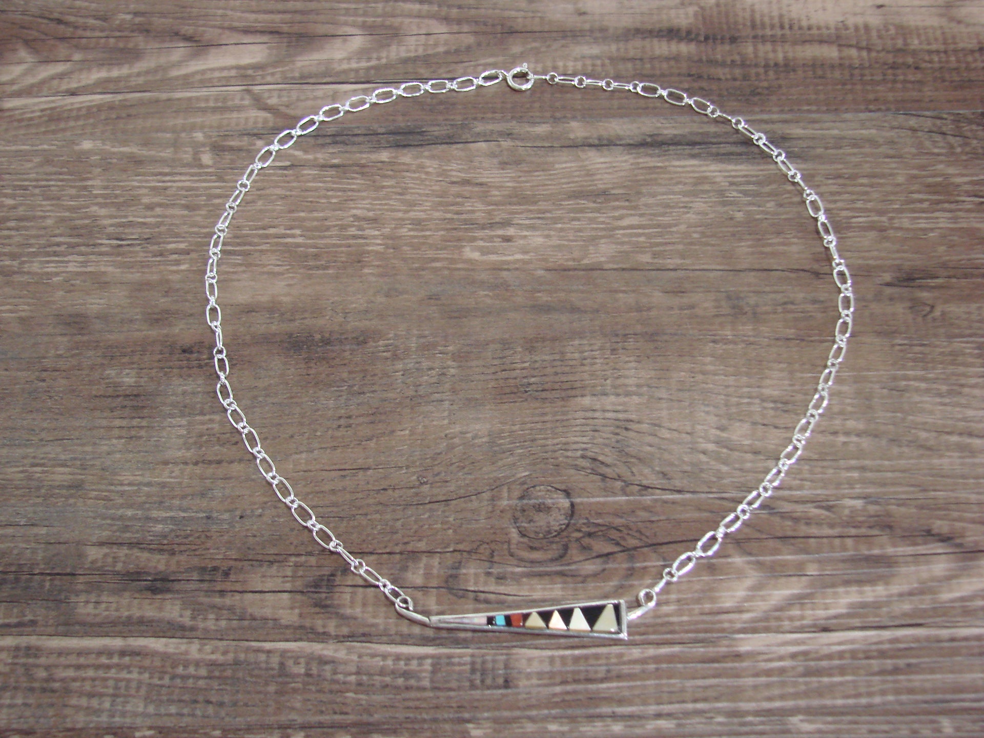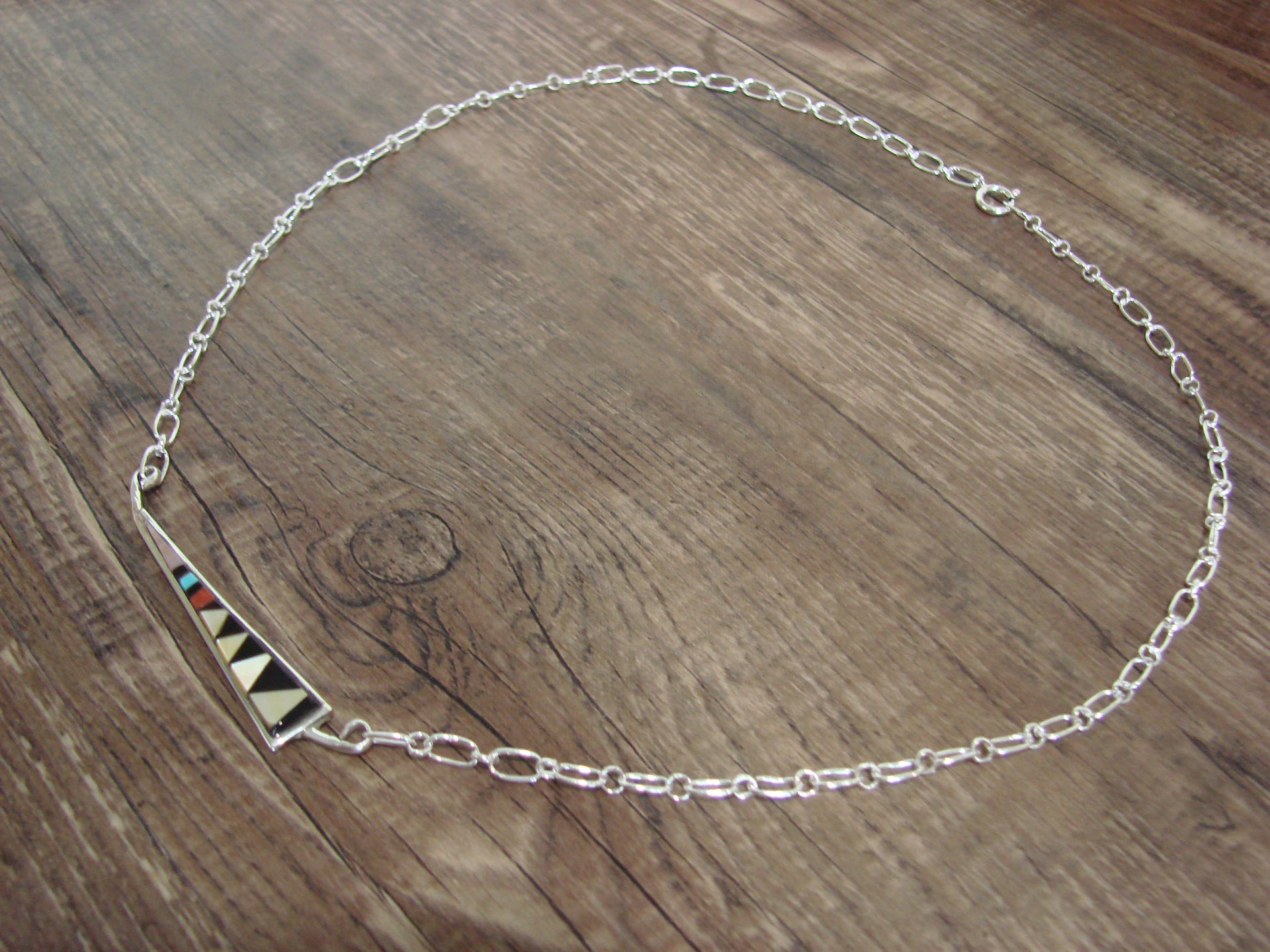 - Native American Sterling Silver 18" Multi Stone Inlay Link Necklace - Qualo