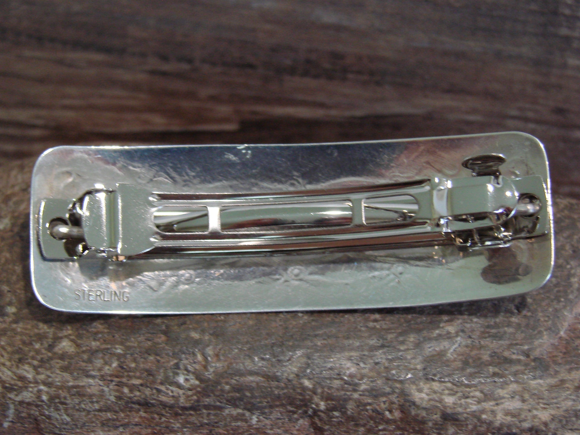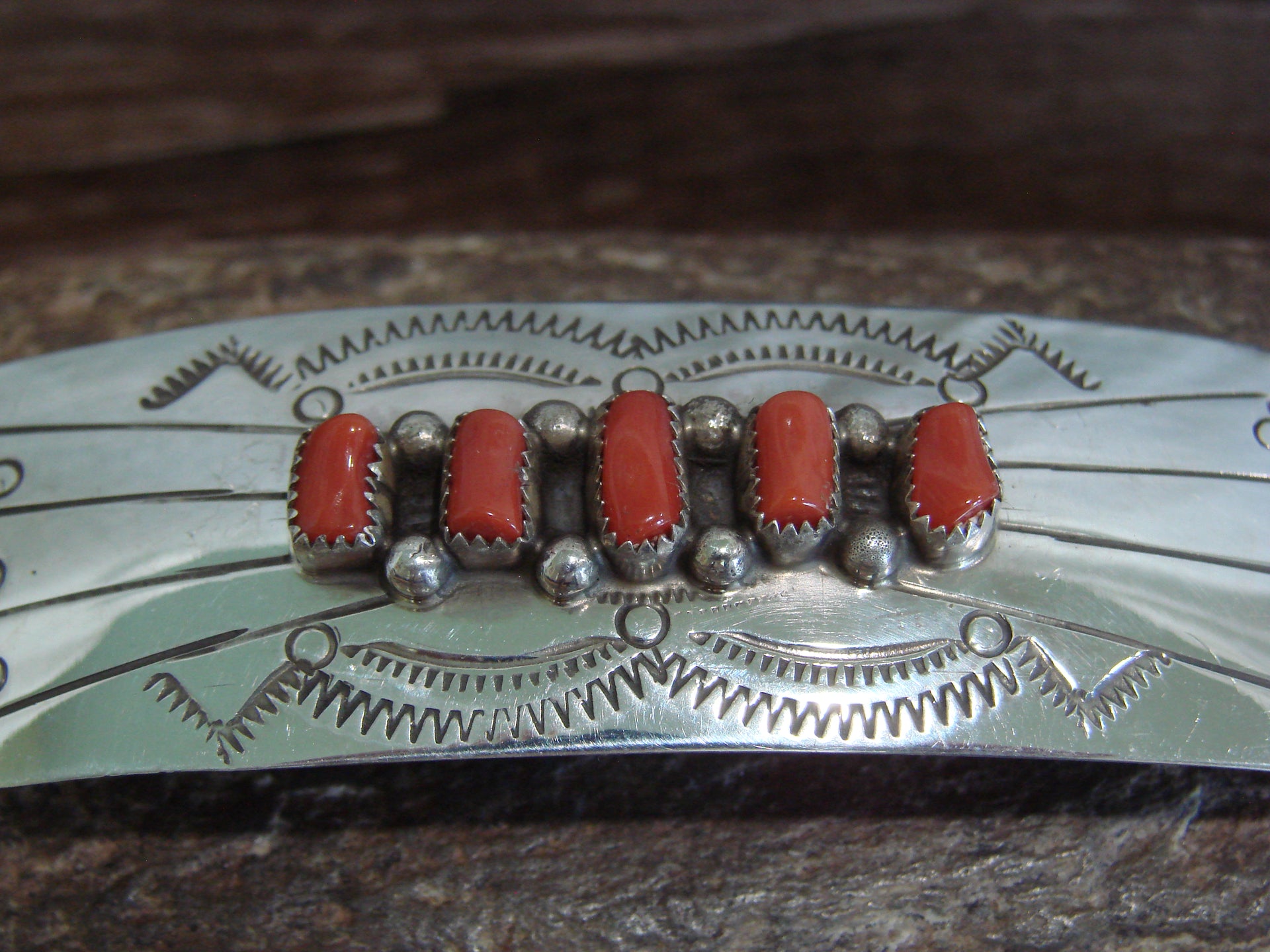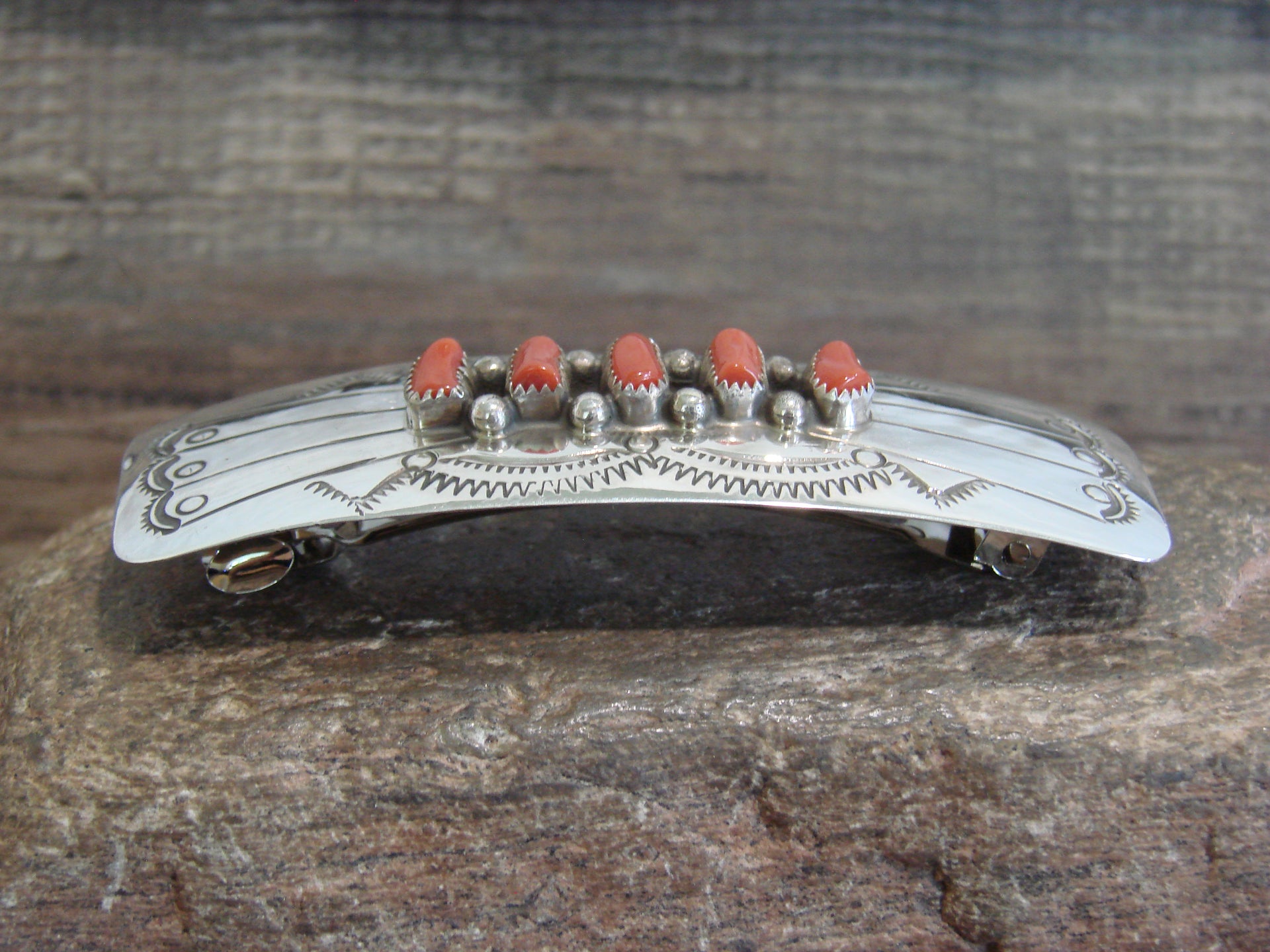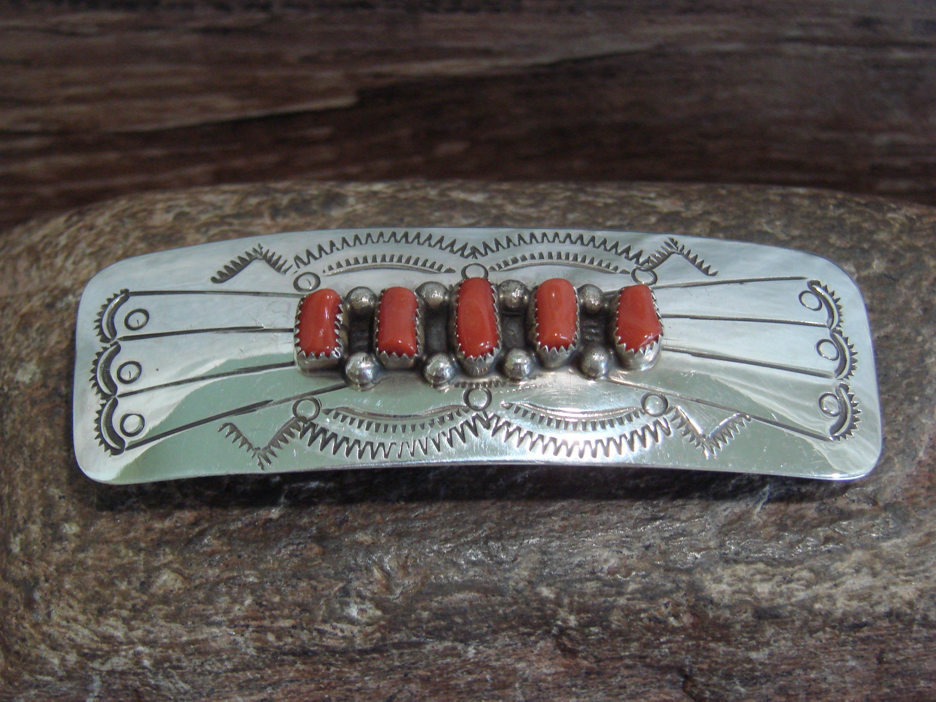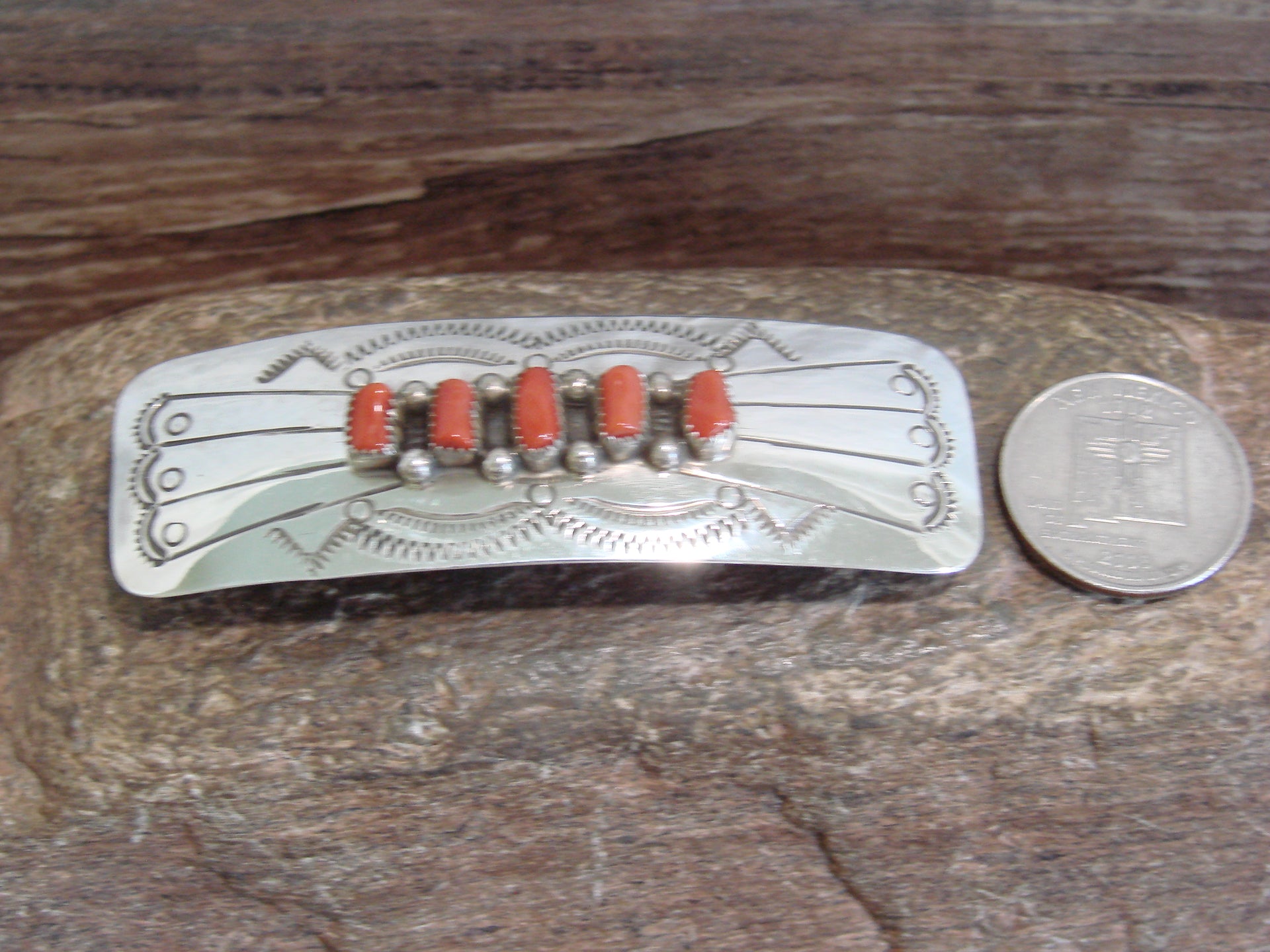 Native American Sterling Silver & Coral Row Hair Barrette by Begay