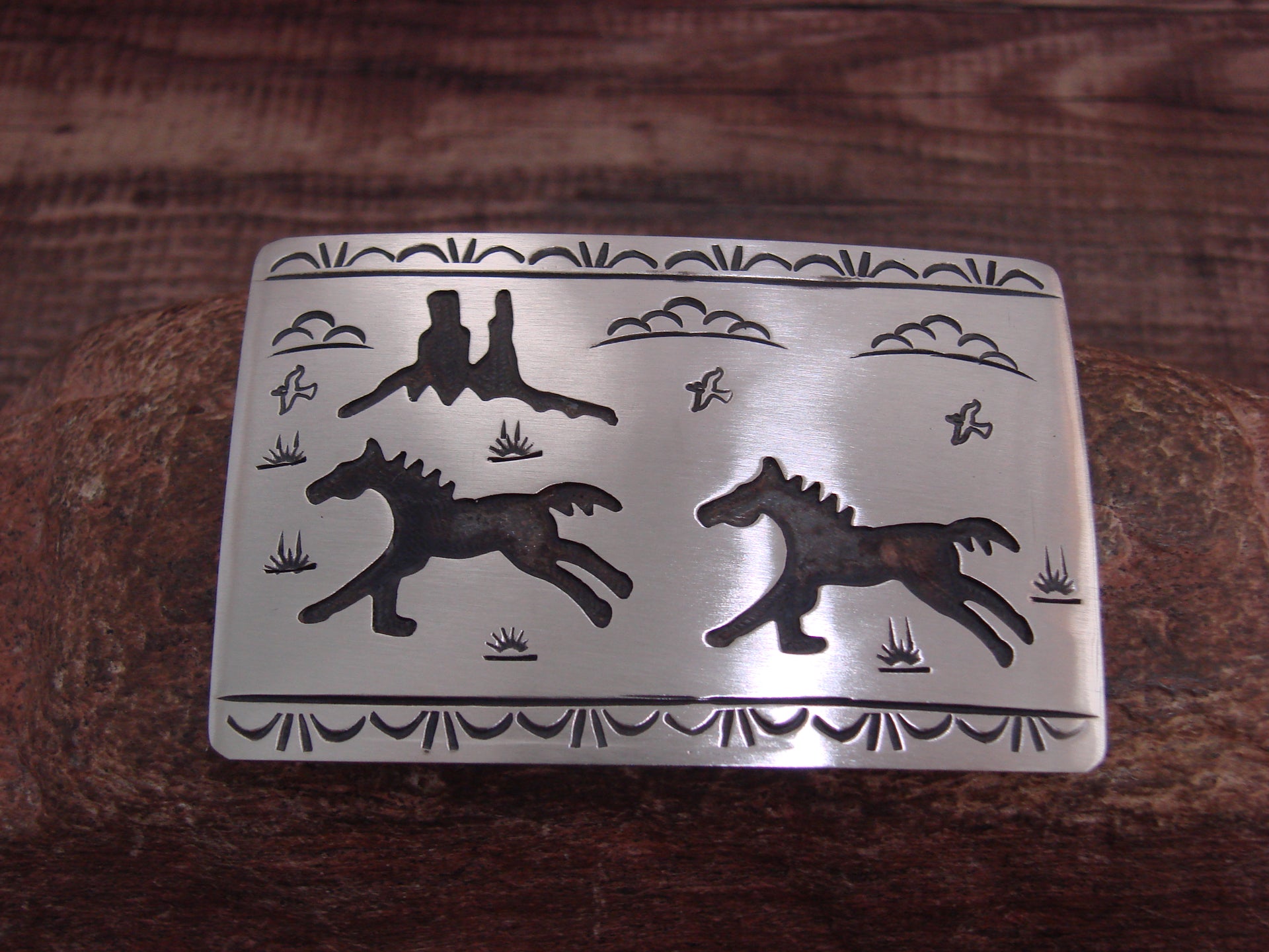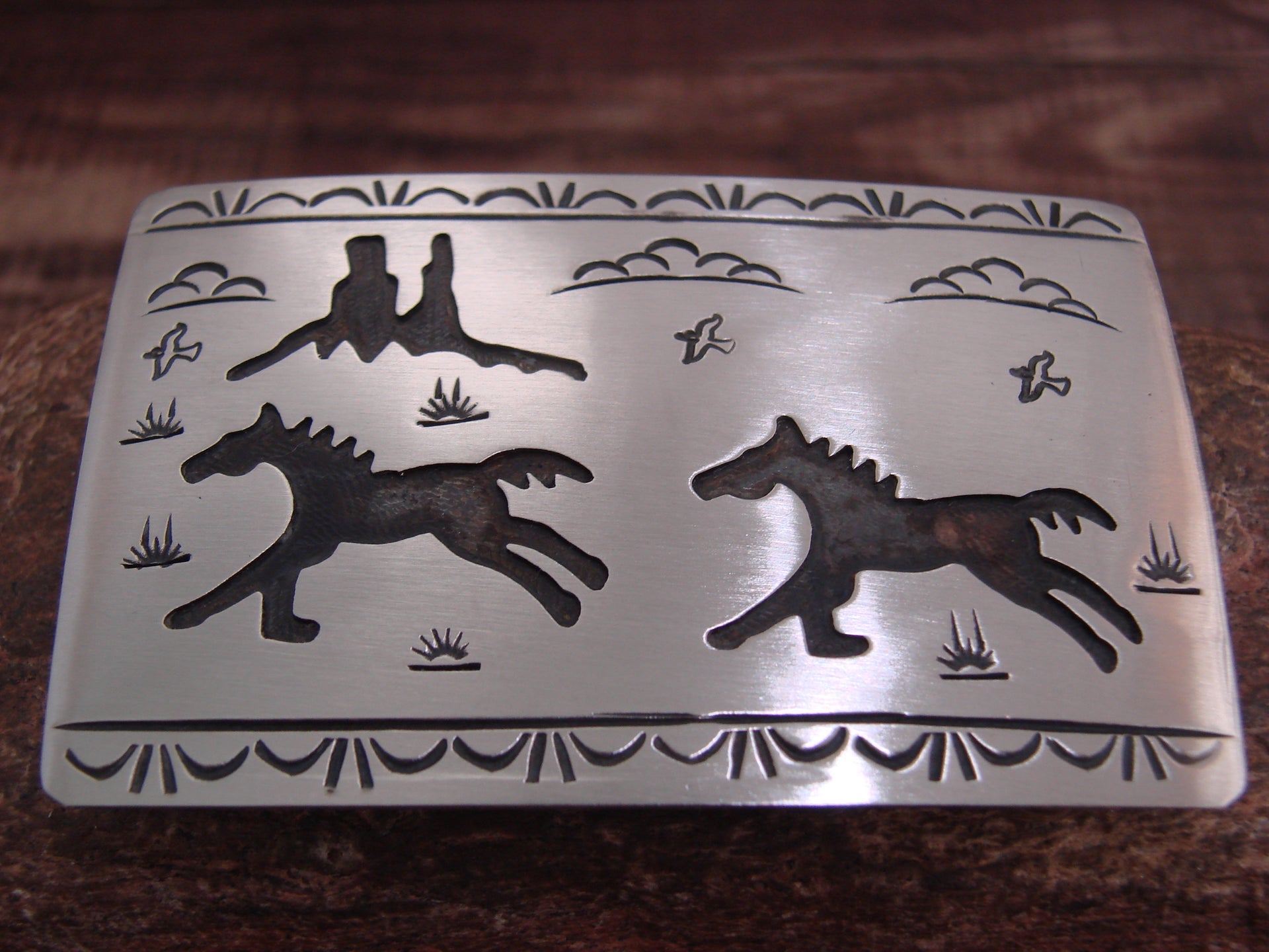 - Native American Sterling Silver Horse Belt Buckle by Begay