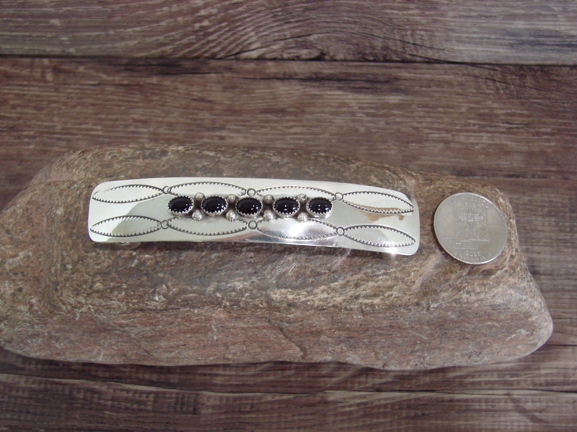 - Native American Sterling Silver & Onyx Hair Barrette by Begay
