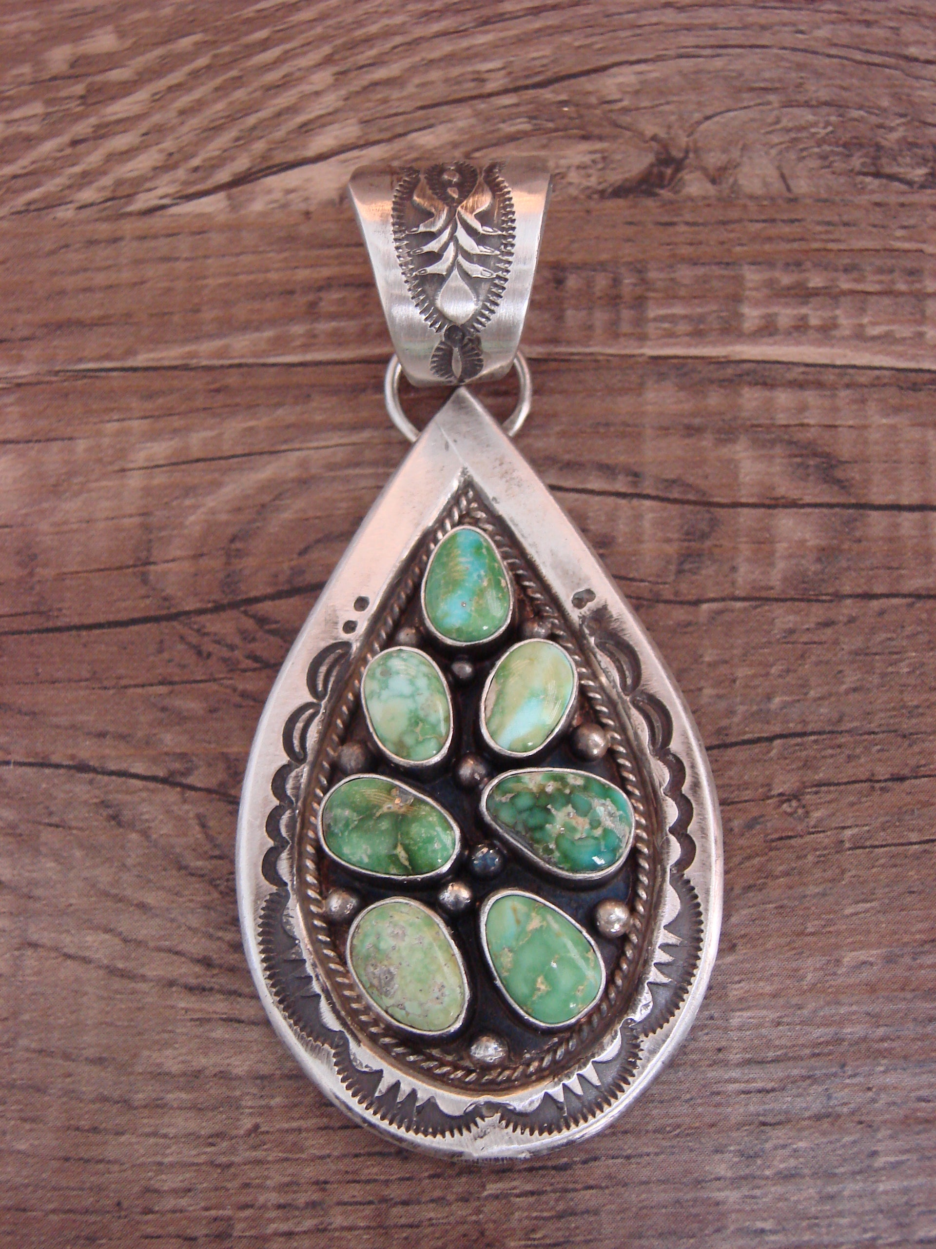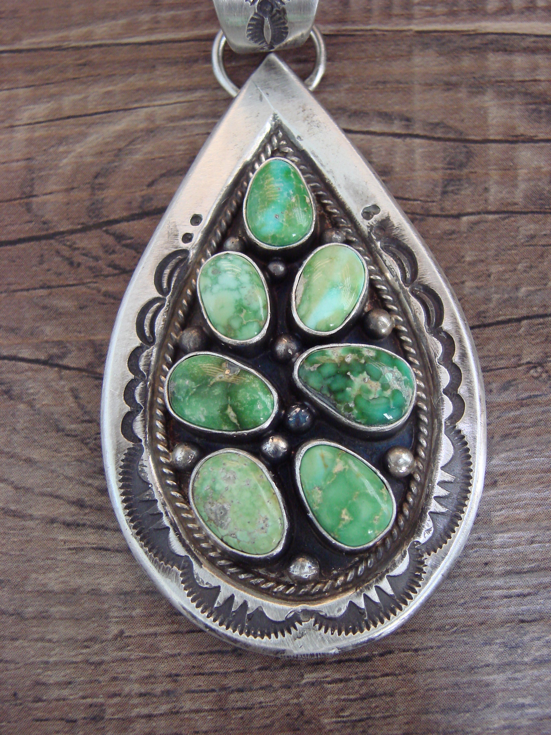 - Native American Sterling Silver & Sonoran Turquoise Cluster Pendant by Lewis