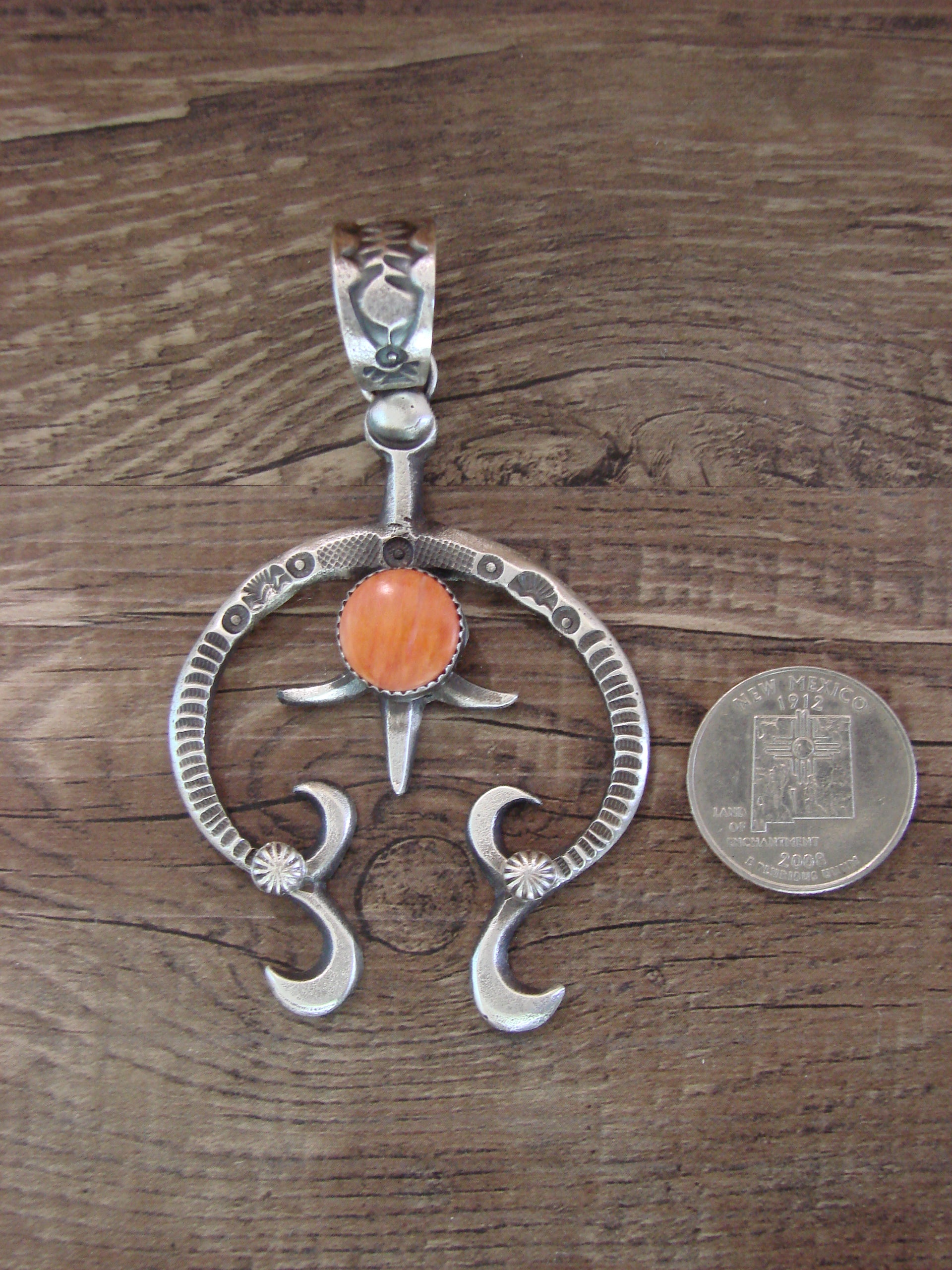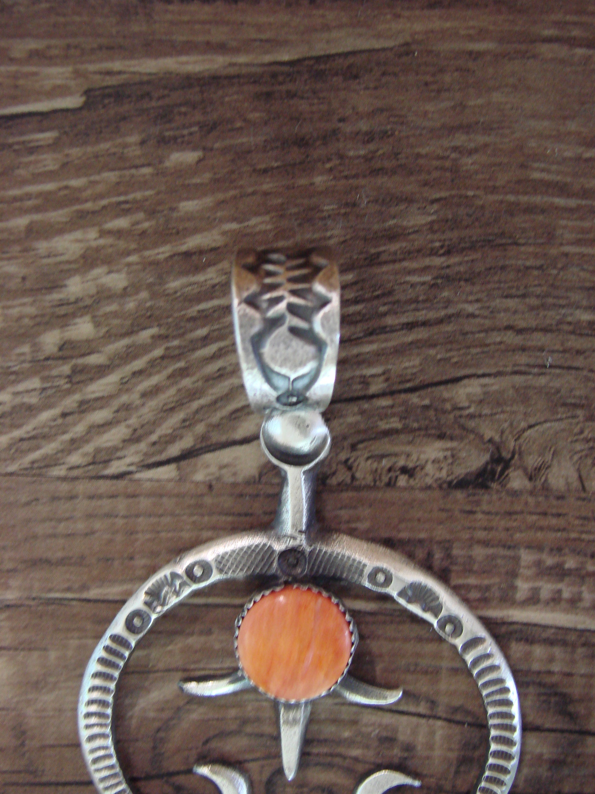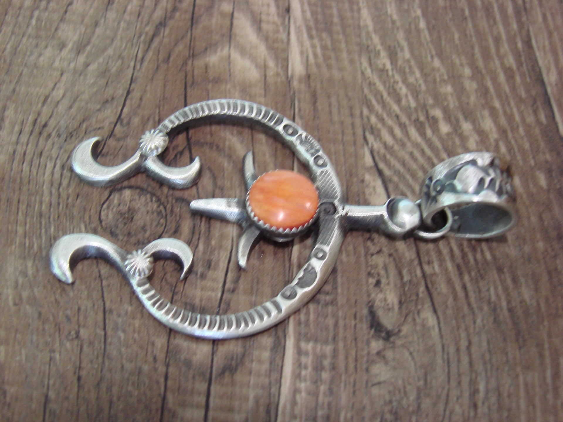 - Native American Sterling Silver & Spiny Oyster Cast Naja Pendant Signed Billah