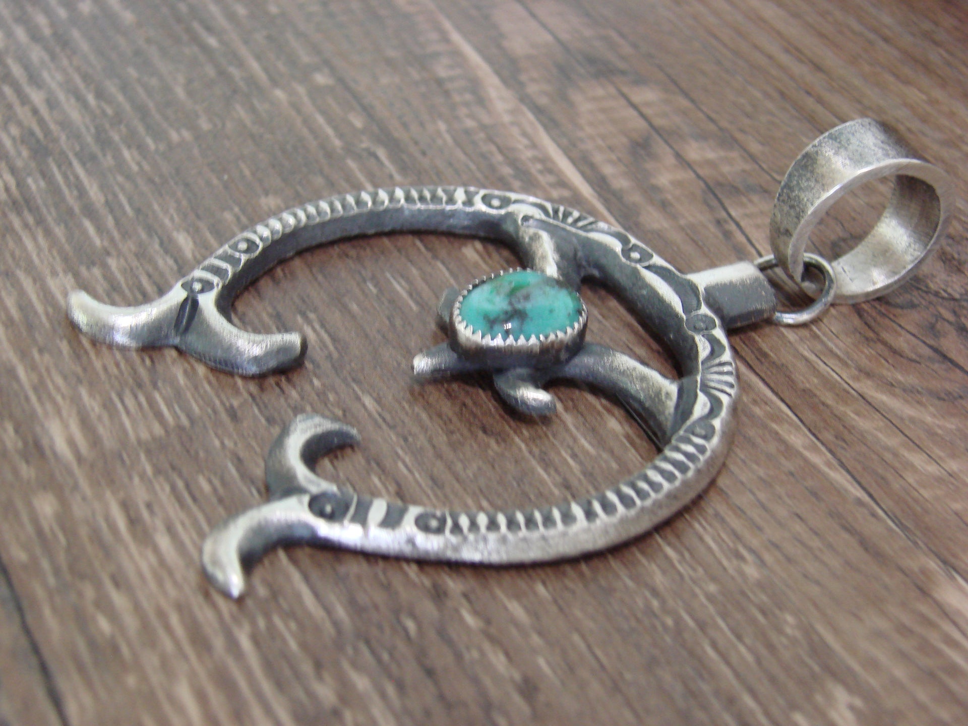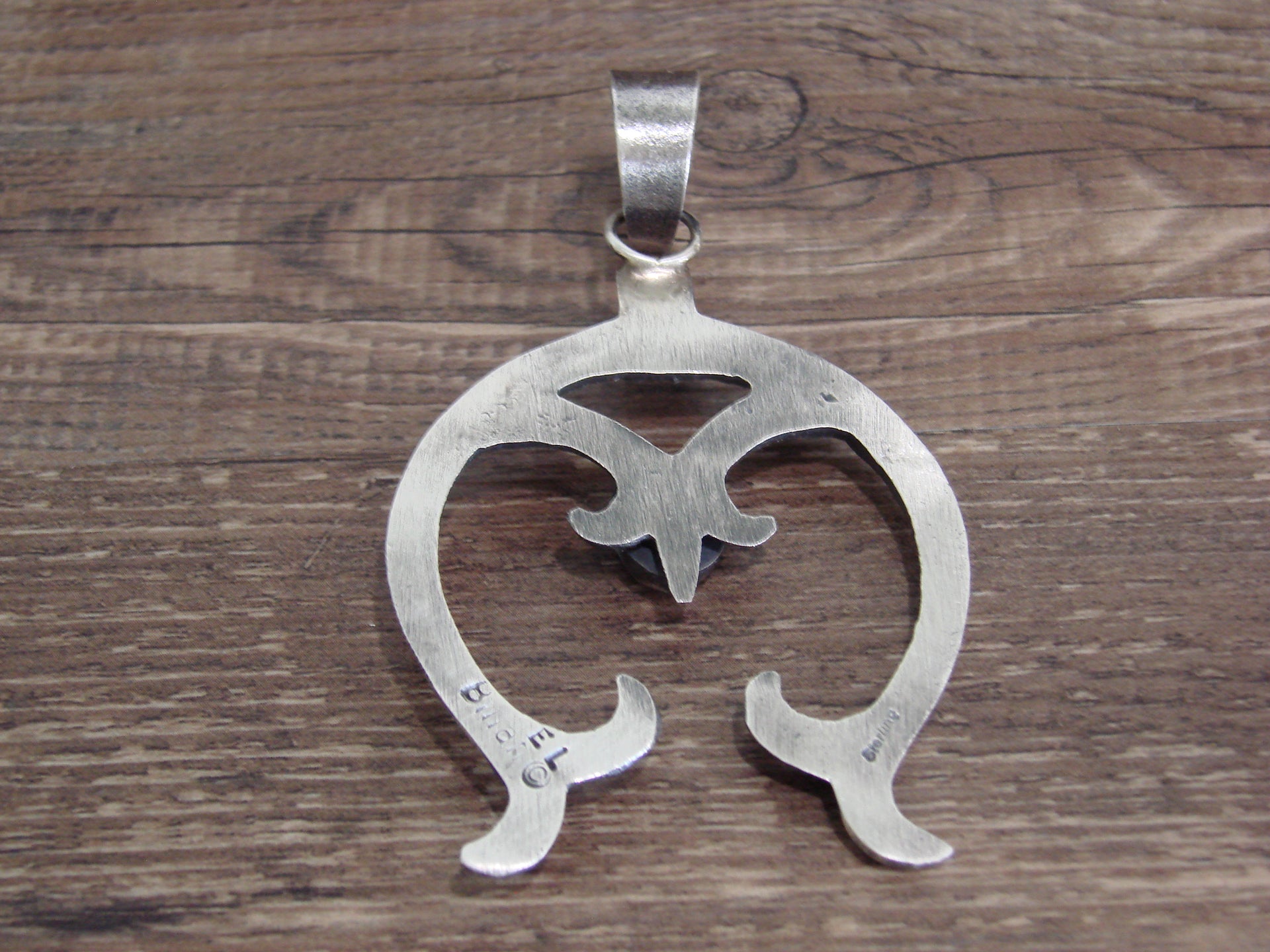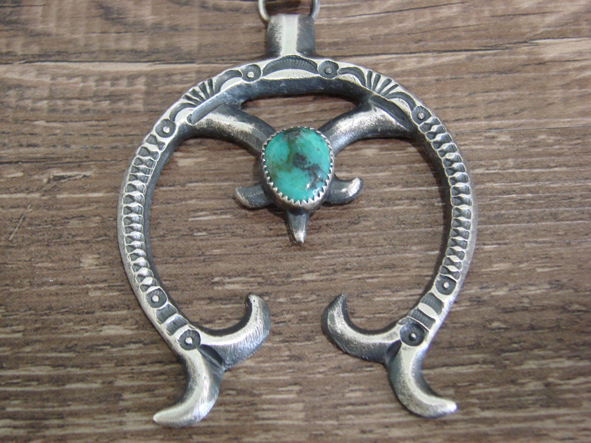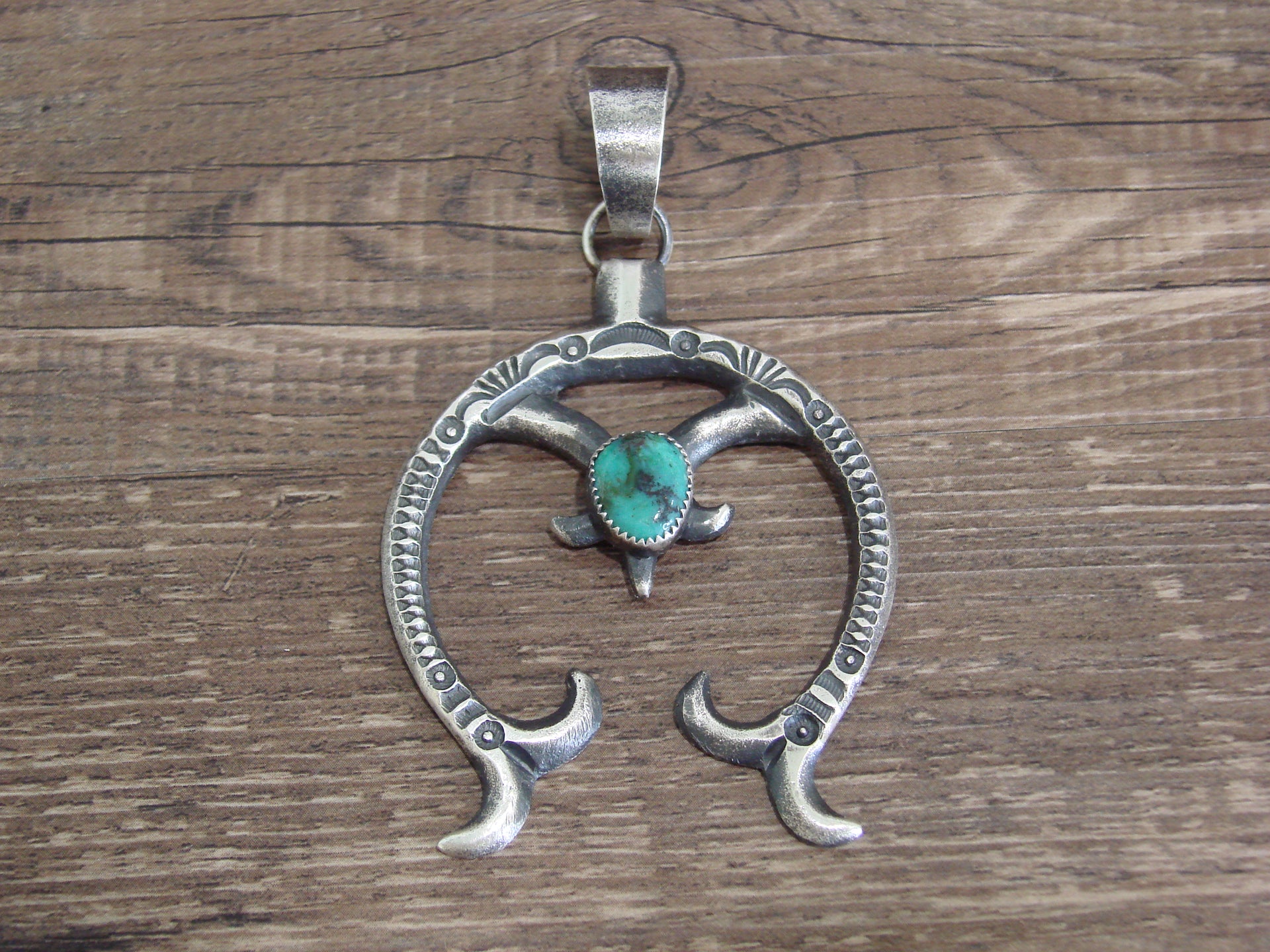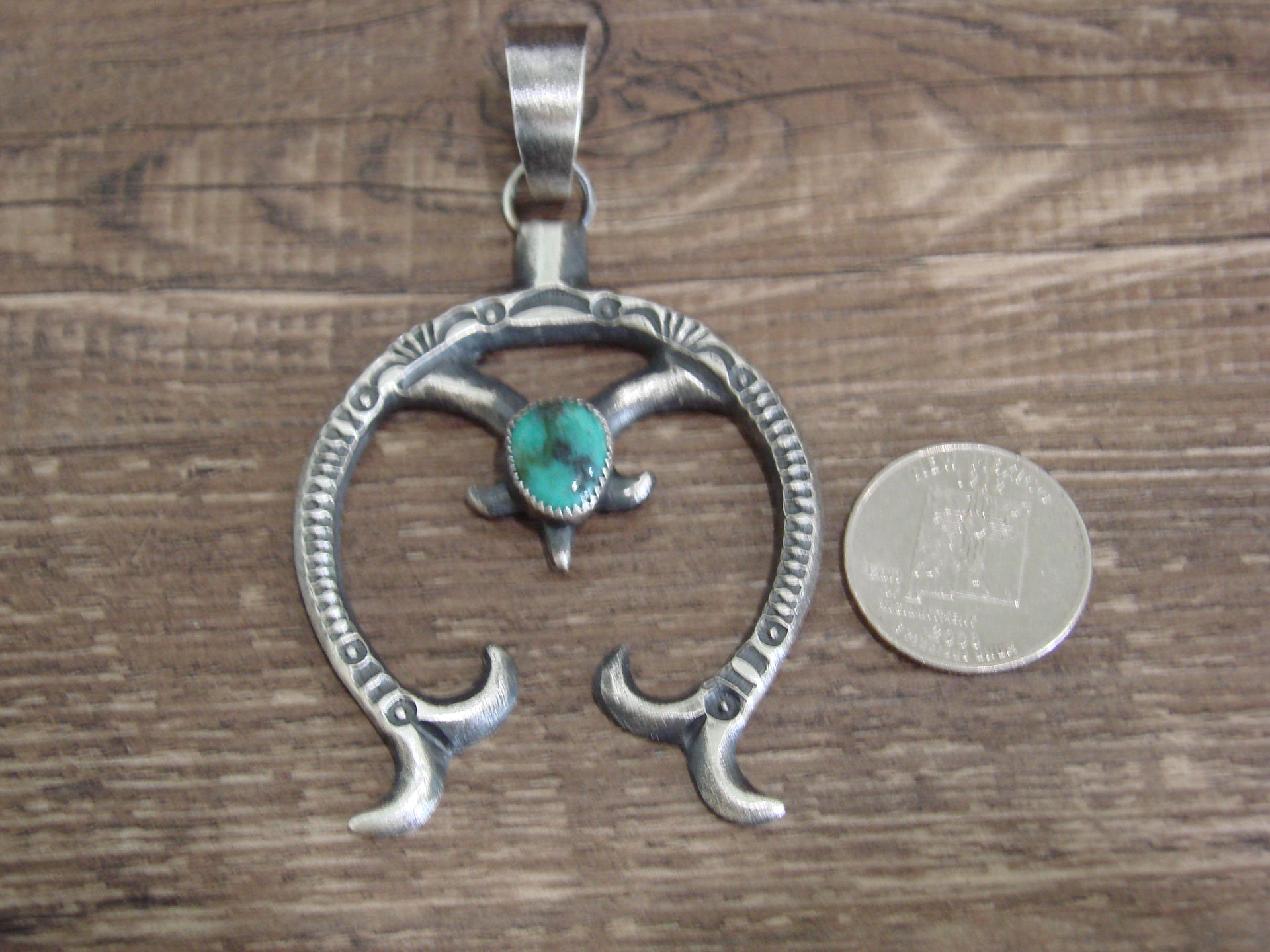 - Native American Sterling Silver & Turquoise Cast Naja Pendant Signed Billah