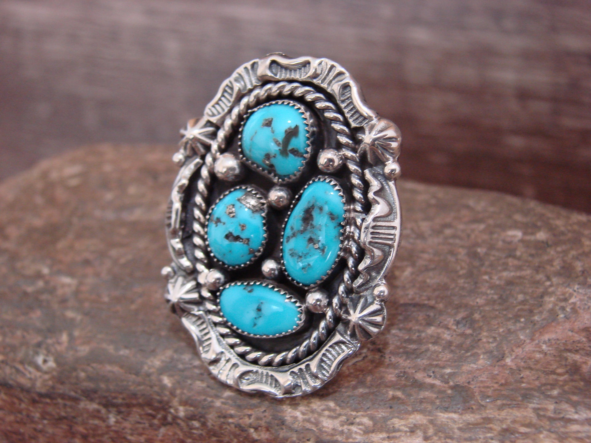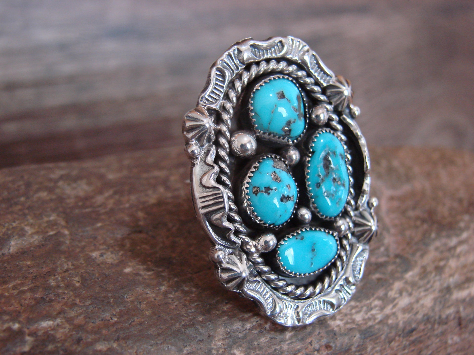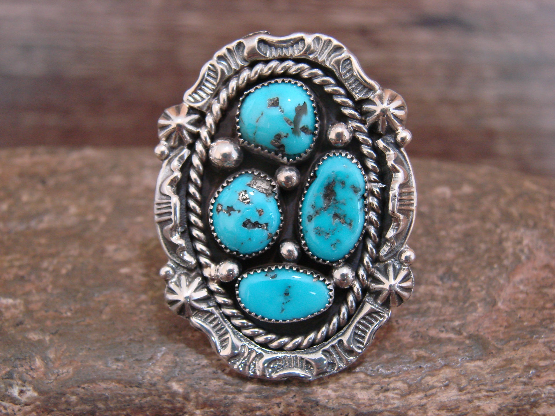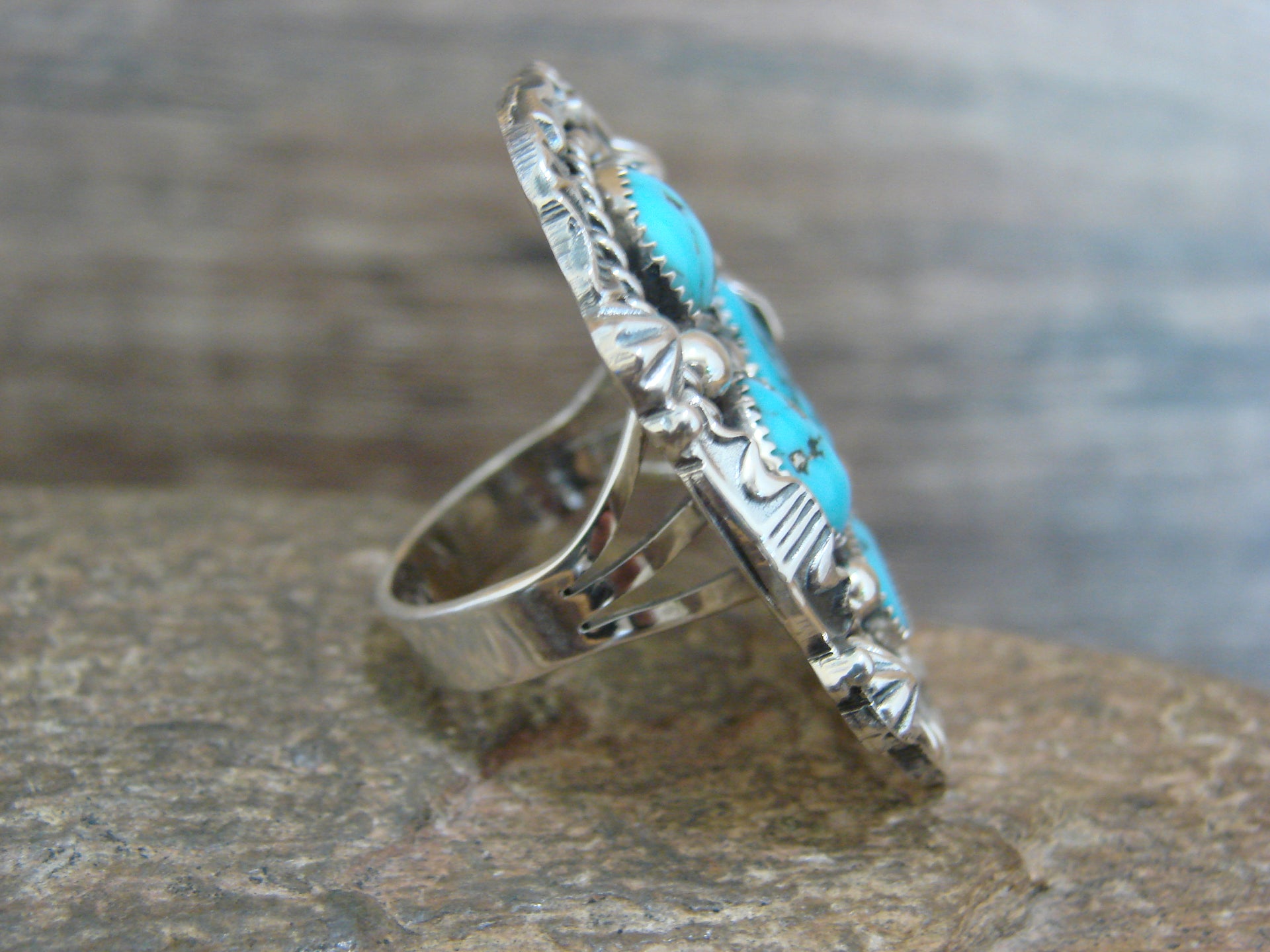 Native American Sterling Silver & Turquoise Cluster Ring by Becenti - Size 6.5