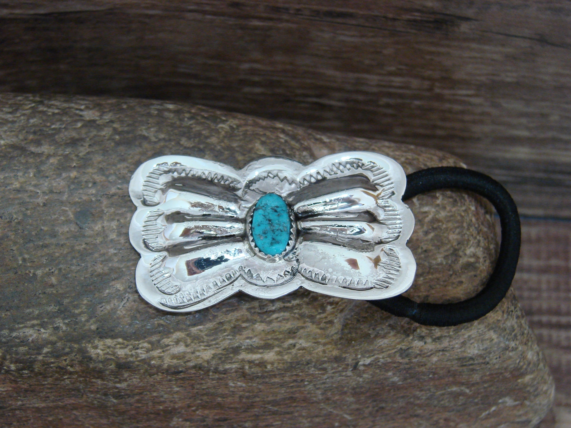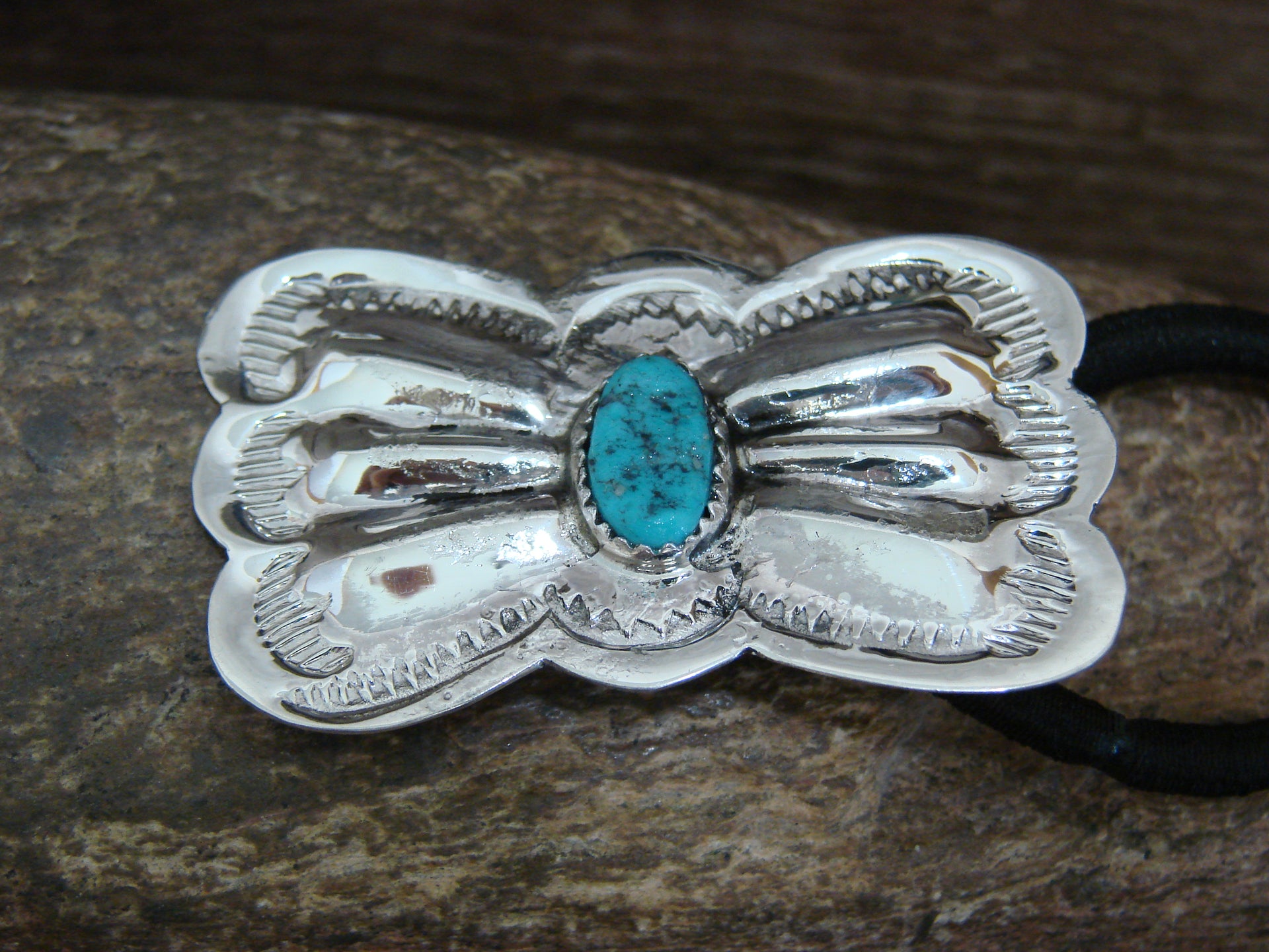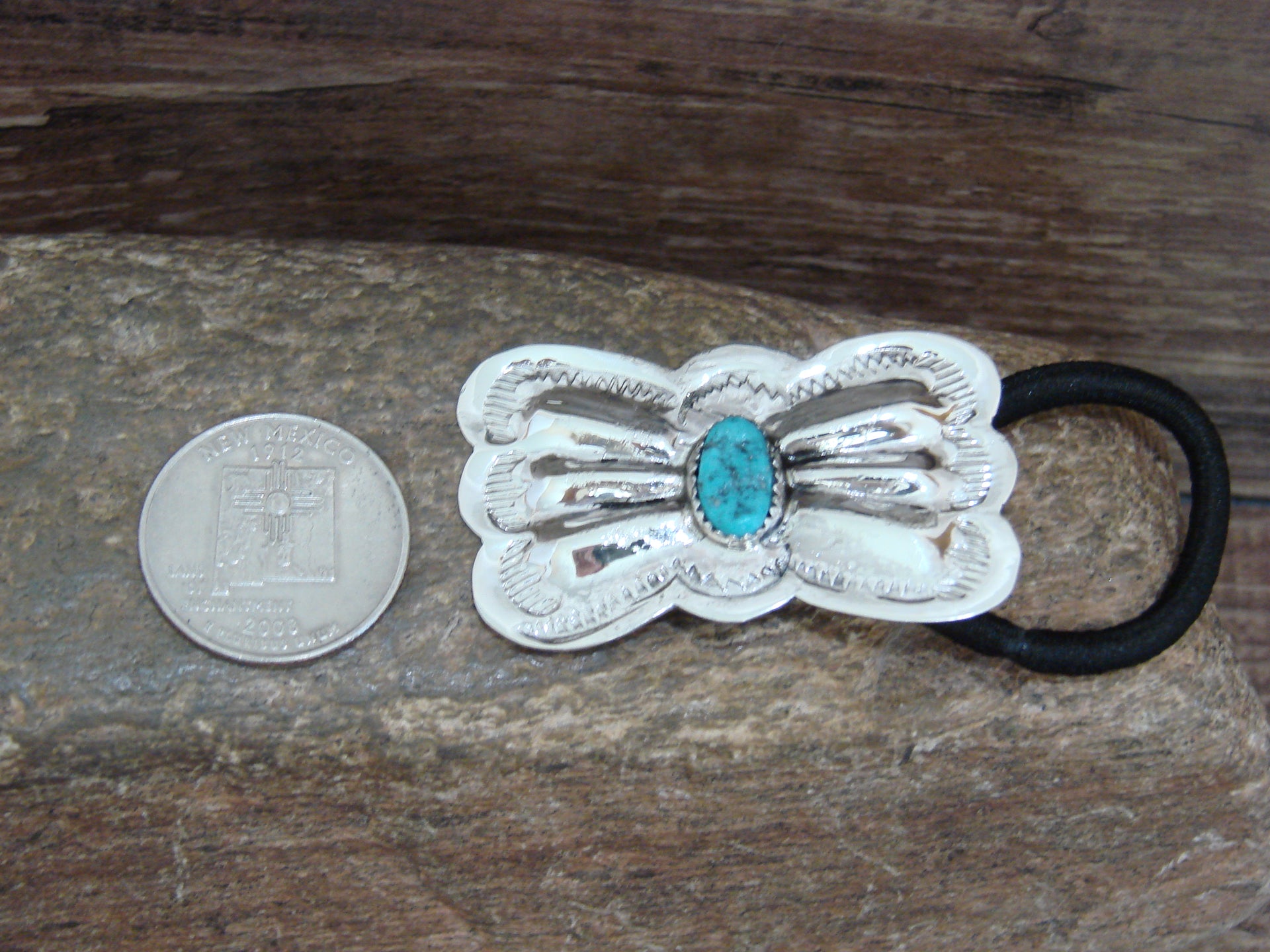 Native American Sterling Silver & Turquoise Concho Hair Tie by Yazzie