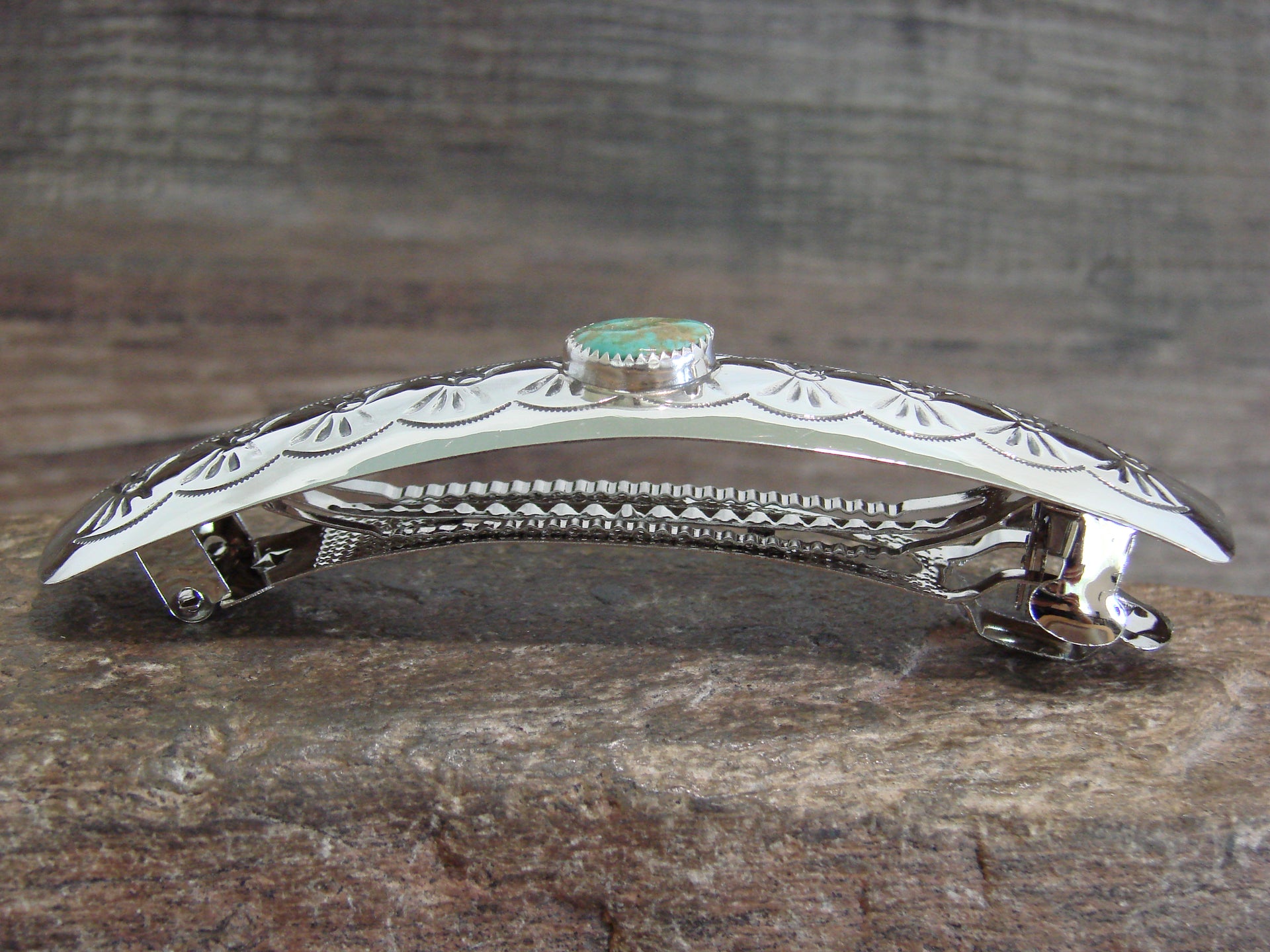Native American Sterling Silver & Turquoise Hair Barrette by Begay