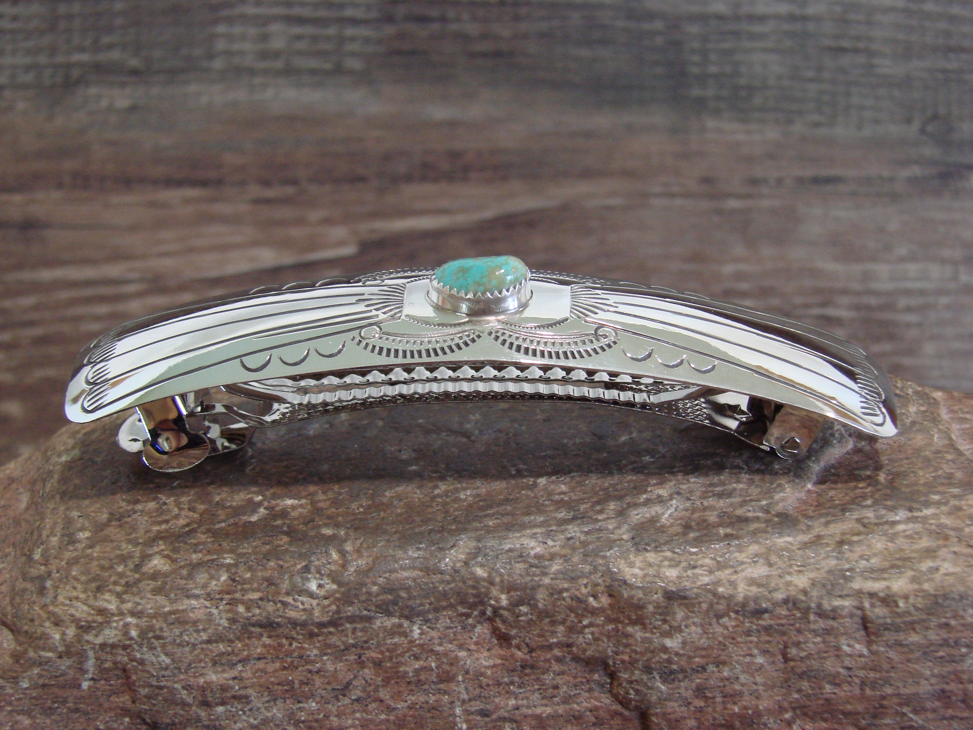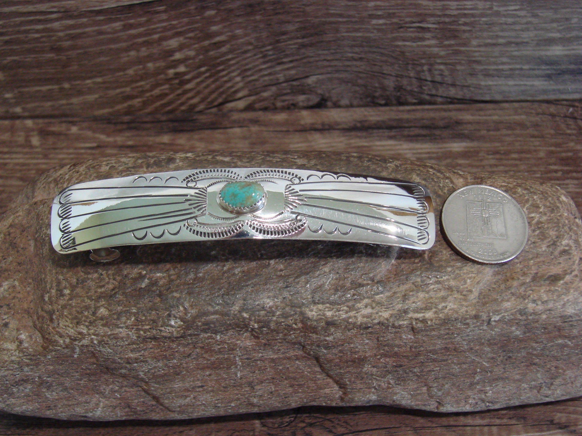Native American Sterling Silver & Turquoise Hair Barrette by Begay