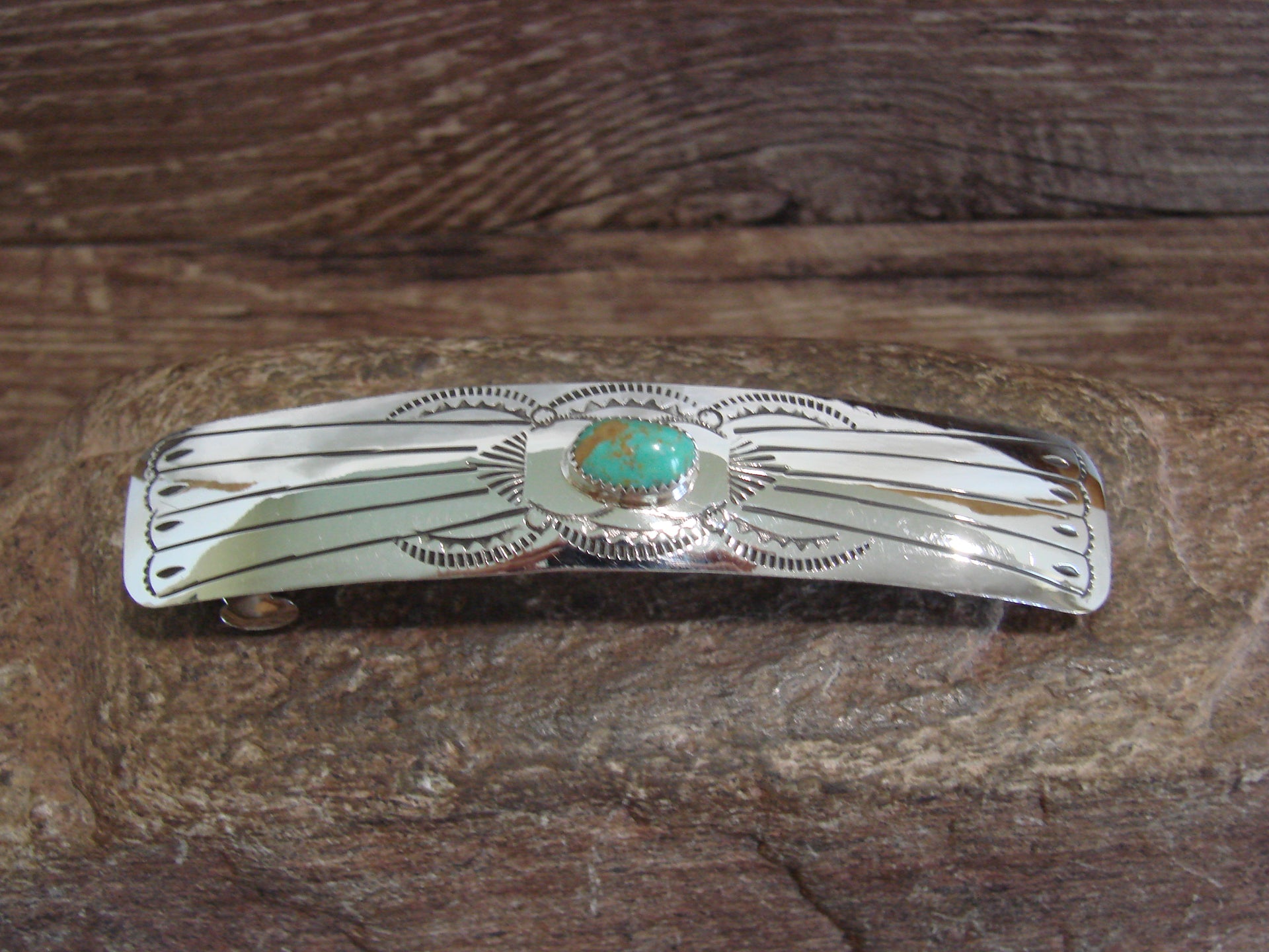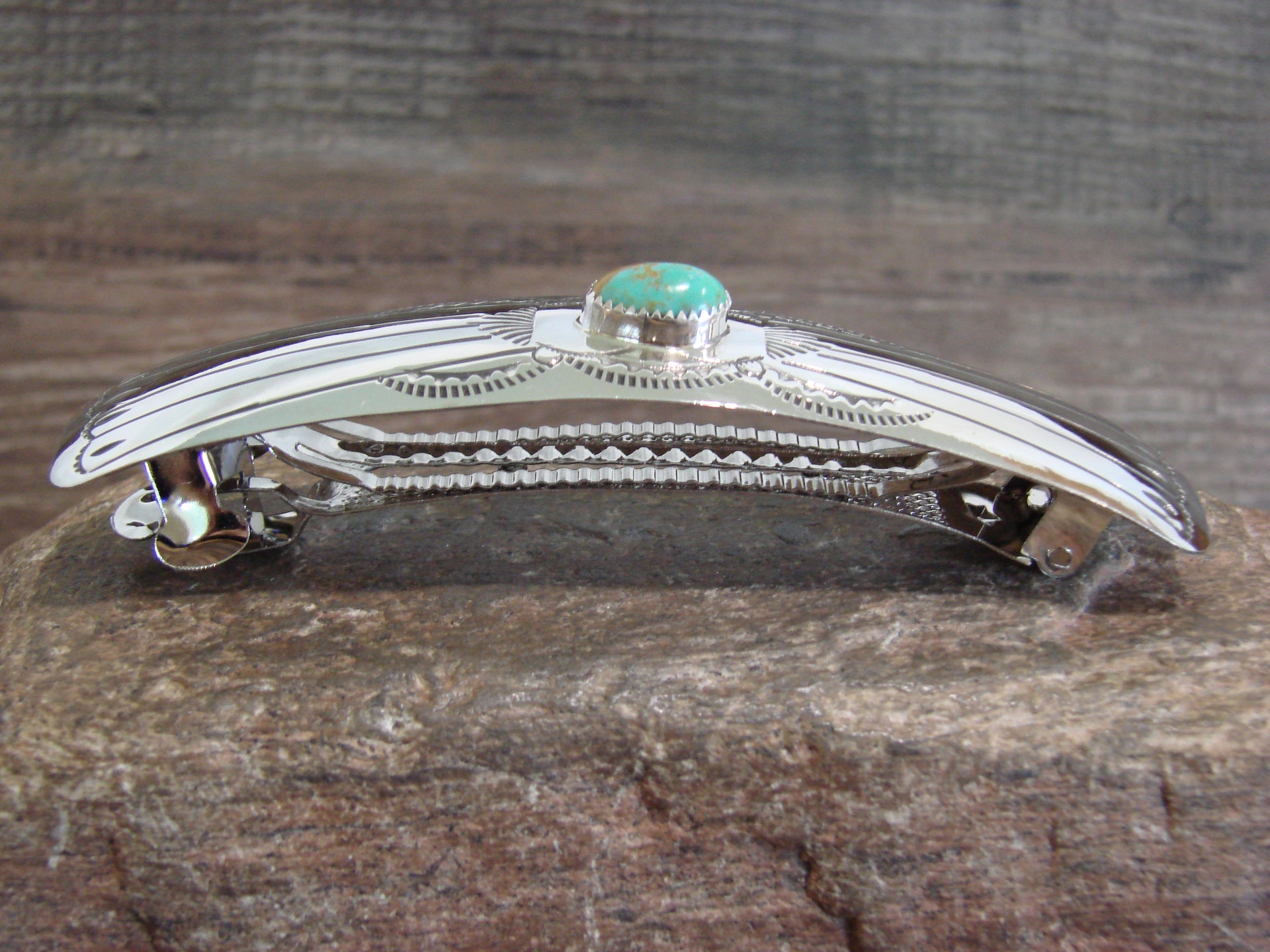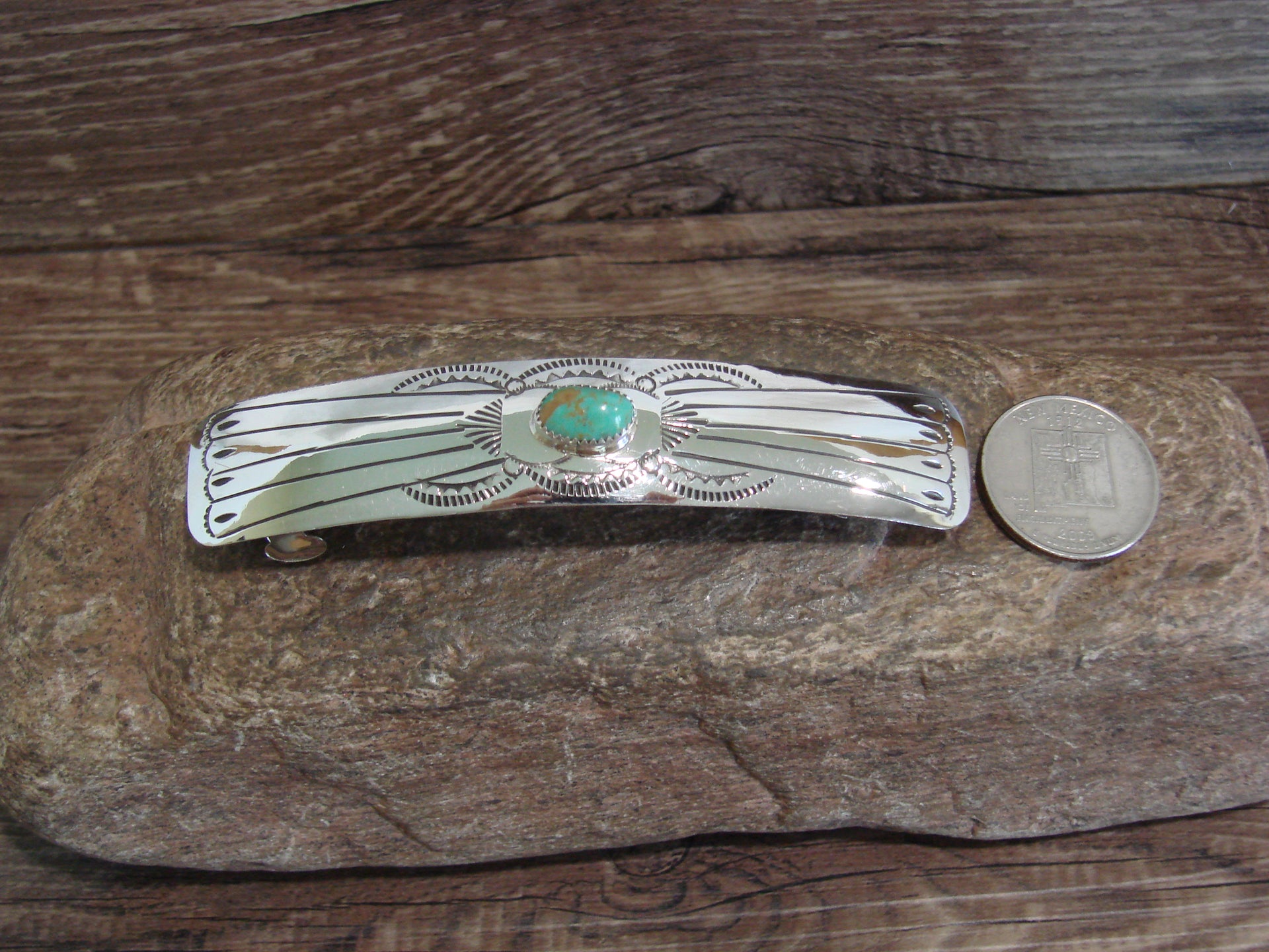 Native American Sterling Silver & Turquoise Hair Barrette by Begay