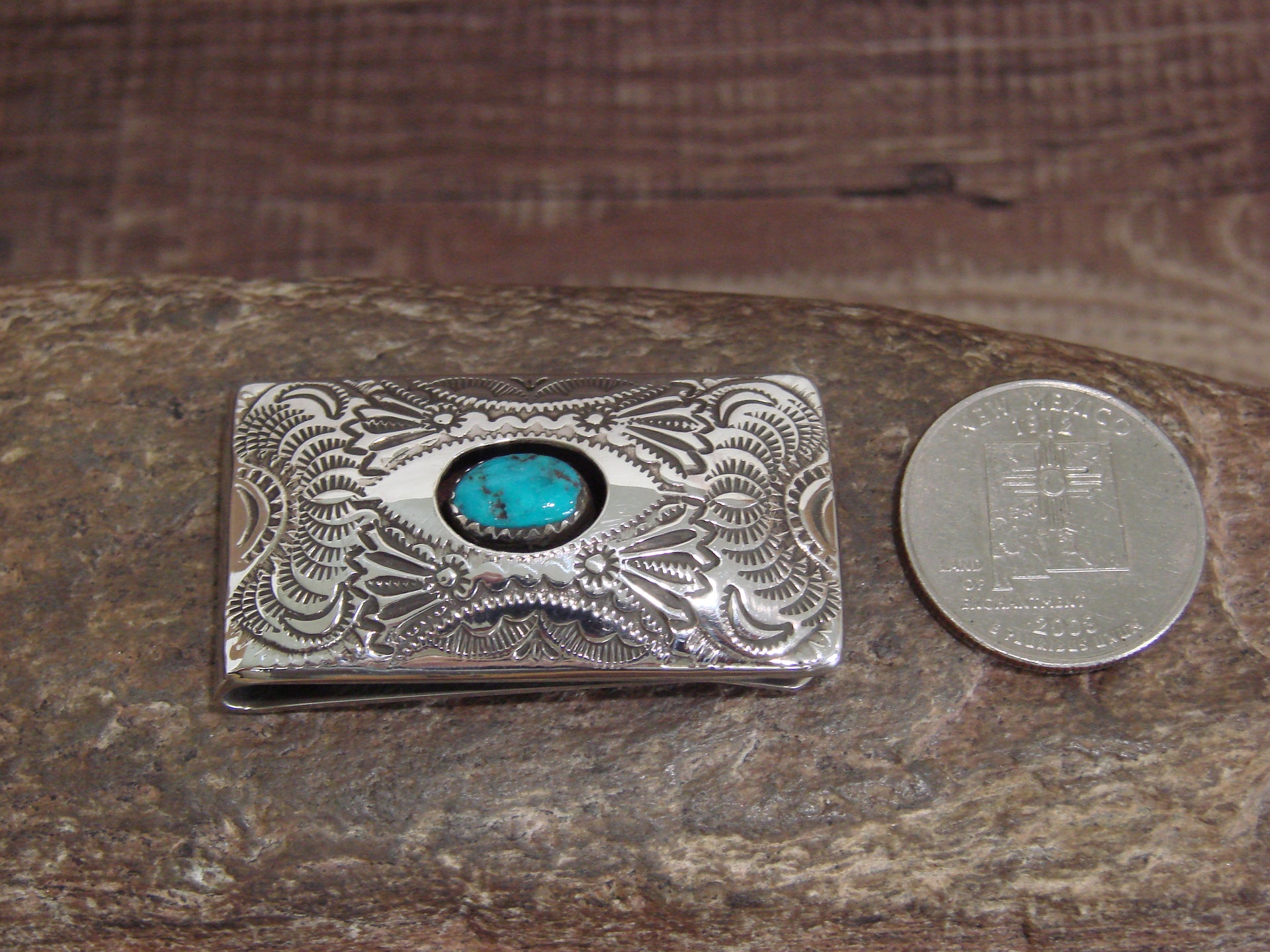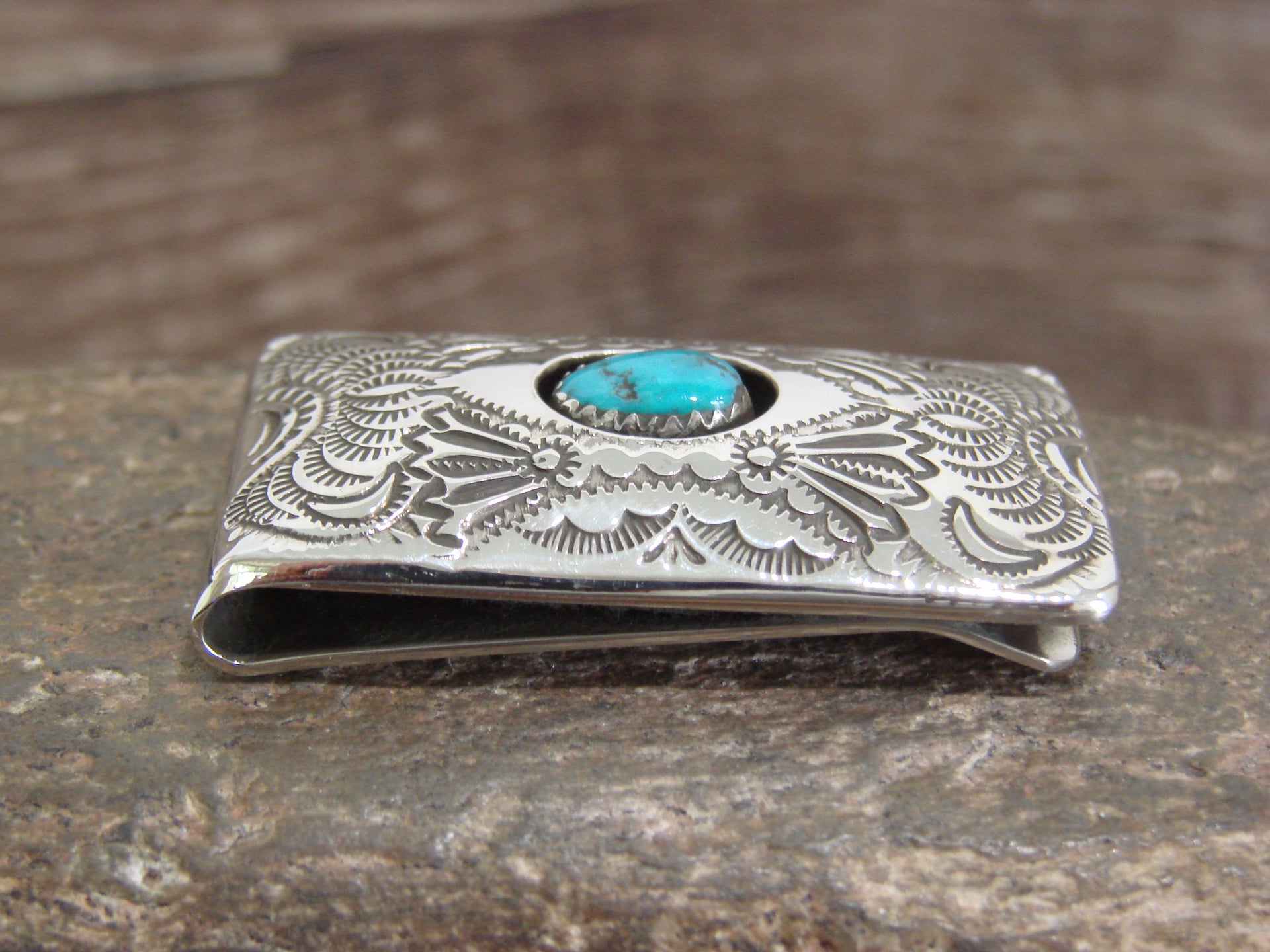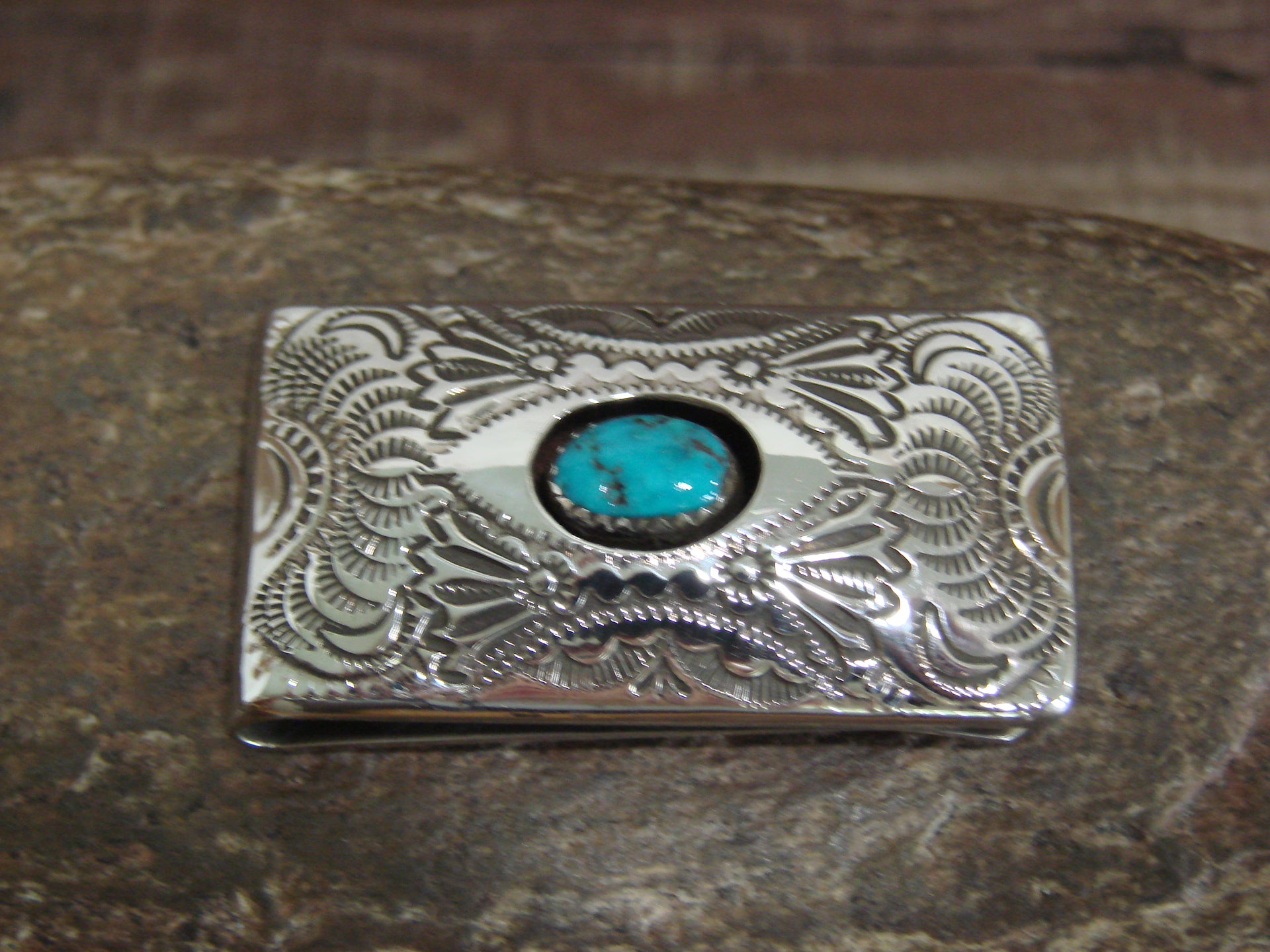- Native American Sterling Silver & Turquoise Money Clip - Skeets