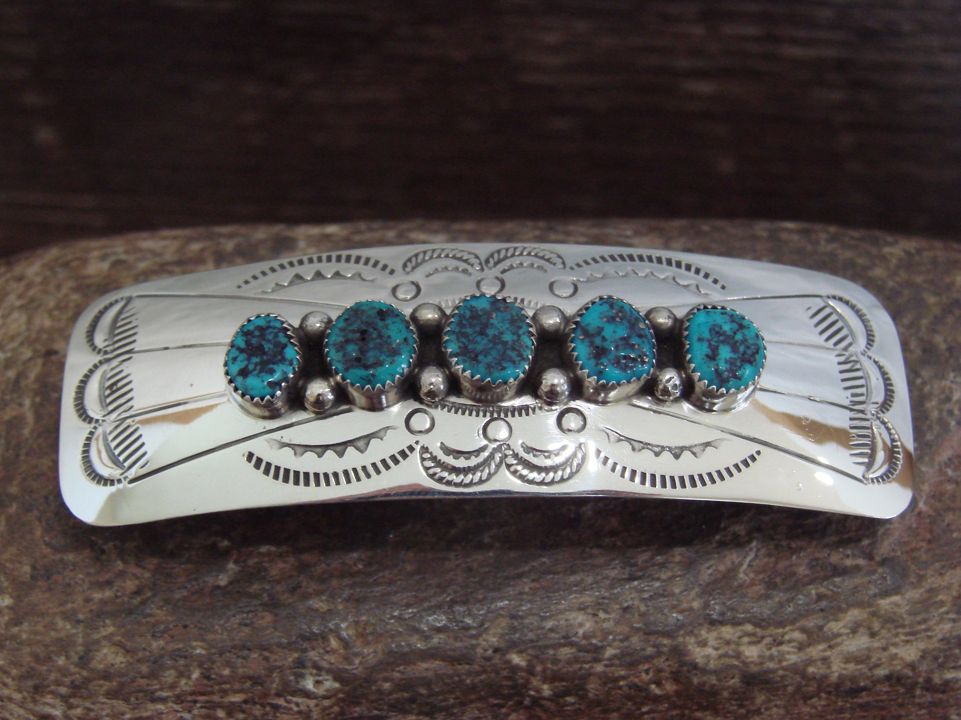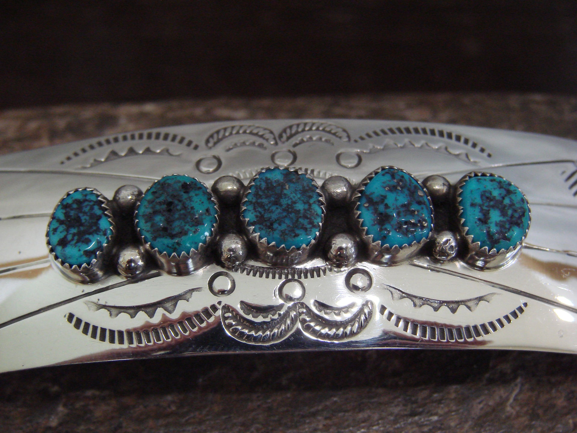 - Native American Sterling Silver & Turquoise Row Hair Barrette by Begay