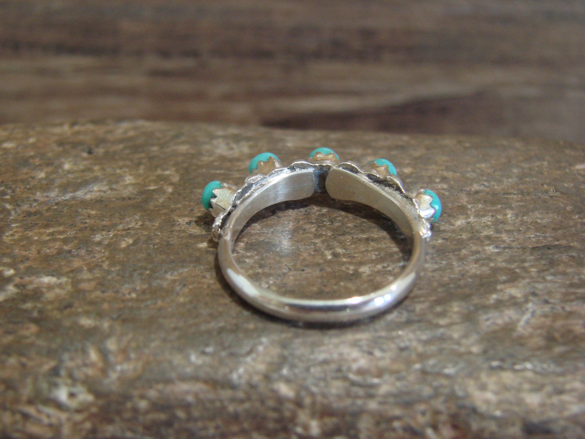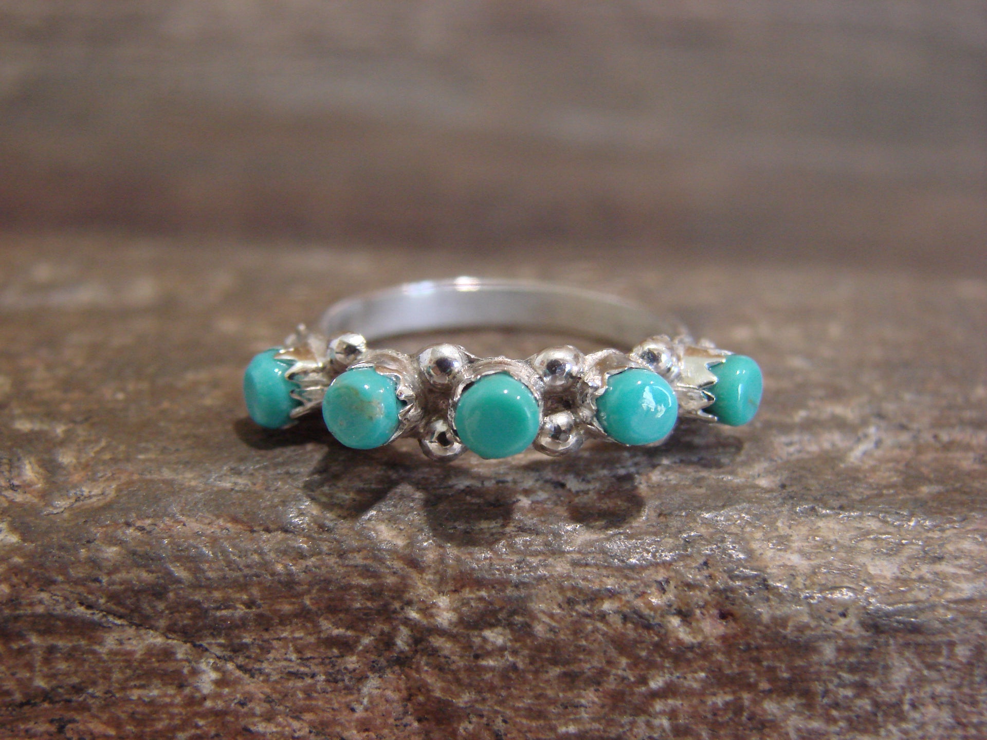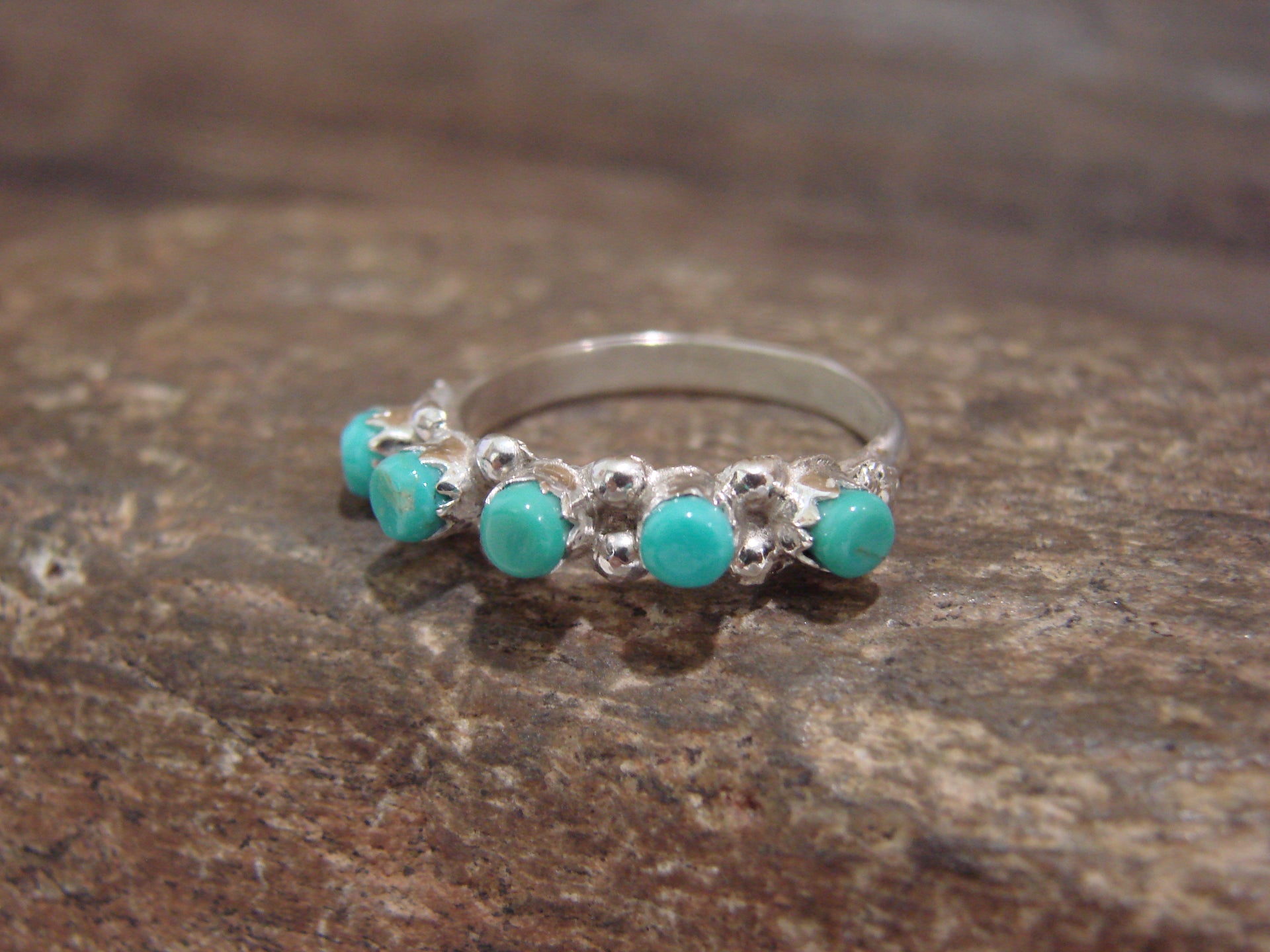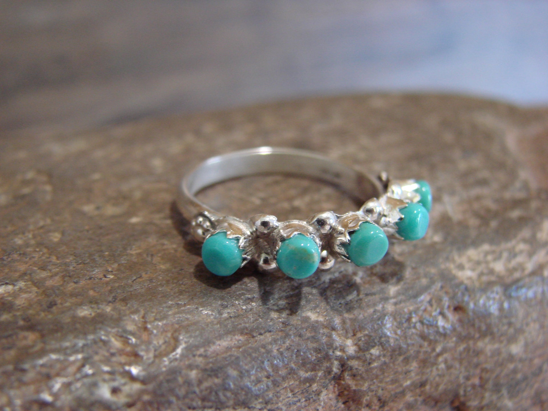 Genuine Native American Zuni Indian Sterling Silver Turquoise Row Ring from Western New Mexico. This Stunning ring features beautiful Genuine Turquoise stones set into a crown Sterling Silver bezel settings. Polished to a bright shine, this is a very nice ring! Zuni Indian Handmade by Lynnette Laate. Free Shipping and gift box included!
