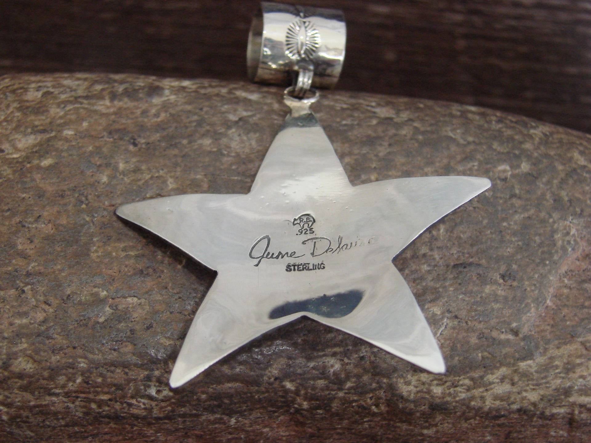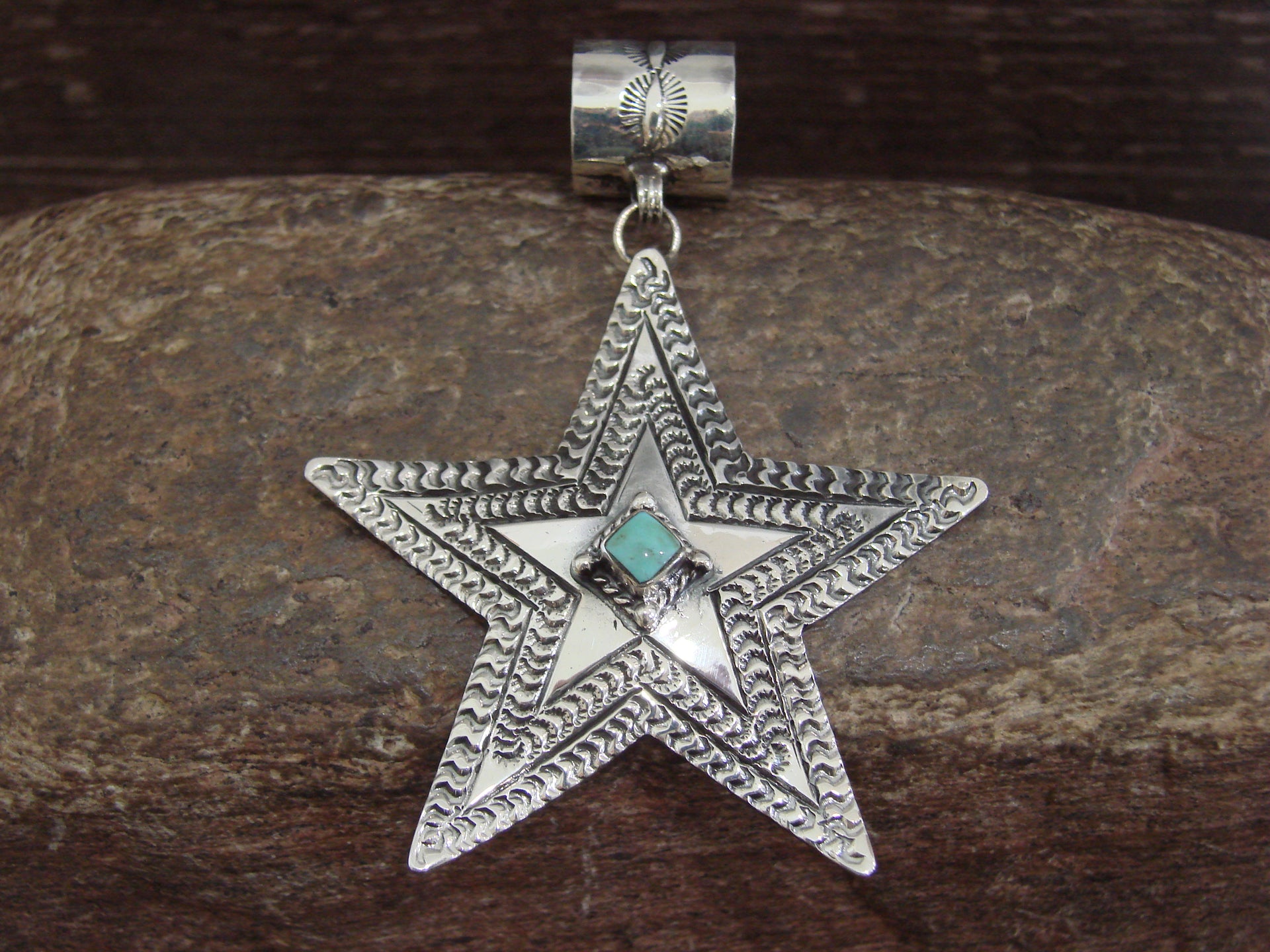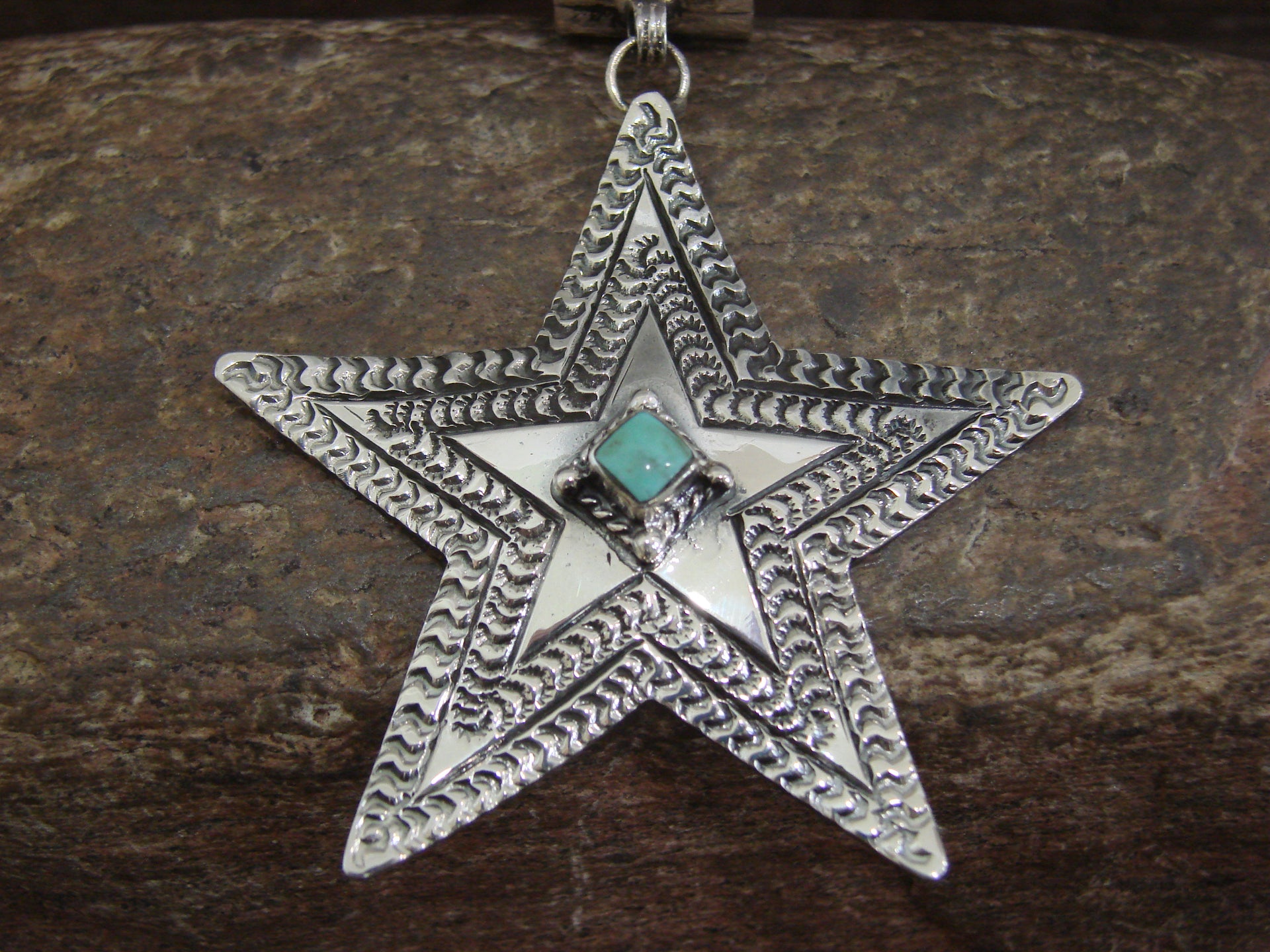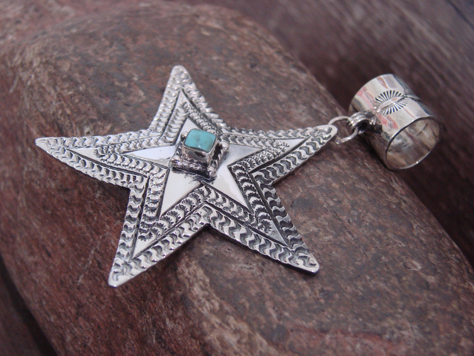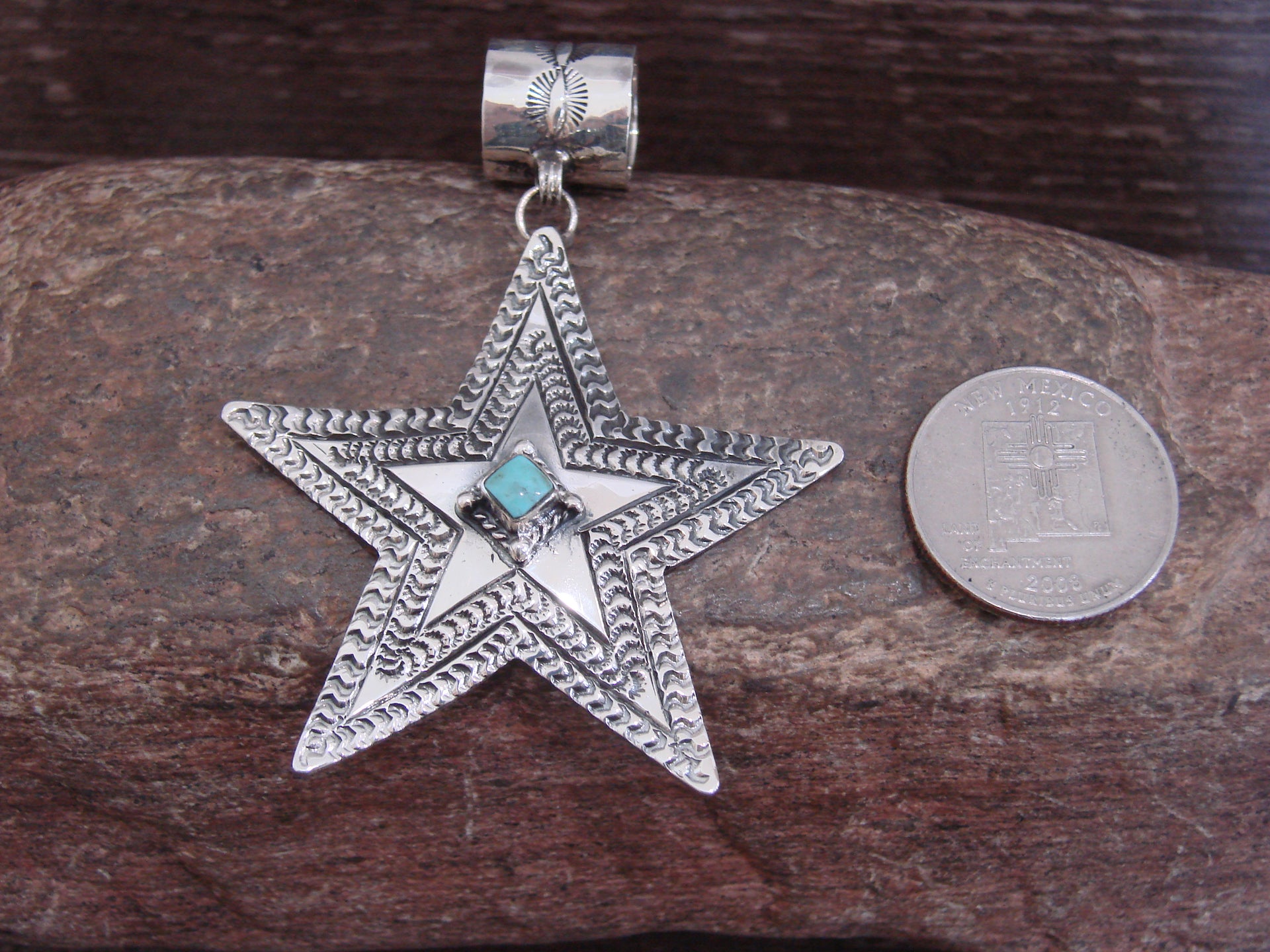 - Native American Sterling Silver & Turquoise Star Pendant Signed Delgarito