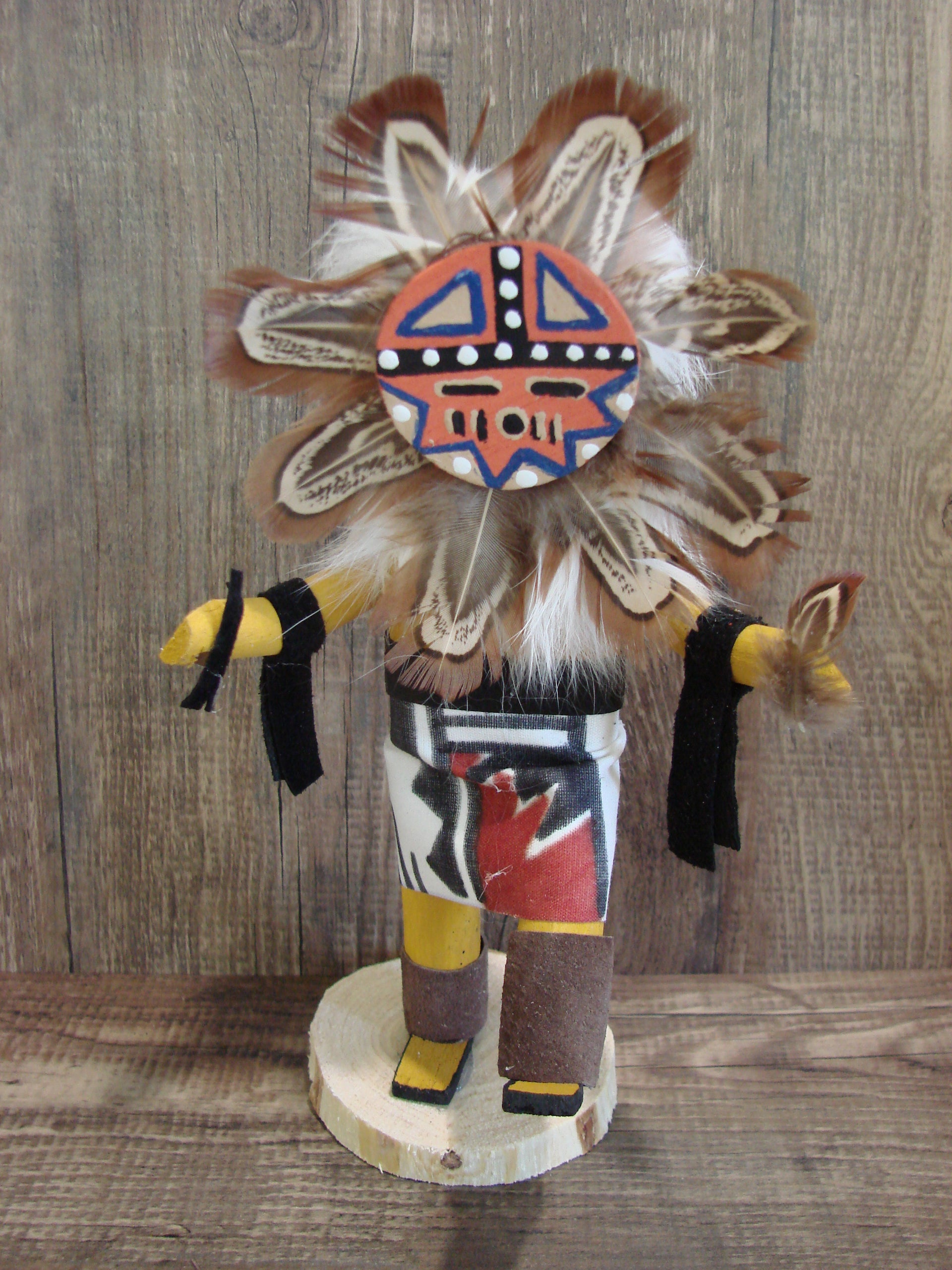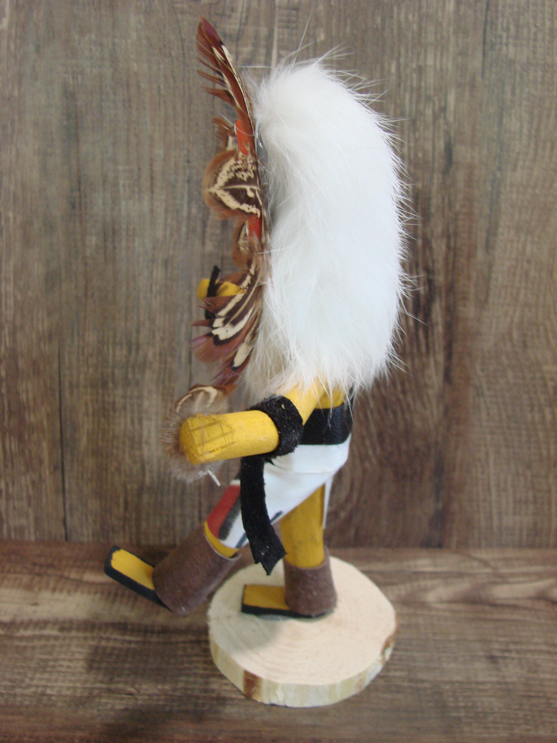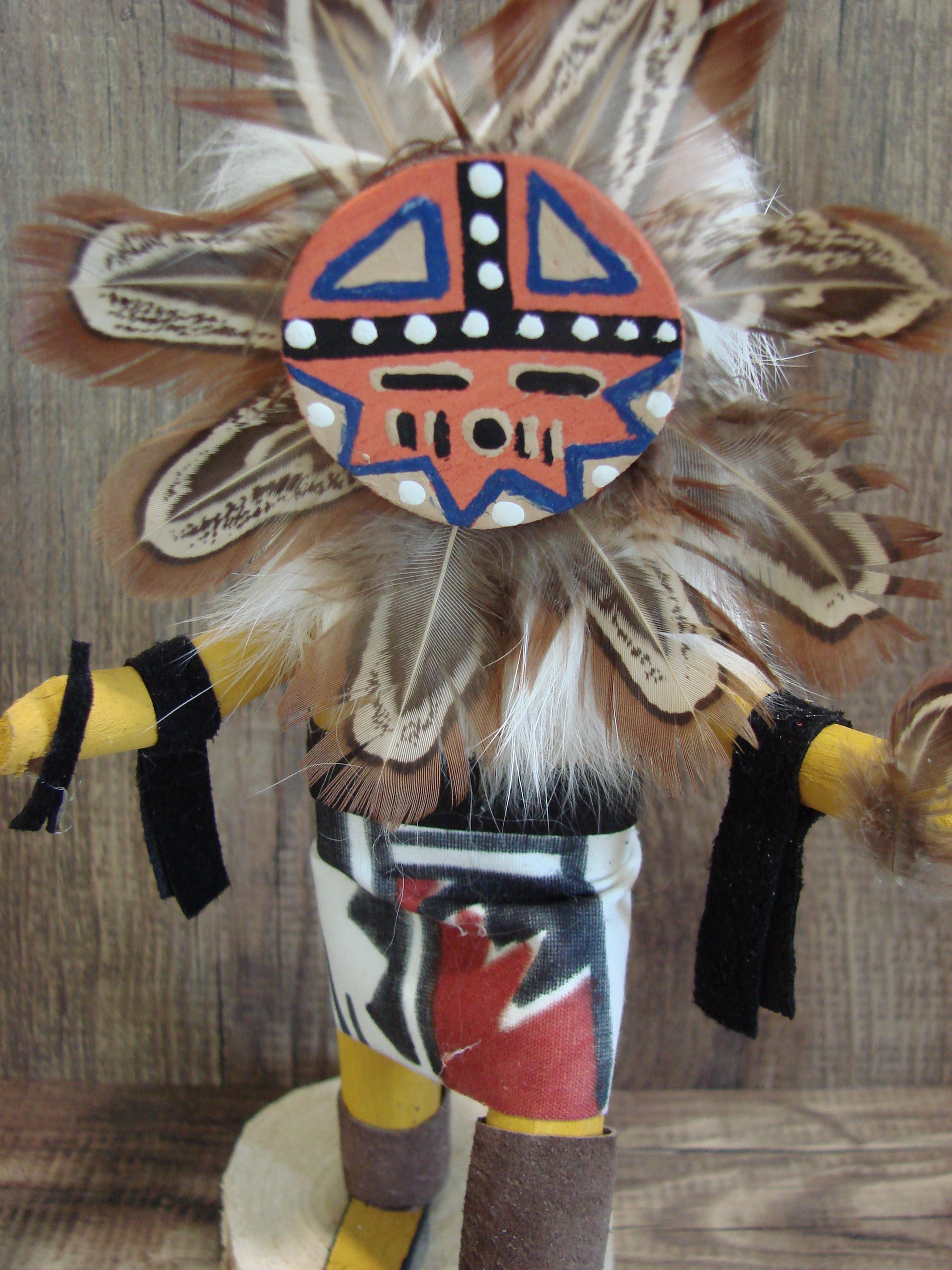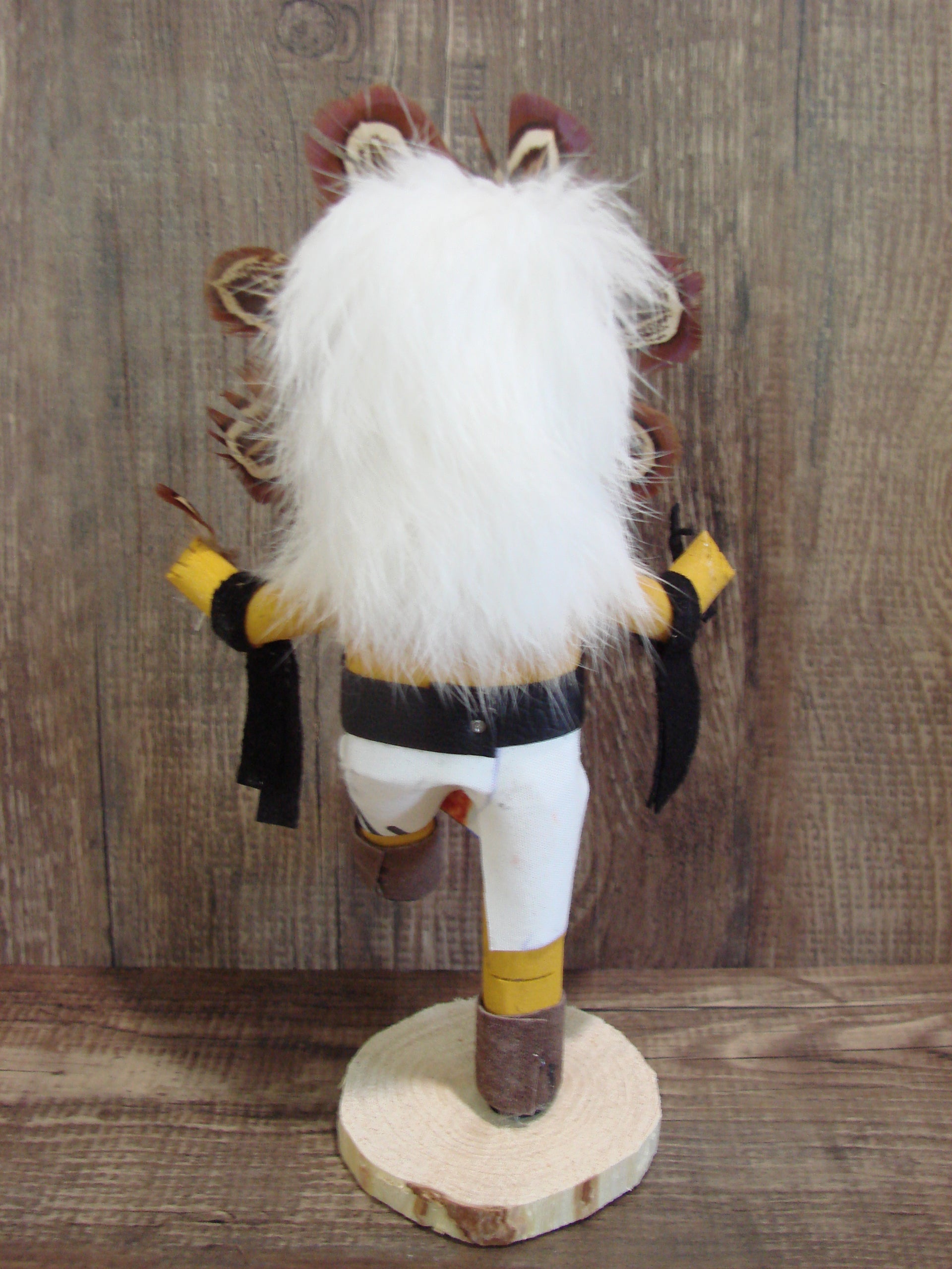 Native American Navajo Indian Kachina Dancer from the Navajo Nation. This Kachina features beautiful hand painting and hand carving from top to bottom. This Kachina is carved into pine and decorated with feathers, Rabbit Fur, and leather. Navajo Indian Handmade and Signed by E.W. on the base. Free shipping included!