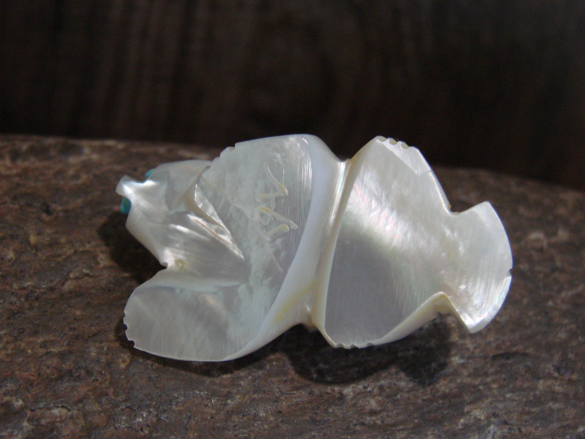 - Native American Zuni Indian Hand Carved Mother of Pearl Badger Fetish- Latte