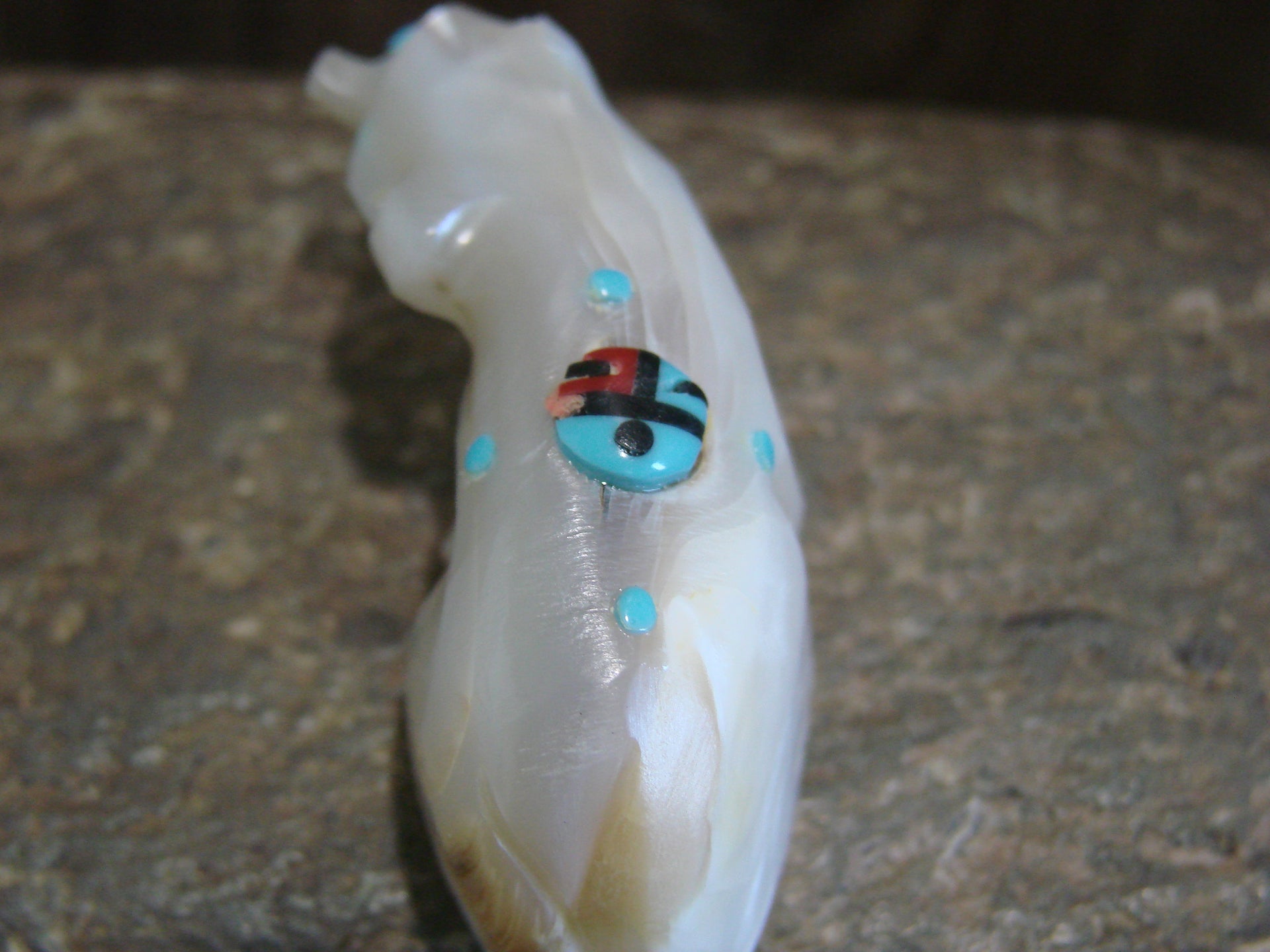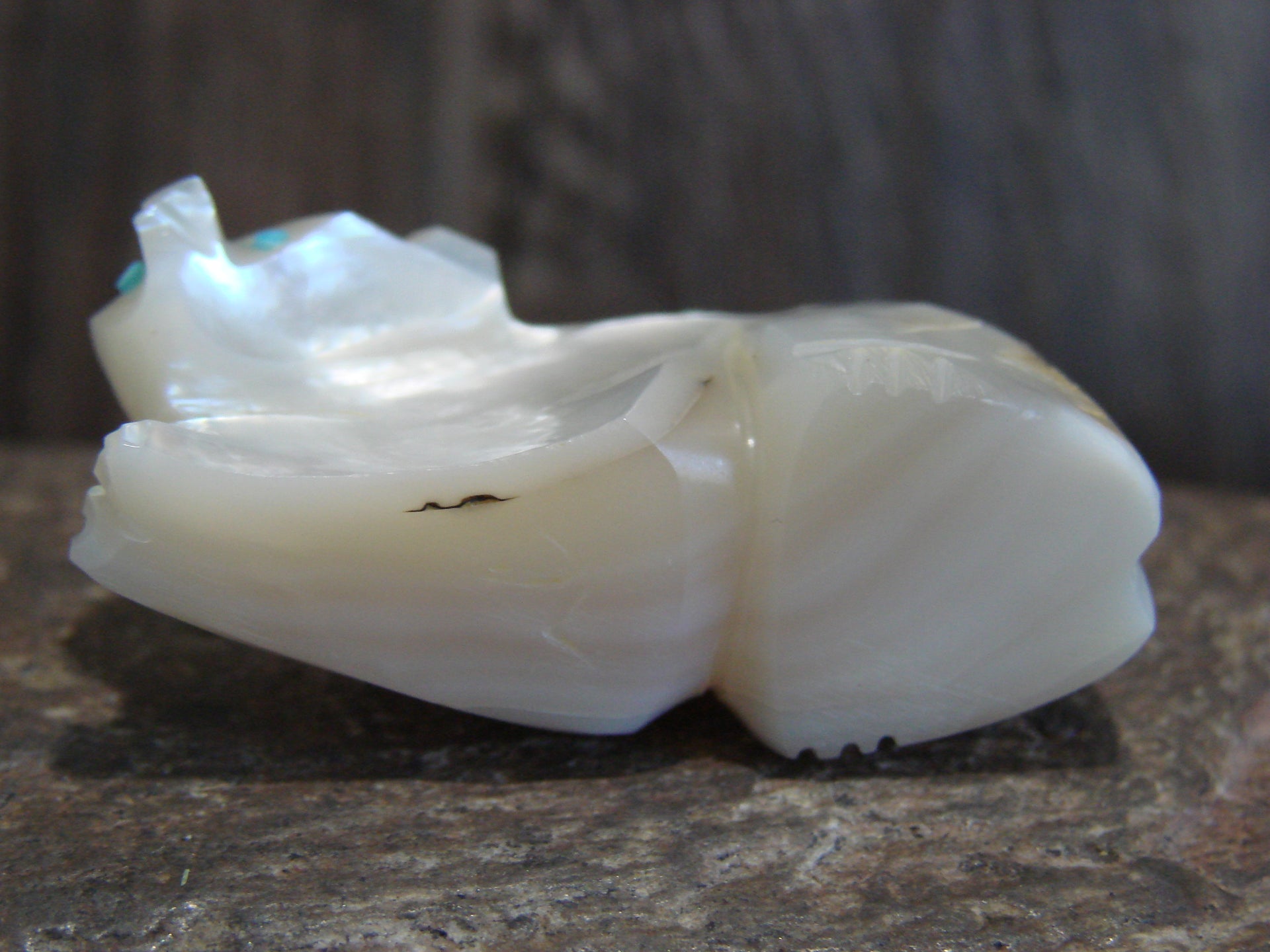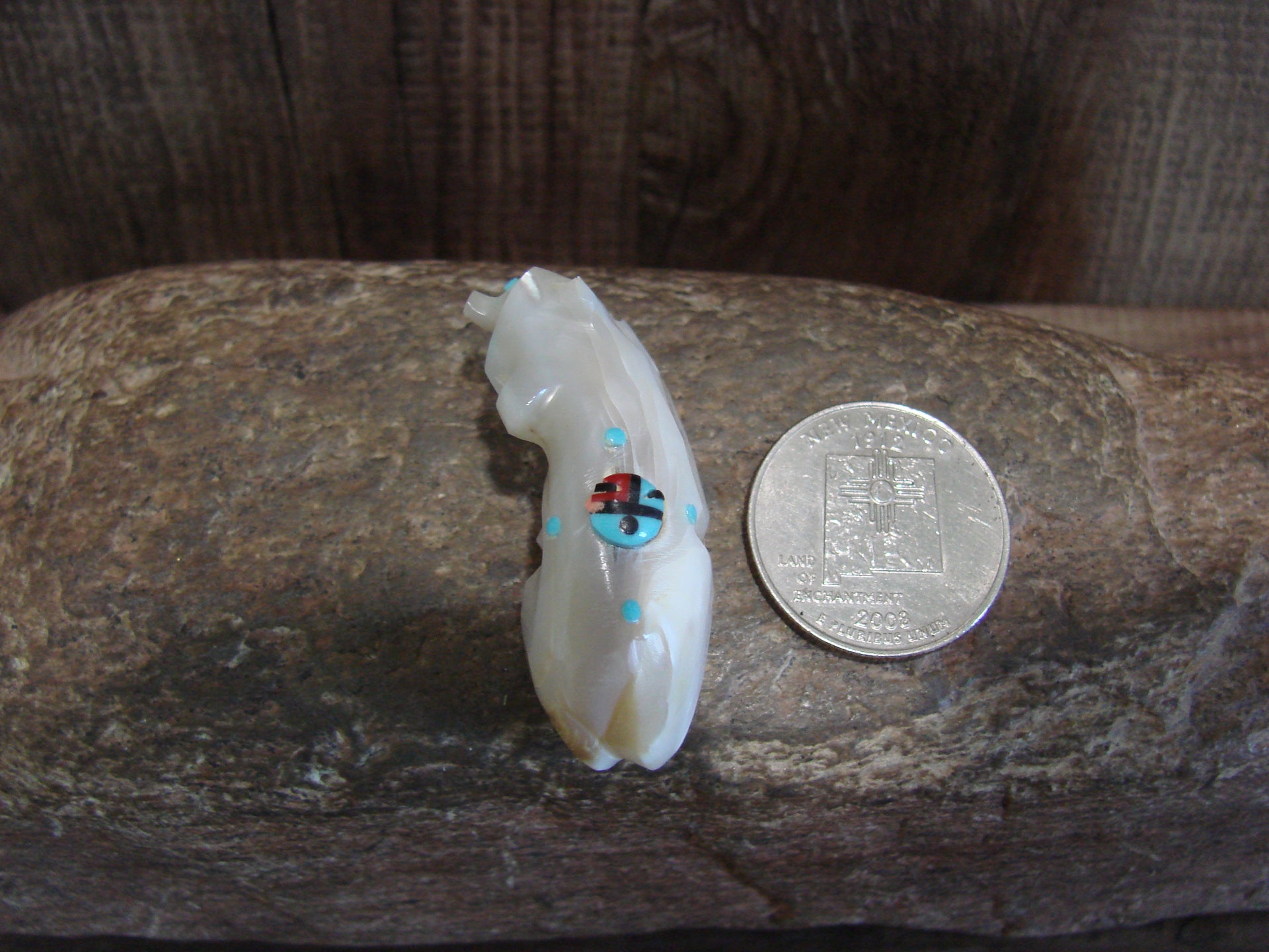 - Native American Zuni Indian Hand Carved Mother of Pearl Bear Fetish- Latte