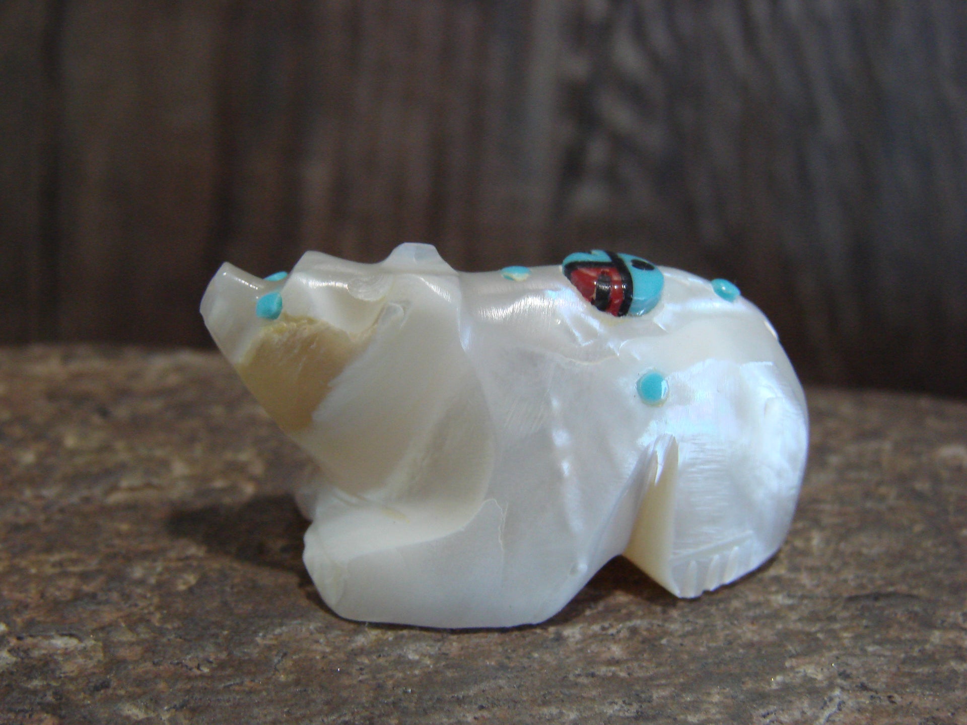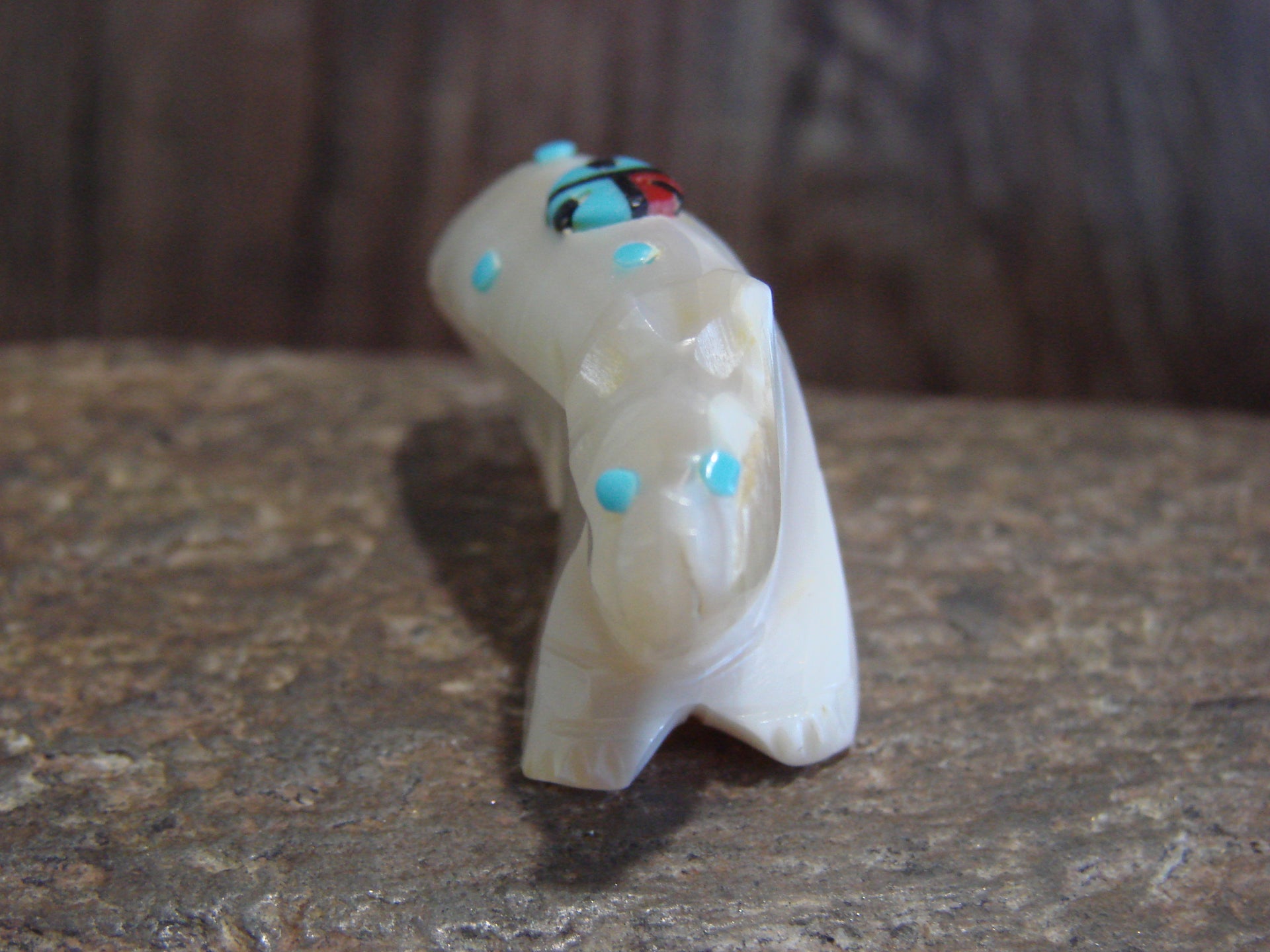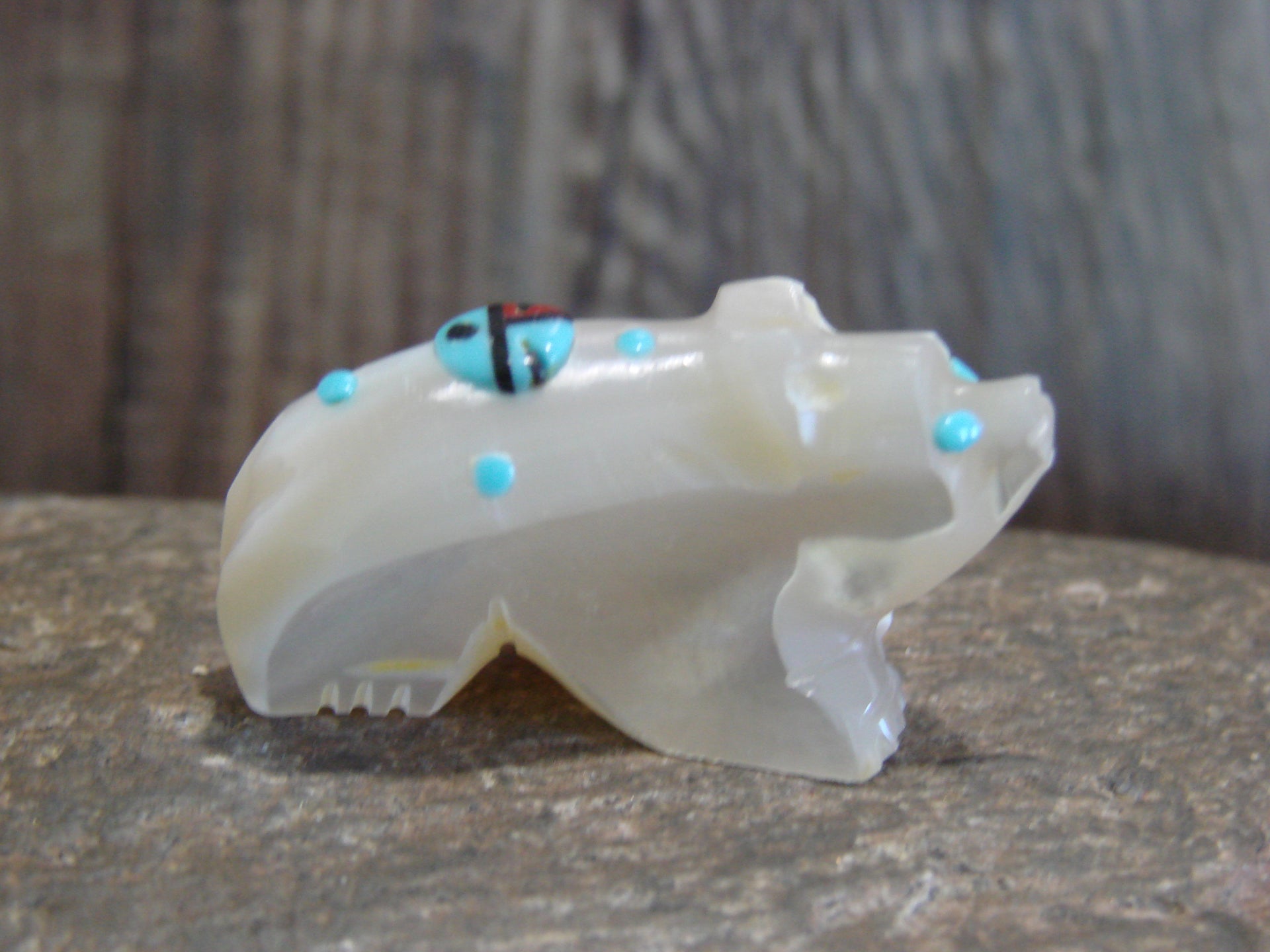 - Native American Zuni Indian Hand Carved Mother of Pearl Bear Fetish- Latte
