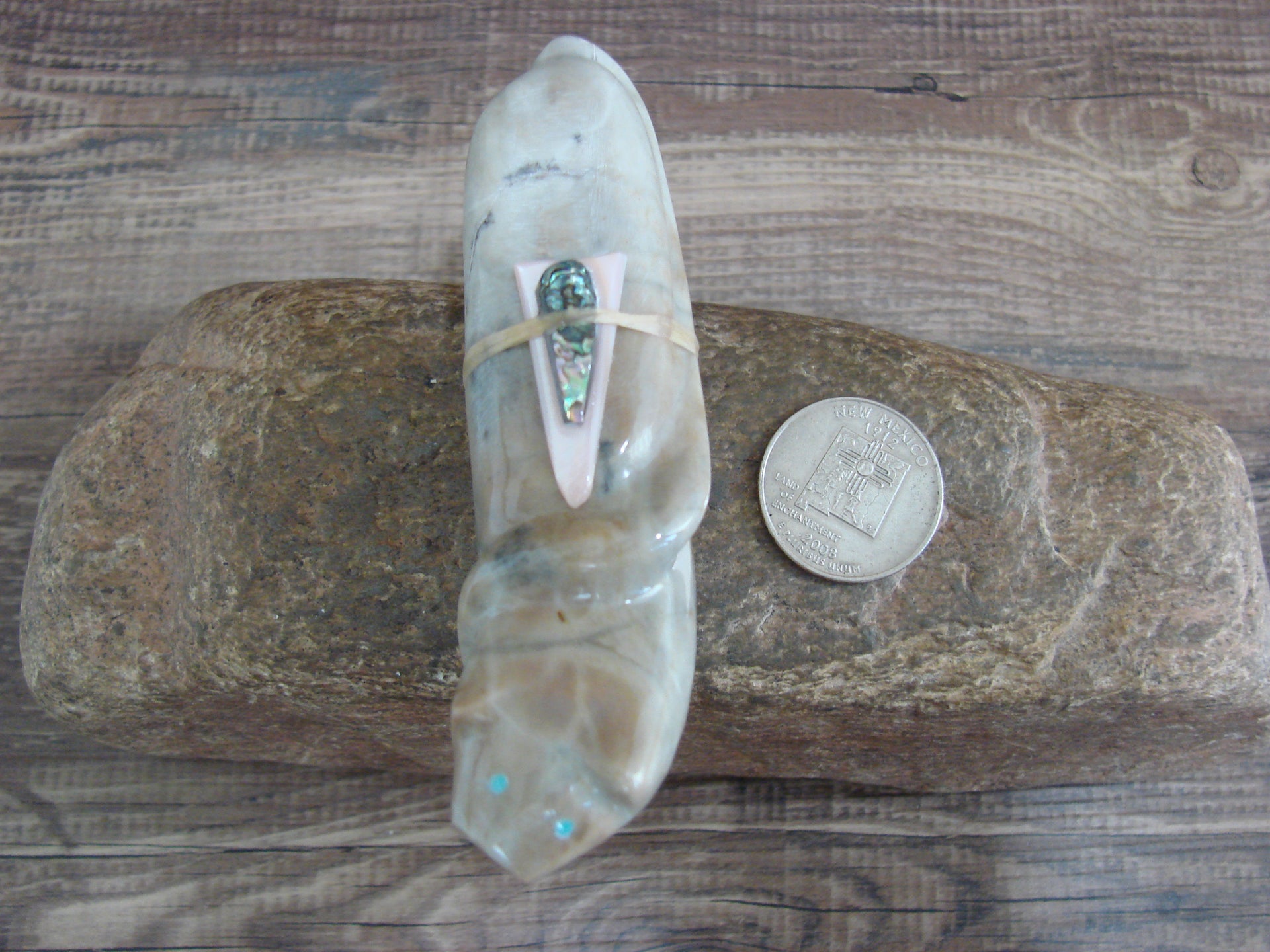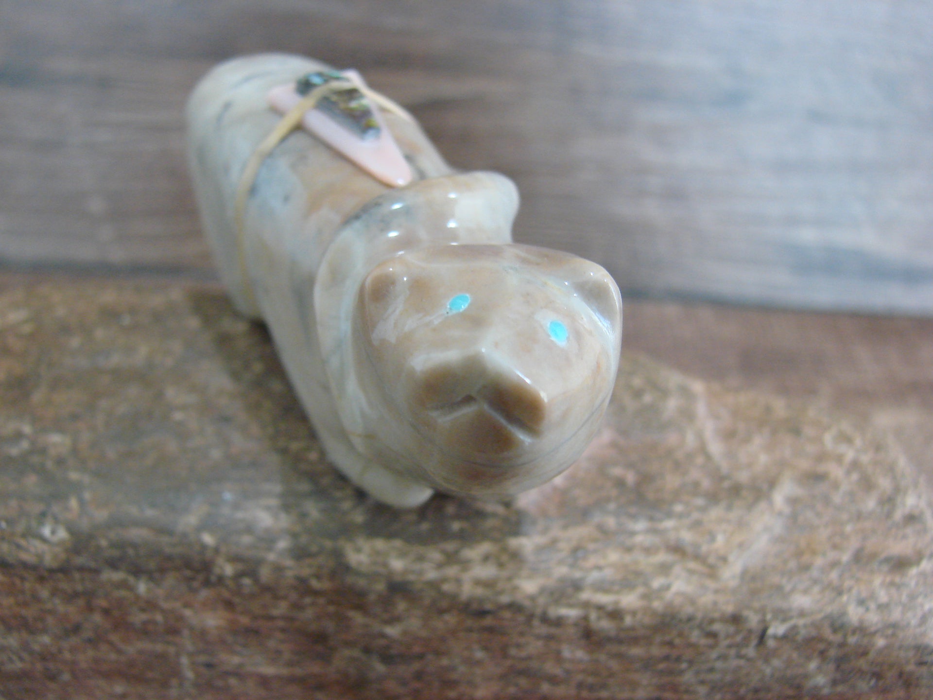 - Native American Zuni Indian Hand Carved Mountain Lion Marble Fetish- Leekya