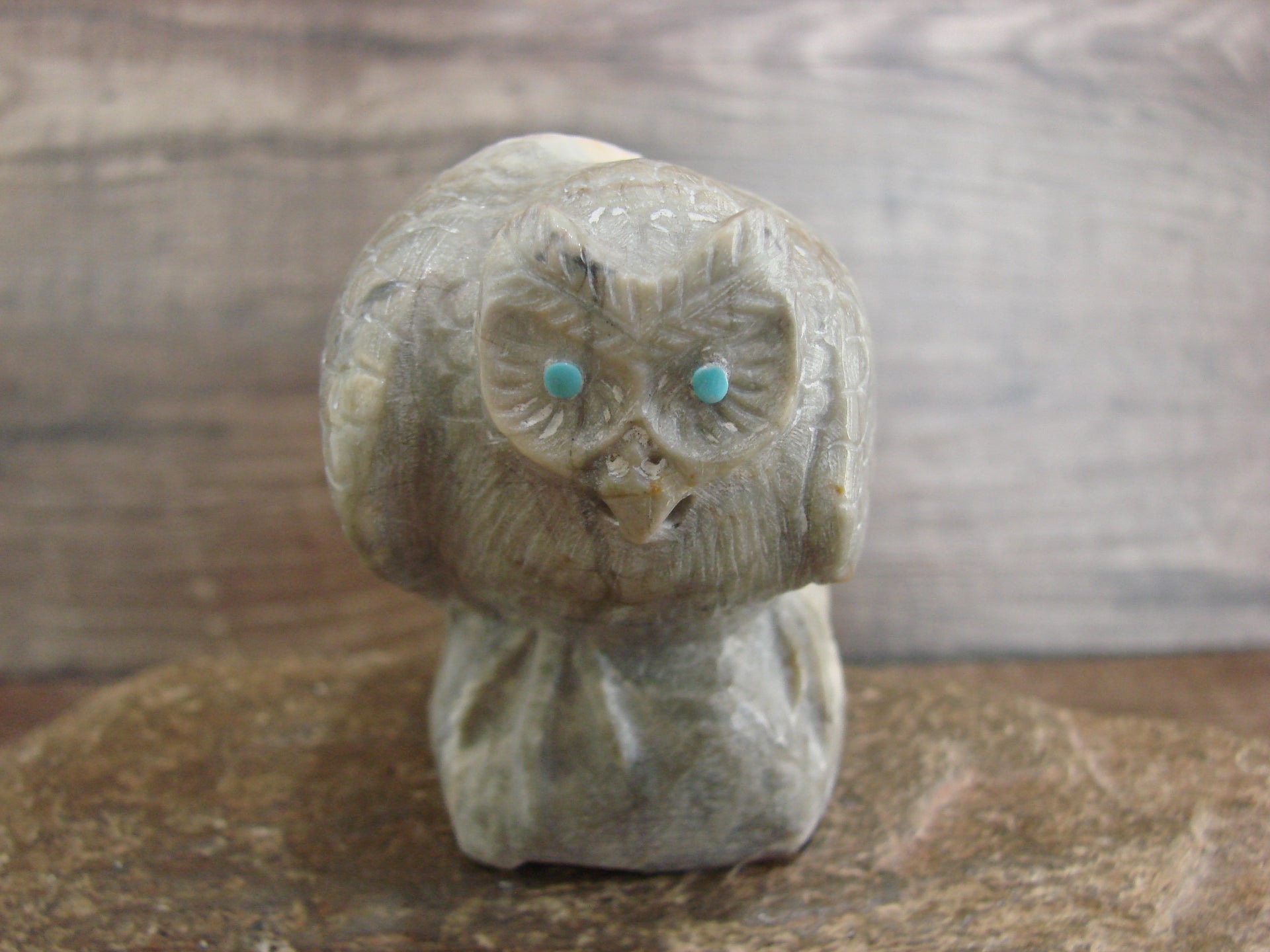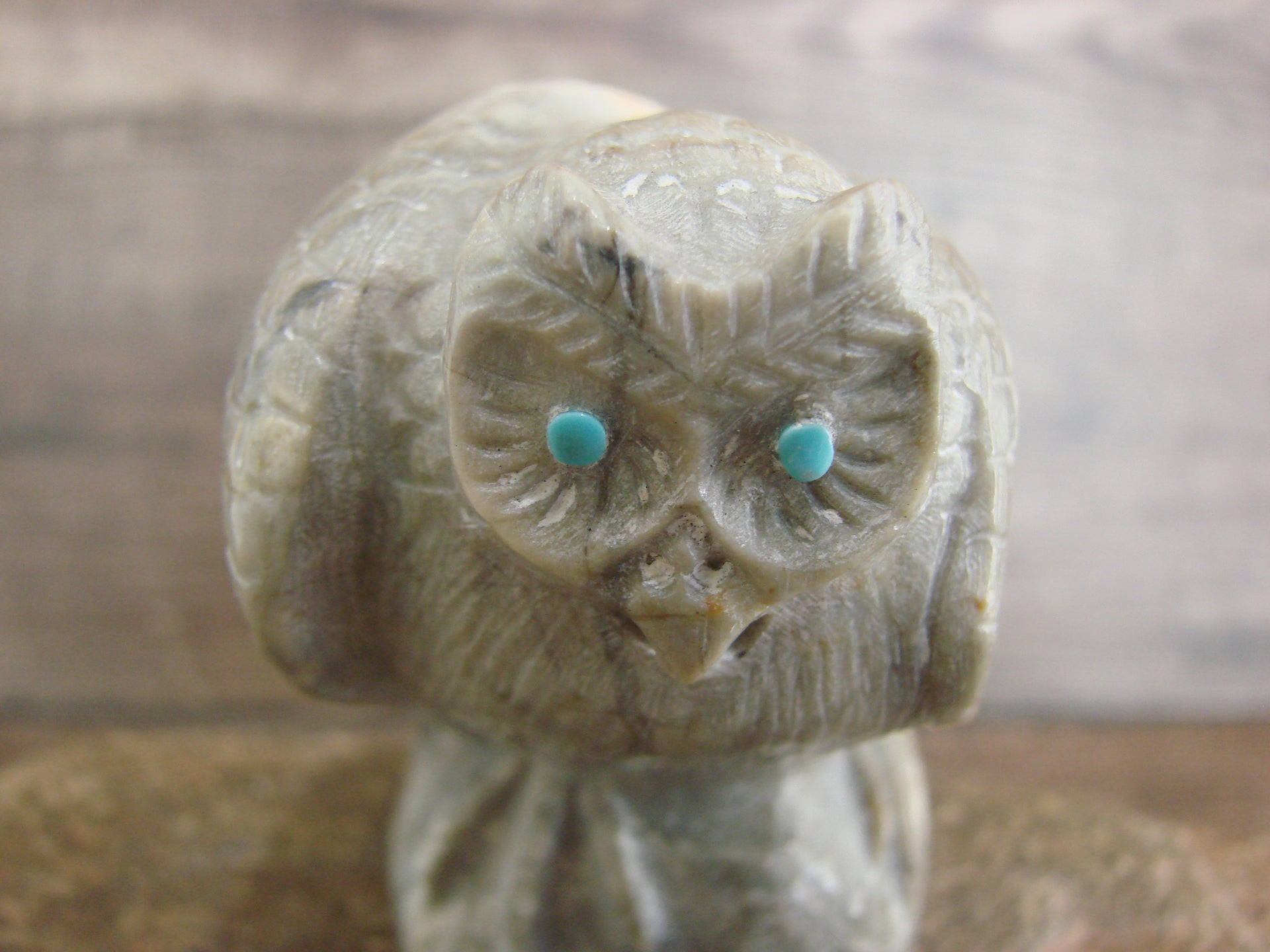 Native American Zuni Indian Hand Carved Owl Marble Fetish- Kaamasee