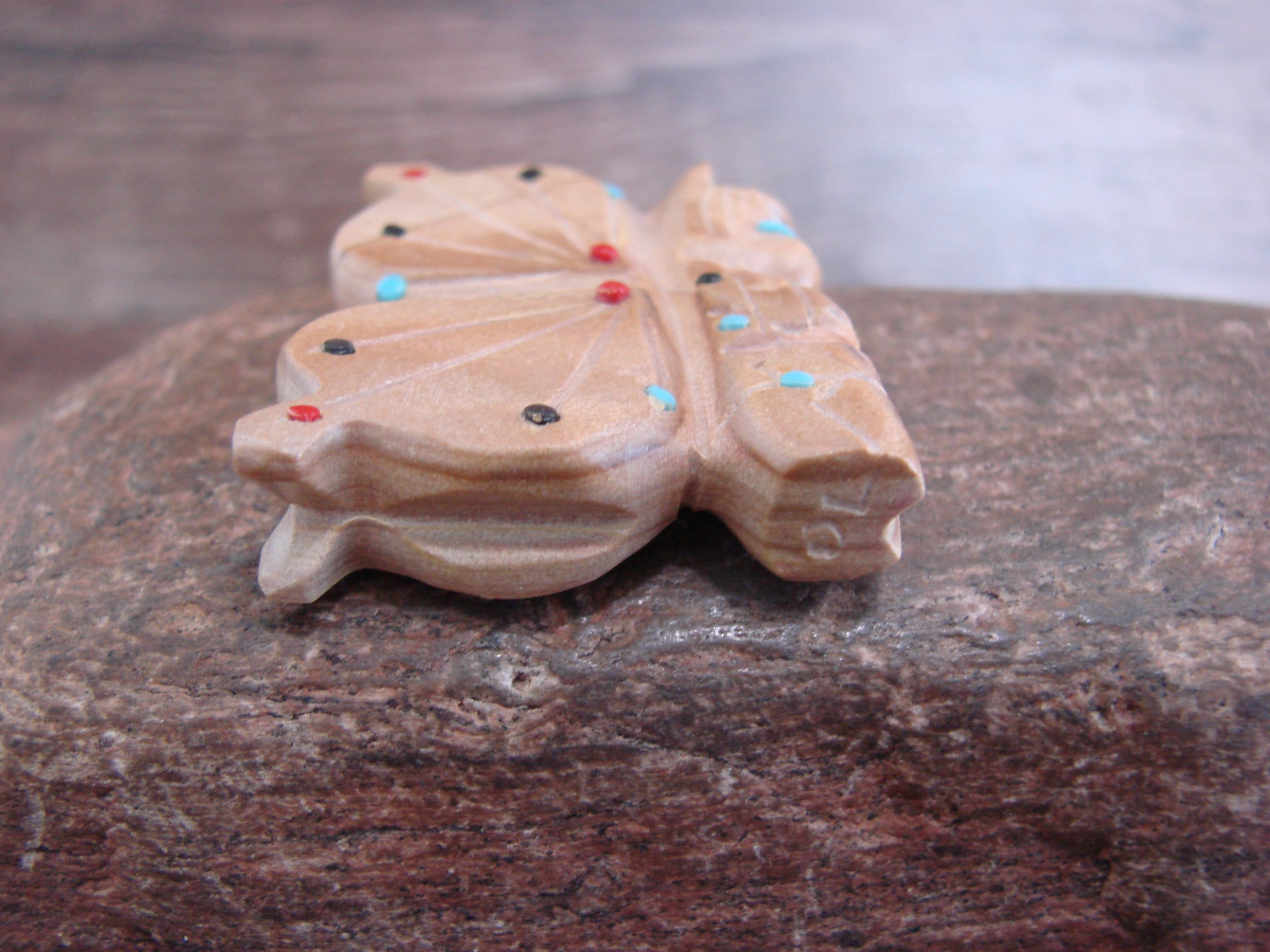 Authentic Native American Zuni Indian Hand Carved Heartline Butterfly Fetish from the Zuni Pueblo in Western New Mexico. This Stunning Fetish is Hand Carved out of a beautiful piece of Jasper. Turquoise is used for both the eyes. This is a unique and stunning piece! Handmade by the Zuni carver Danette Laate. Signed on the bottom. Free Shipping included!