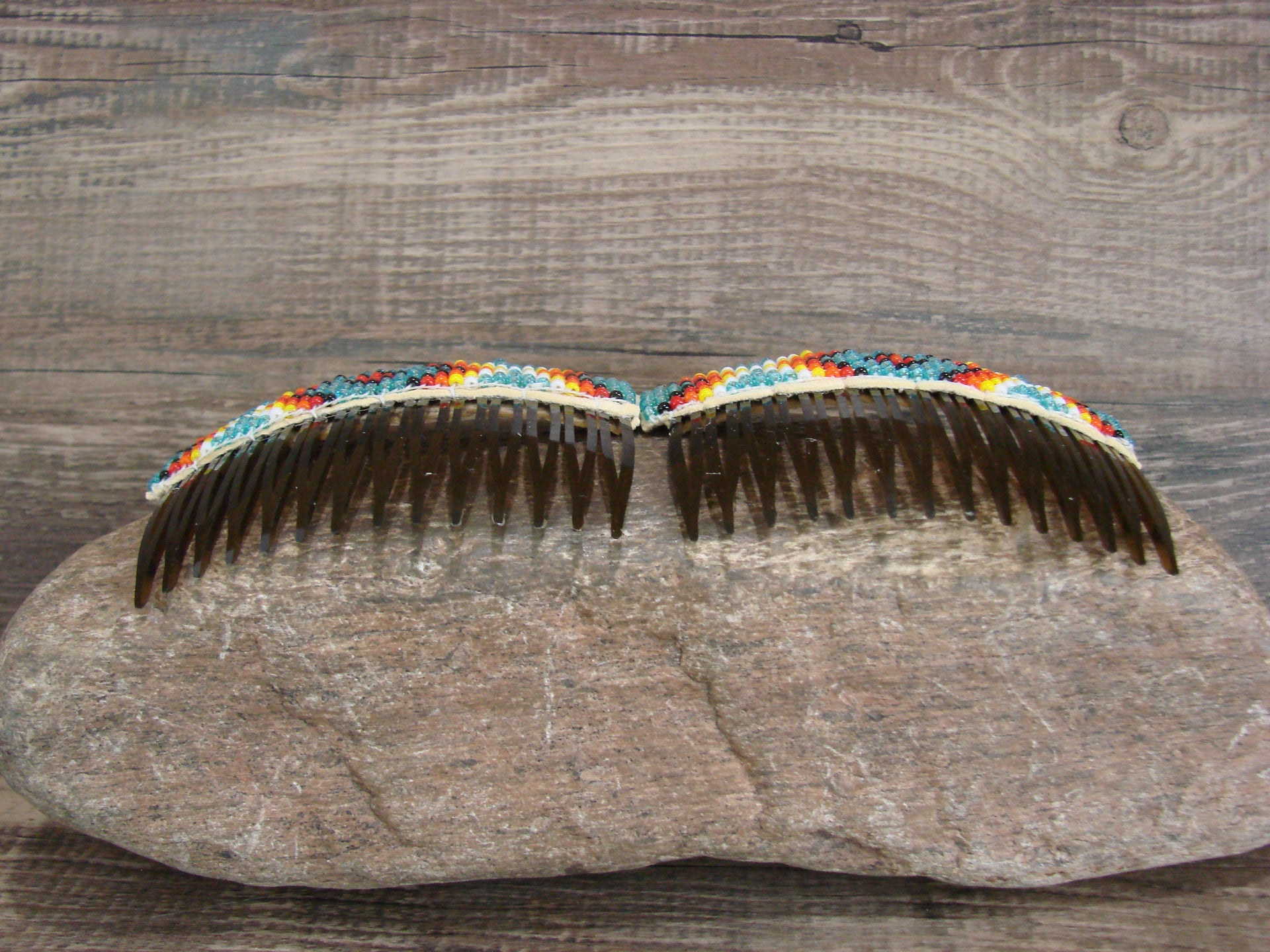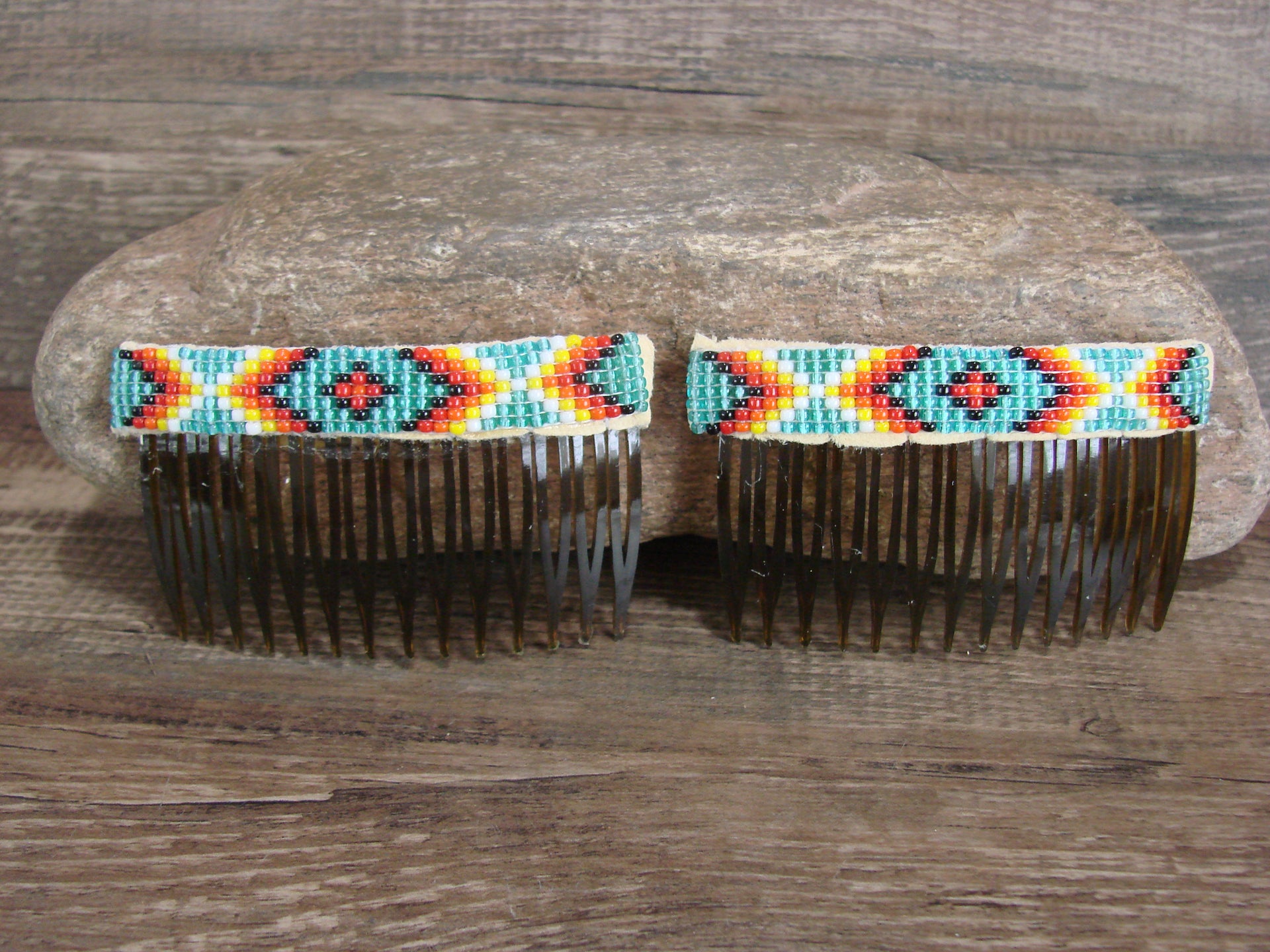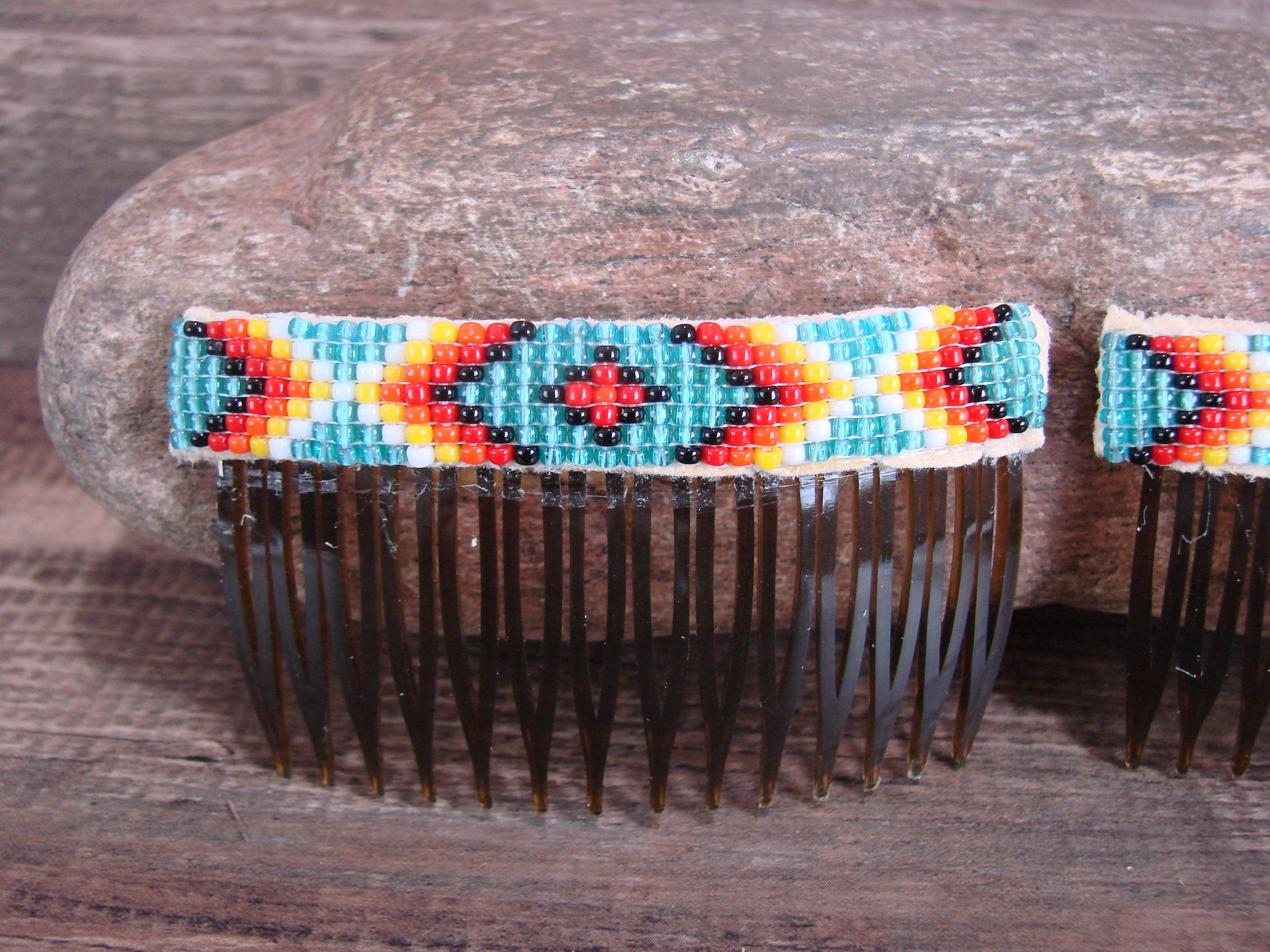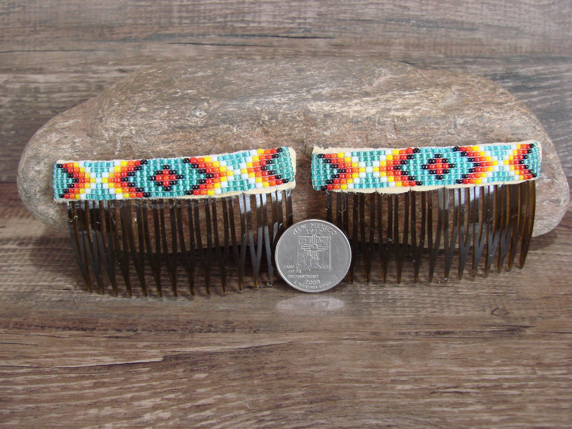 Navajo Indian Hand Beaded Hair Comb Set by Cleveland