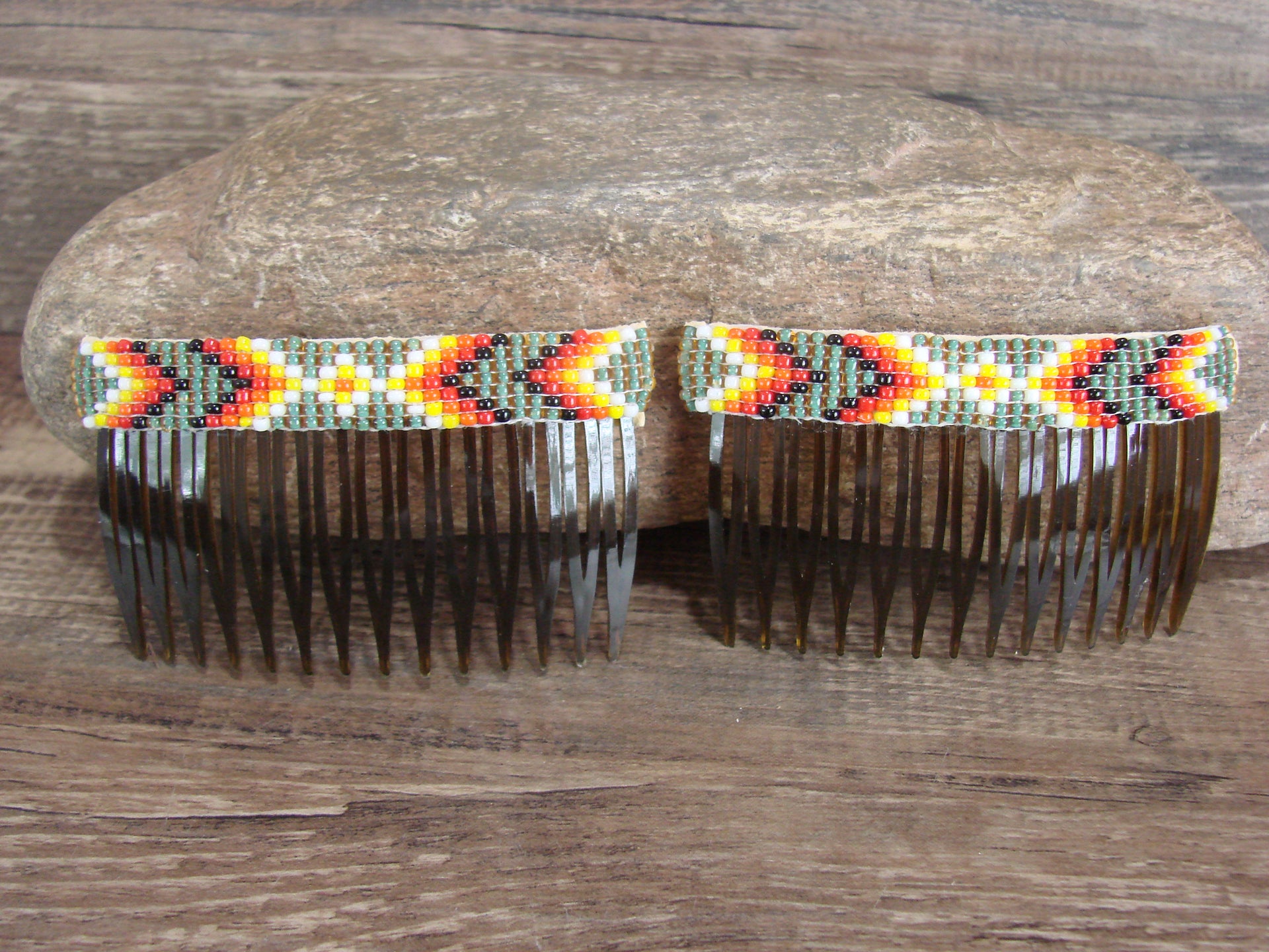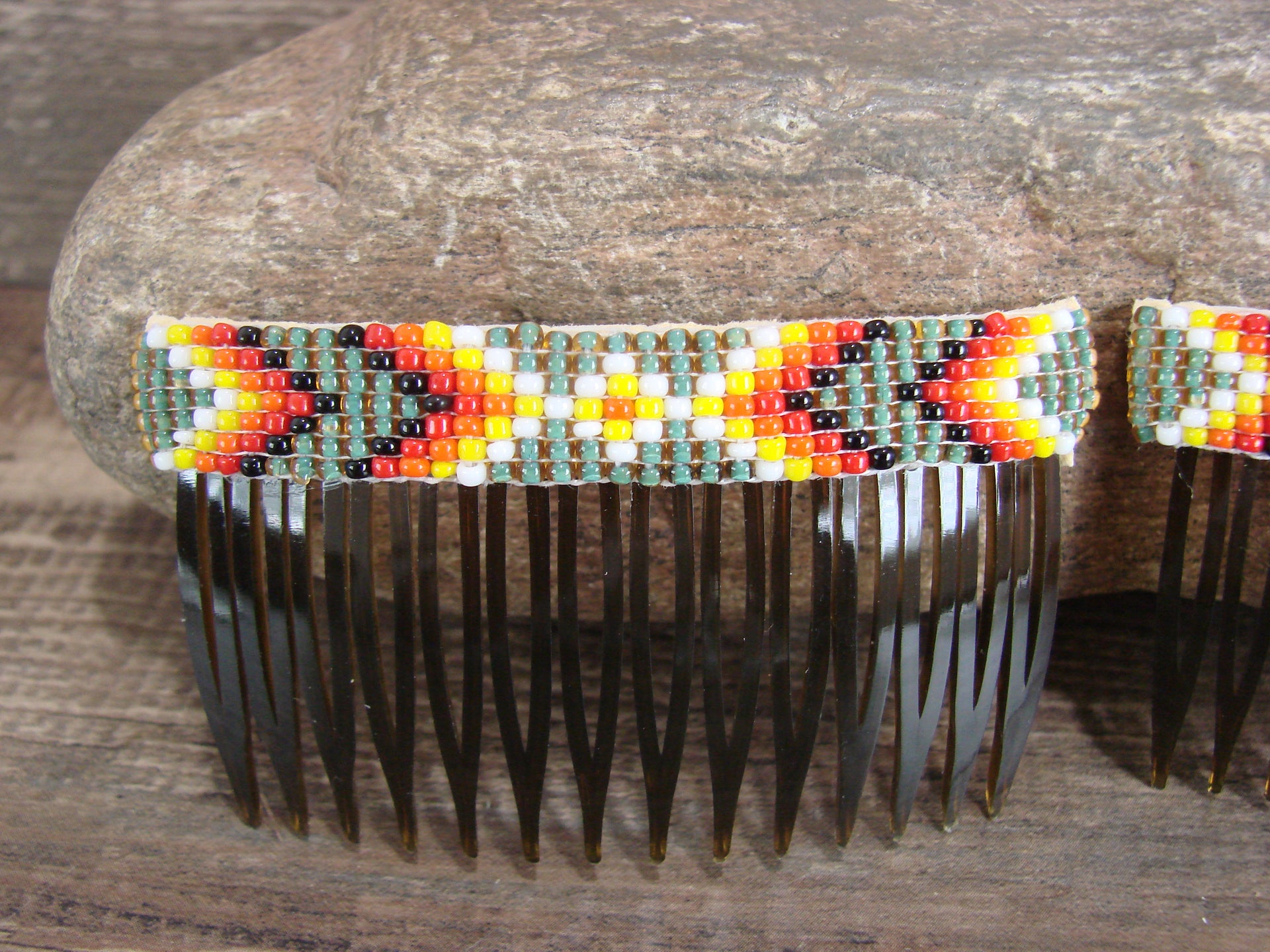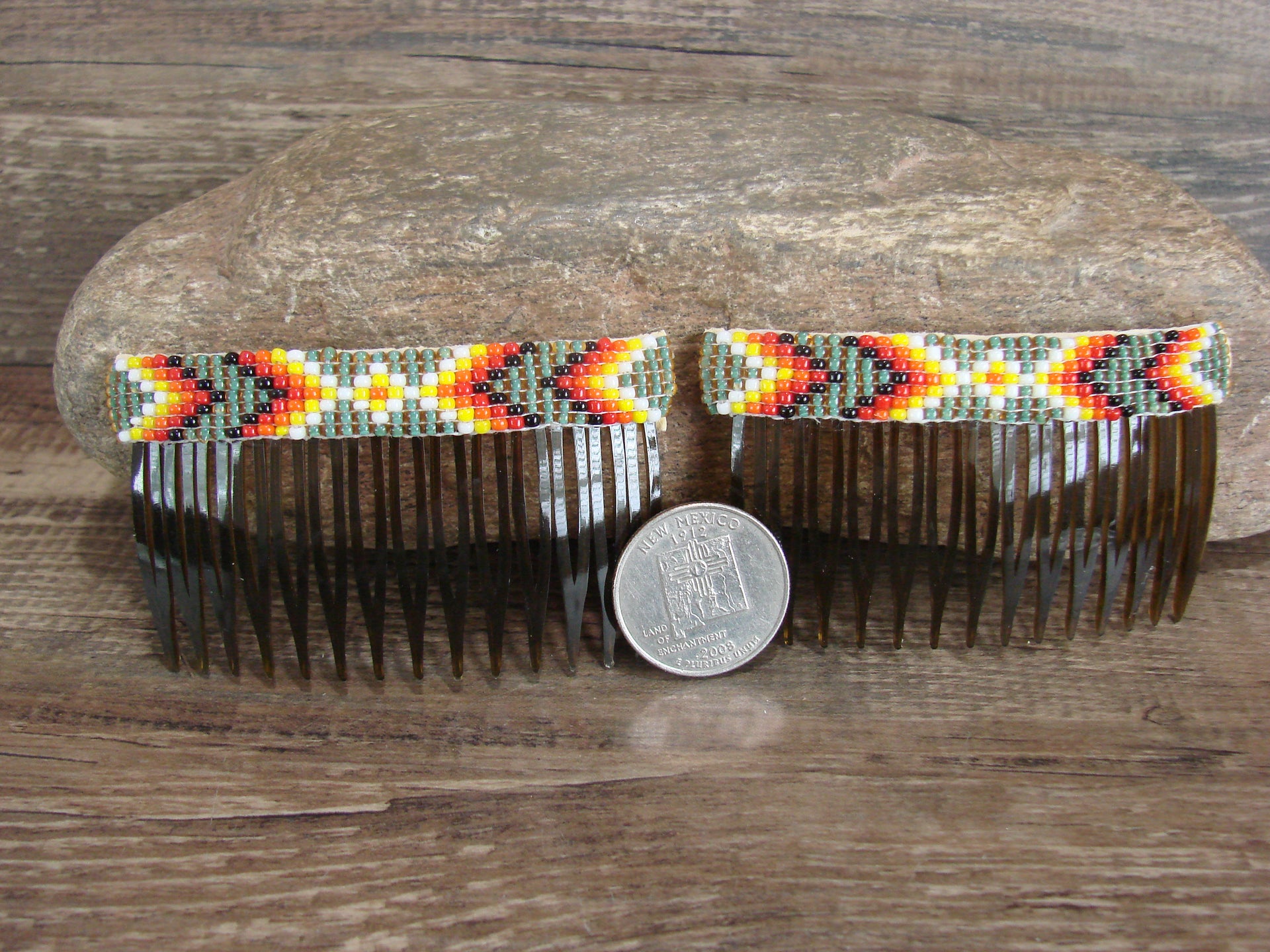Navajo Indian Hand Beaded Hair Comb Set by Cleveland