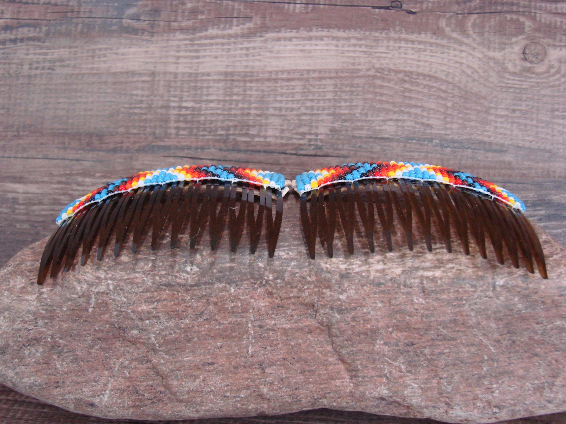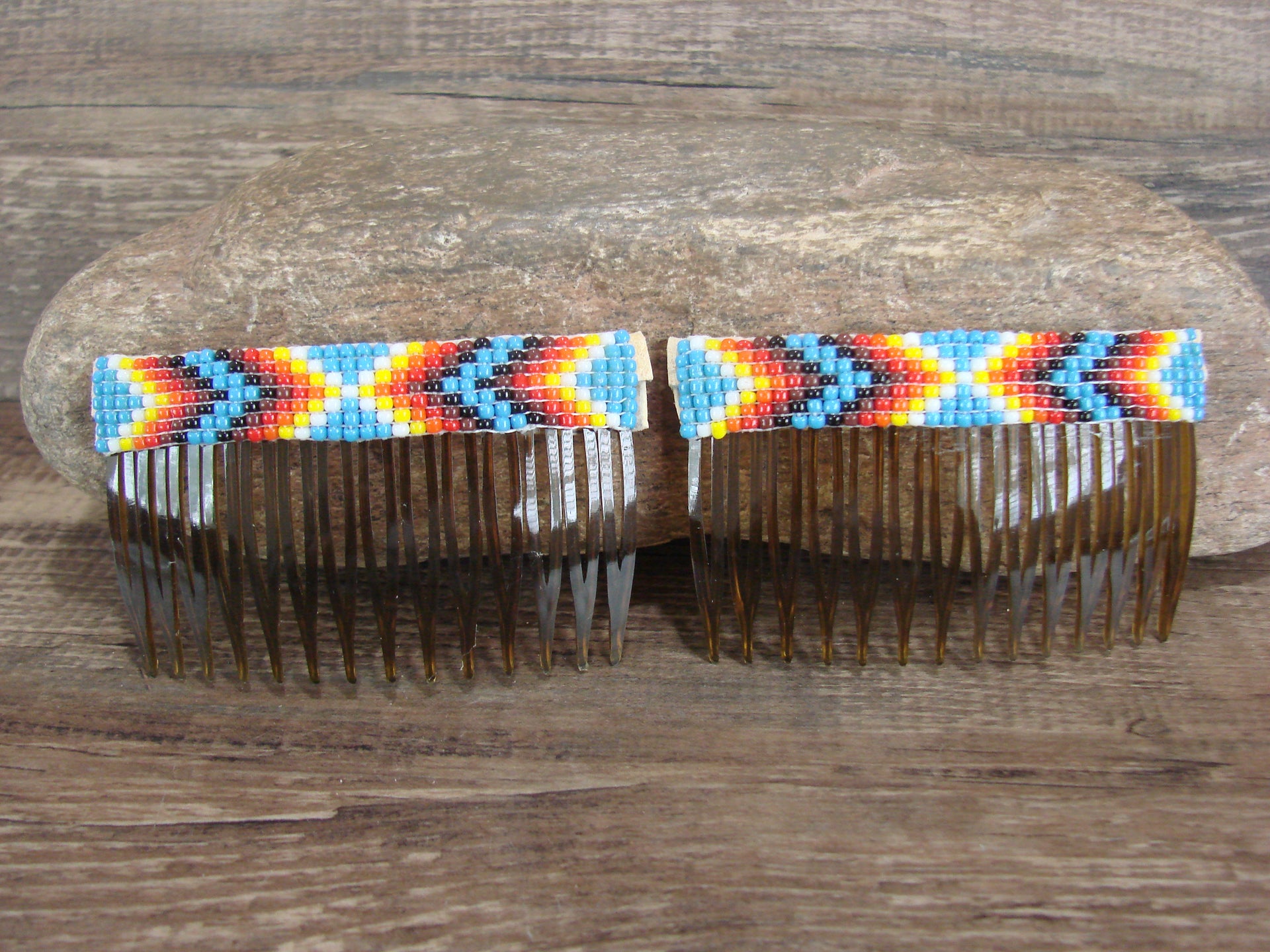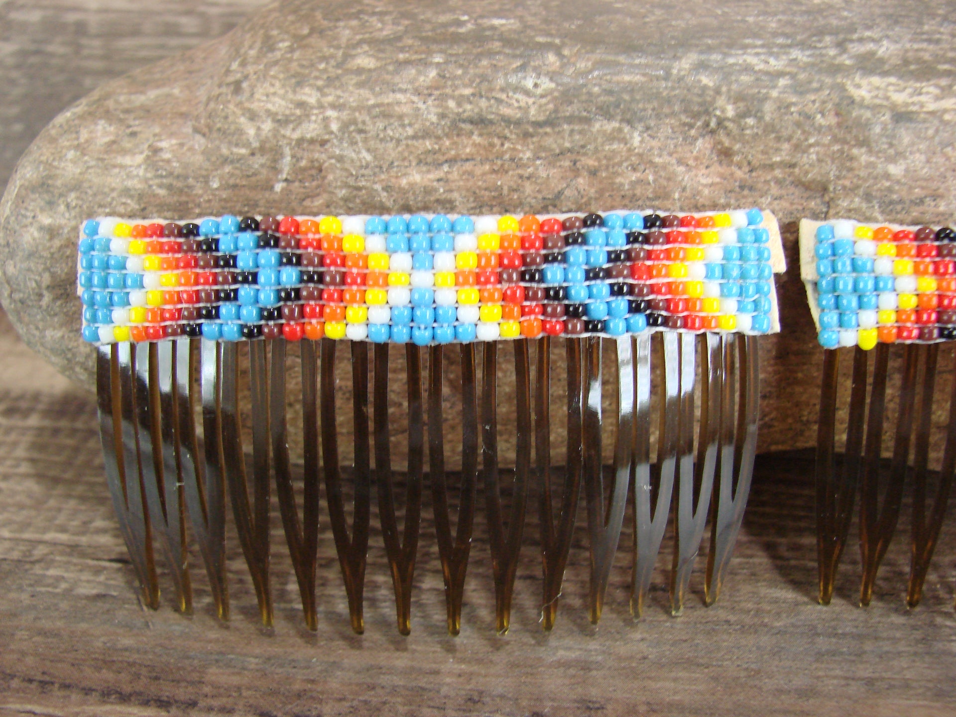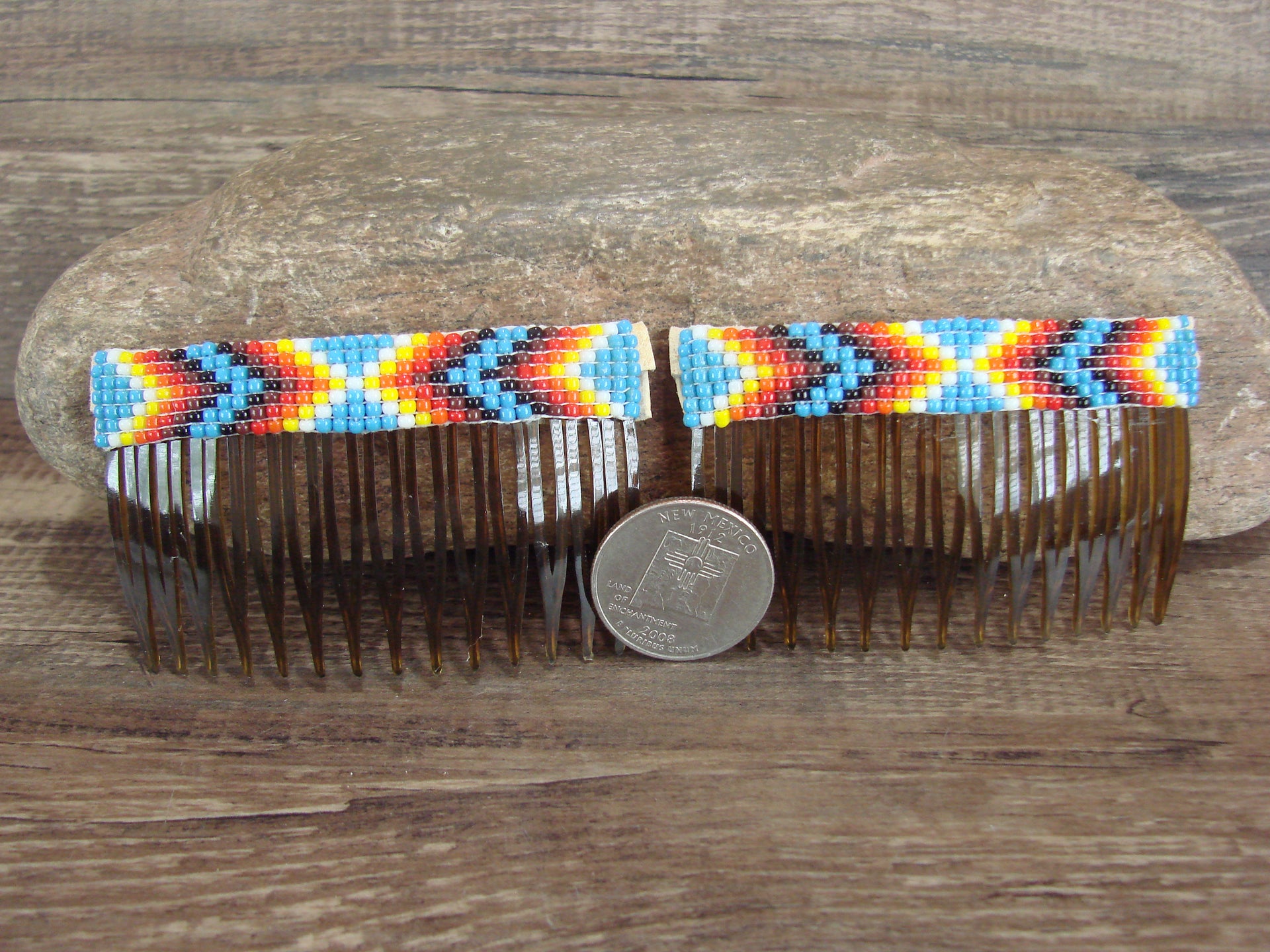 Navajo Indian Hand Beaded Hair Comb Set by Cleveland