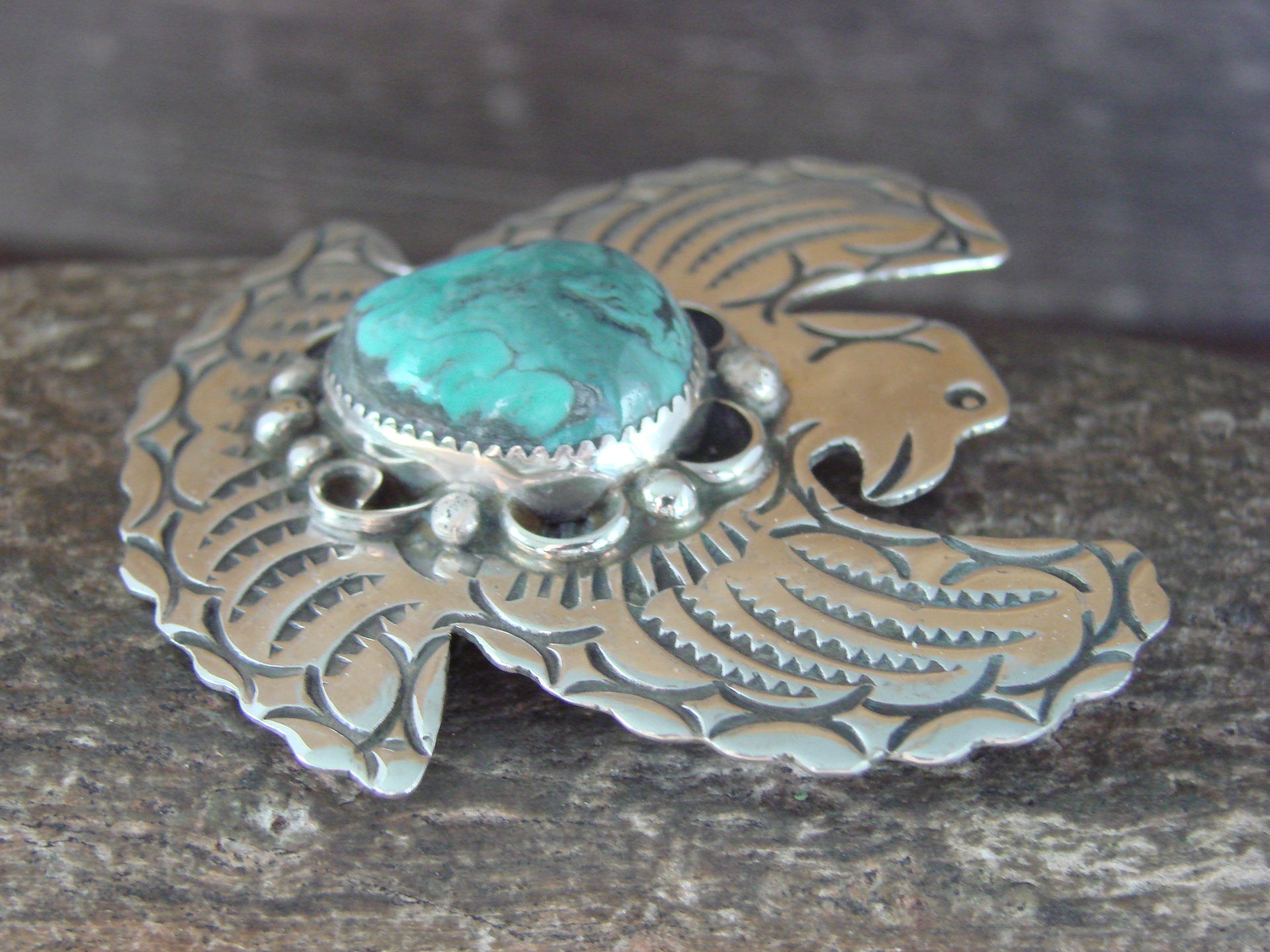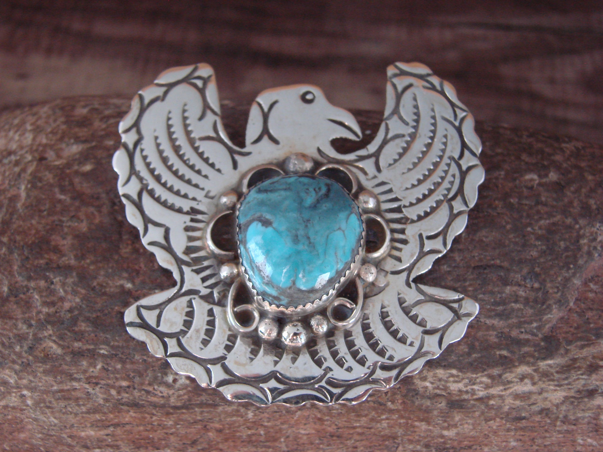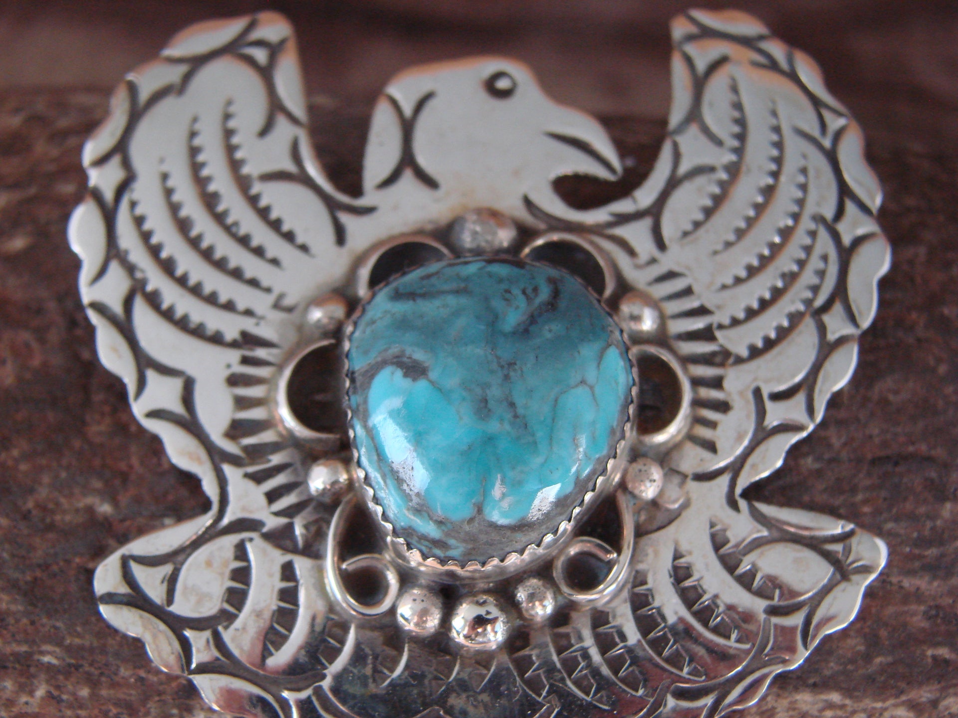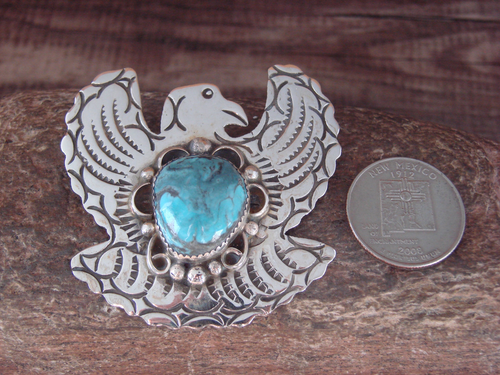 Navajo Indian Sterling Silver & Turquoise Eagle Pin Pendant - Cleveland