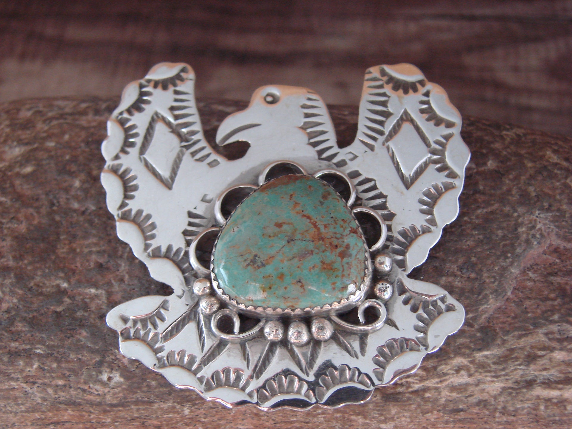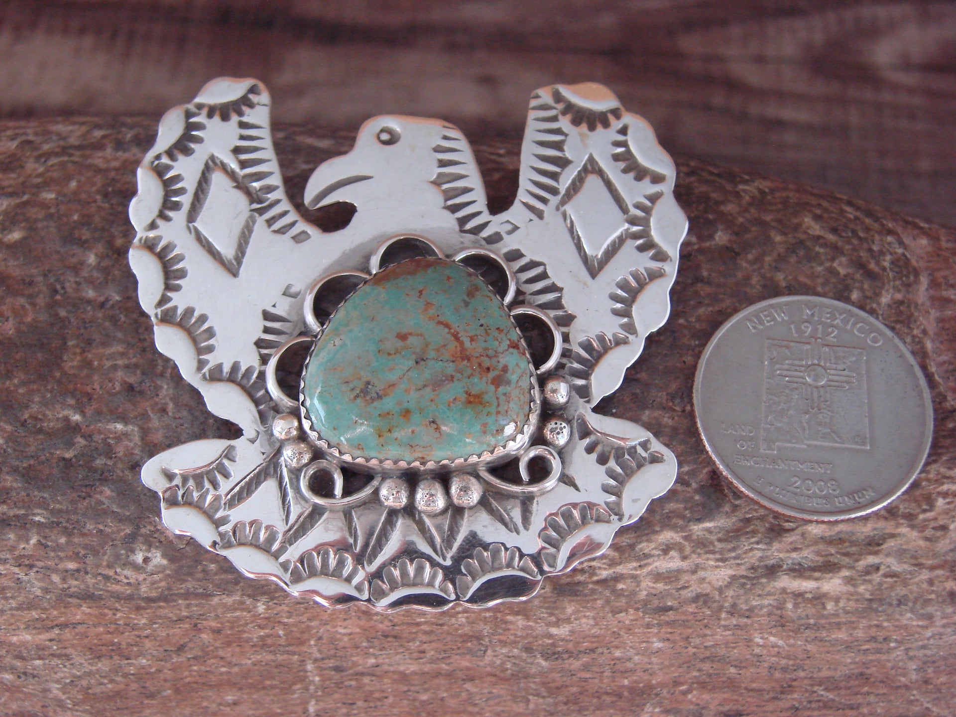 - Navajo Indian Sterling Silver & Turquoise Eagle Pin Pendant - Cleveland