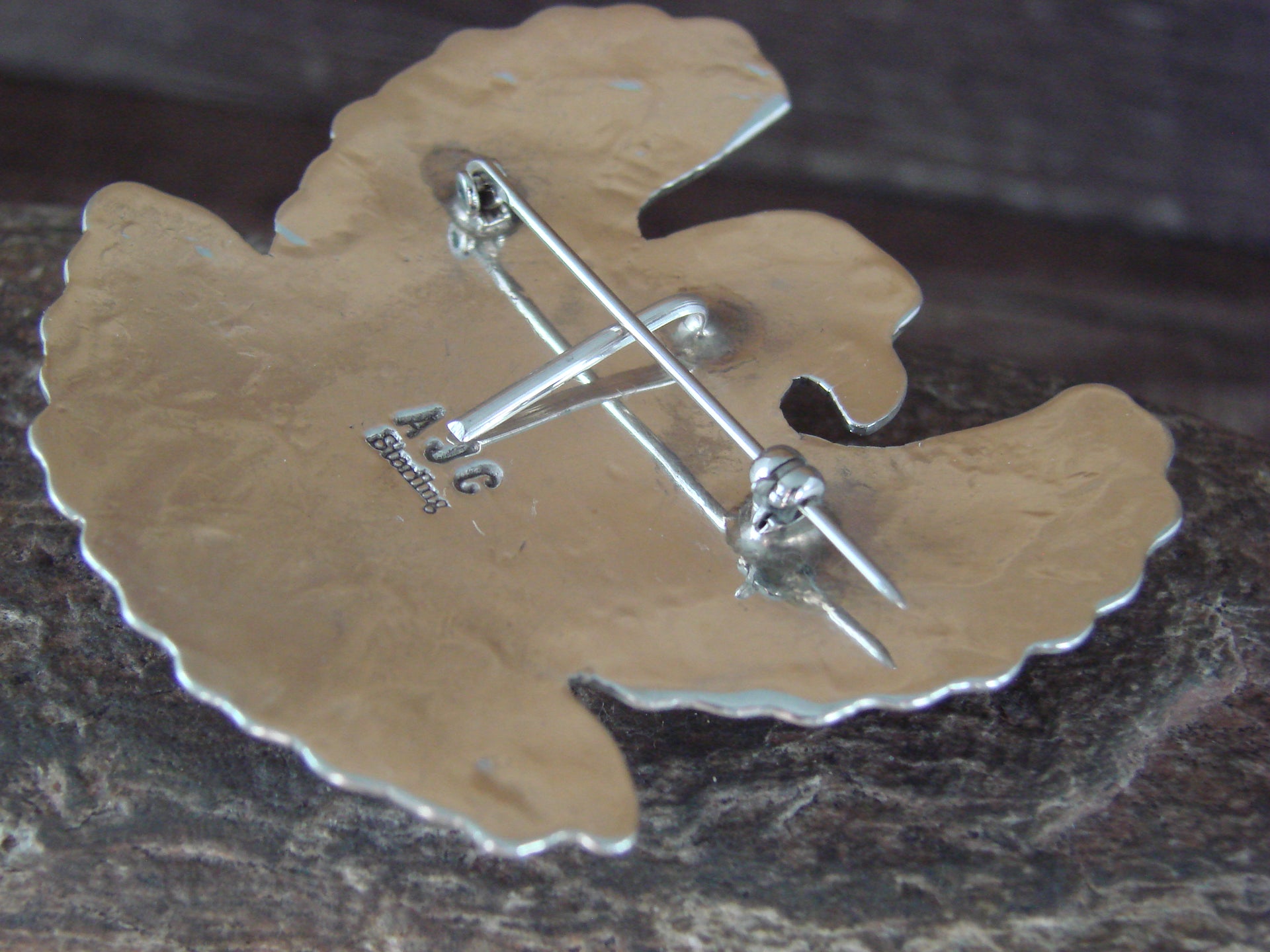 Native American Navajo Indian Sterling Silver & Turquoise Eagle Pendant Pin from Western New Mexico. This beautiful Eagle is hand cut from Sterling Silver and features stunning traditional hand stamping throughout. The Genuine Turquoise stone is securely set into a crown bezel setting. Handmade by Jackie Cleveland, wife of the late Navajo Silversmith Albert Cleveland. Signed "AJC" on back. Jackie is widely known for her traditional Navajo style and hand stamping. Free gift box and shipping included!