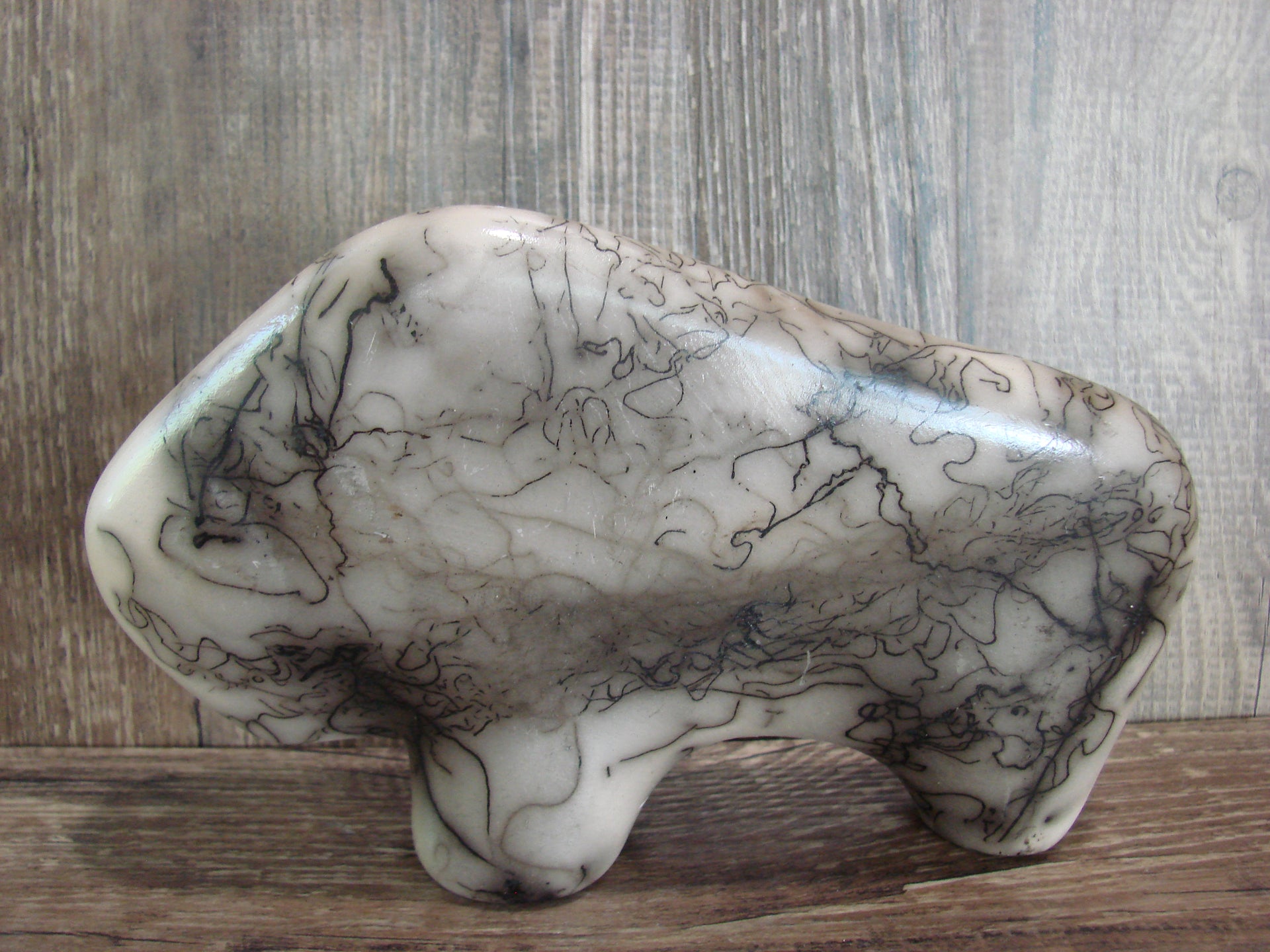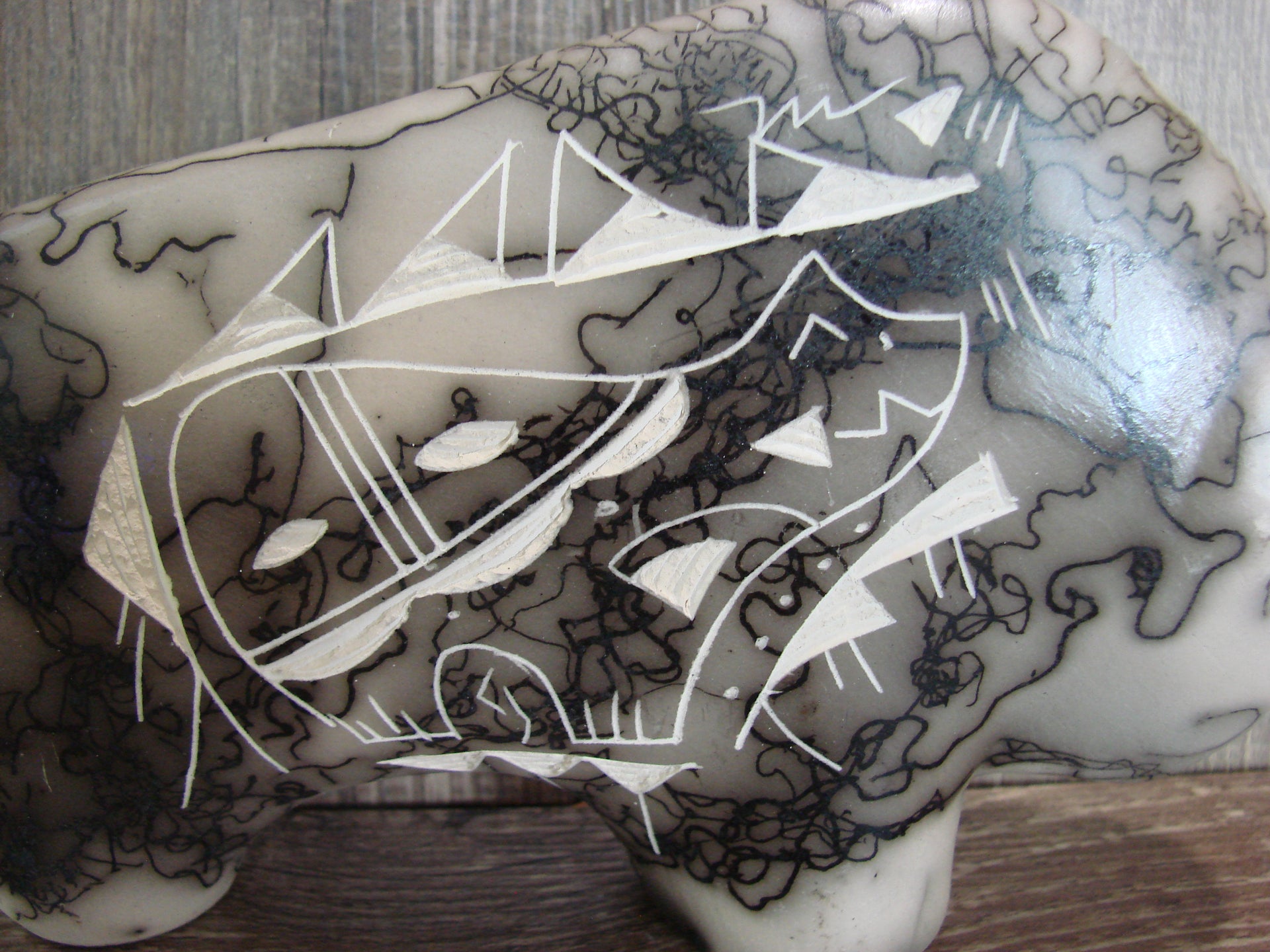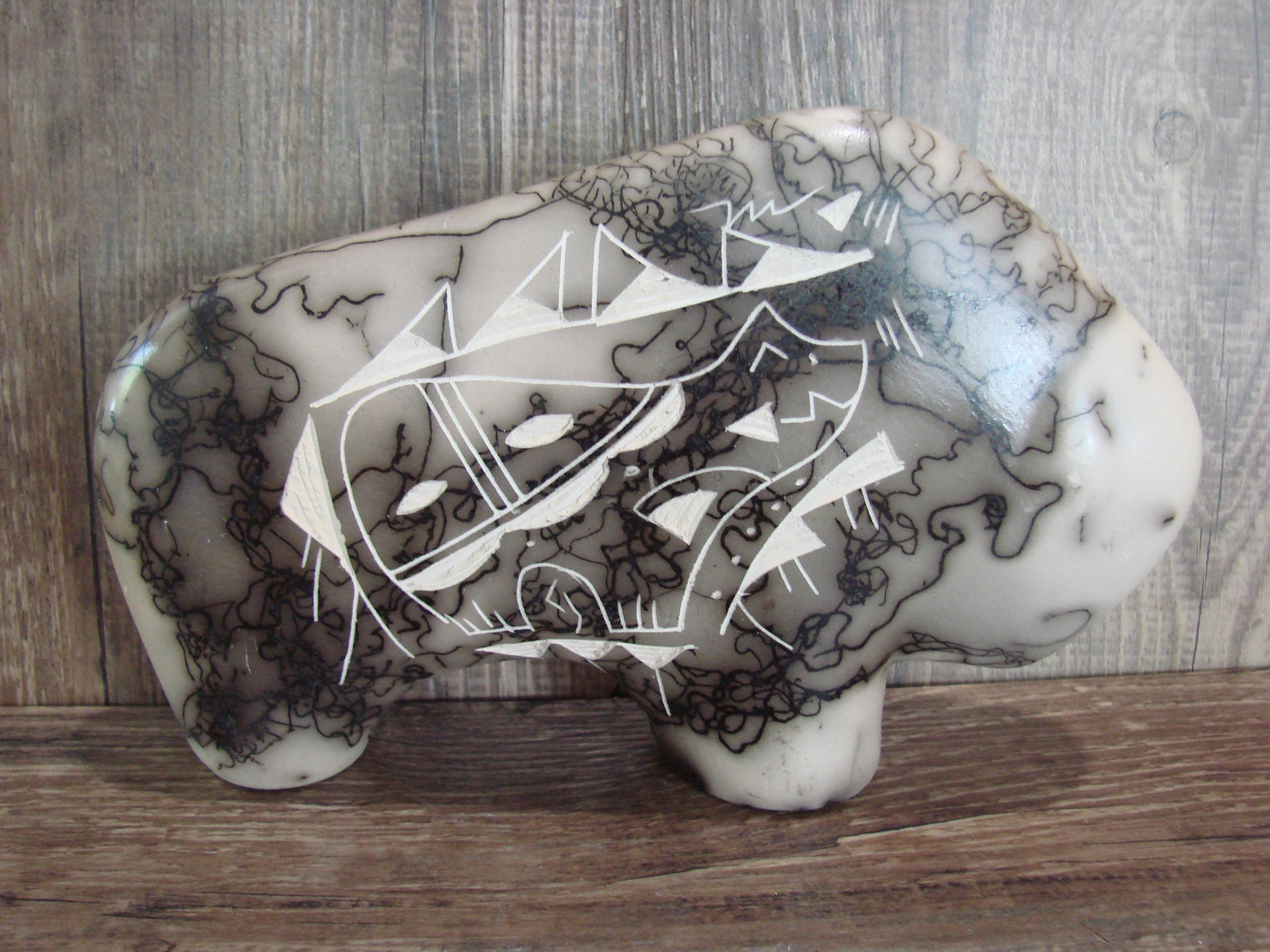 Navajo Pottery Horse Hair Buffalo Sculpture by Vail