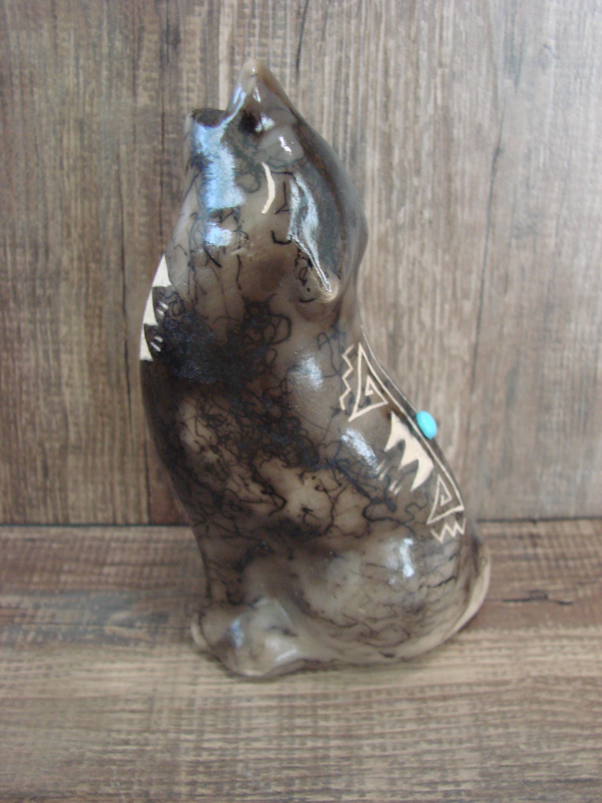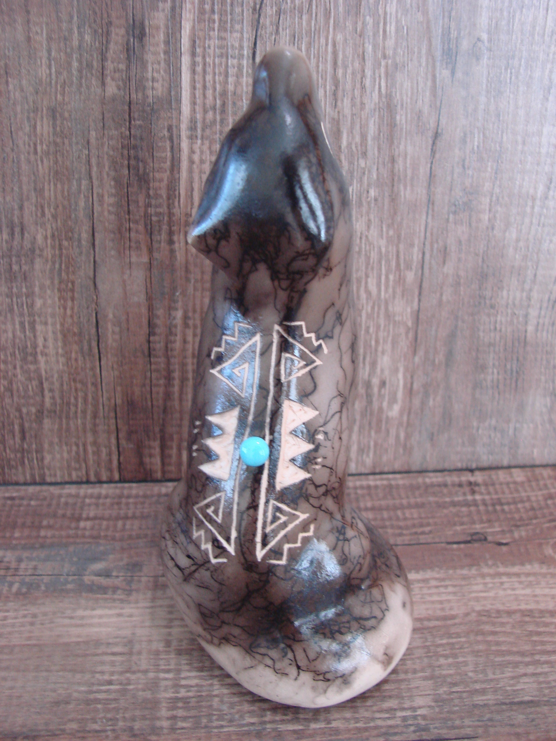 Navajo Pottery Horse Hair Howling Wolf Sculpture by Vail