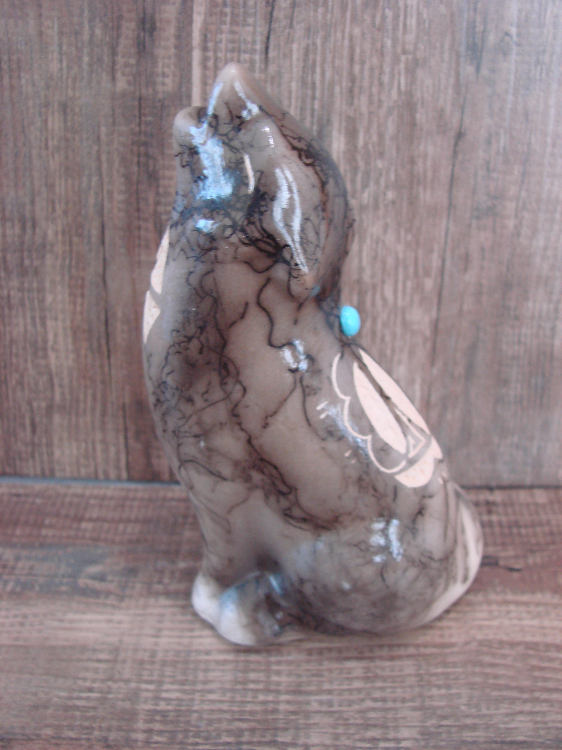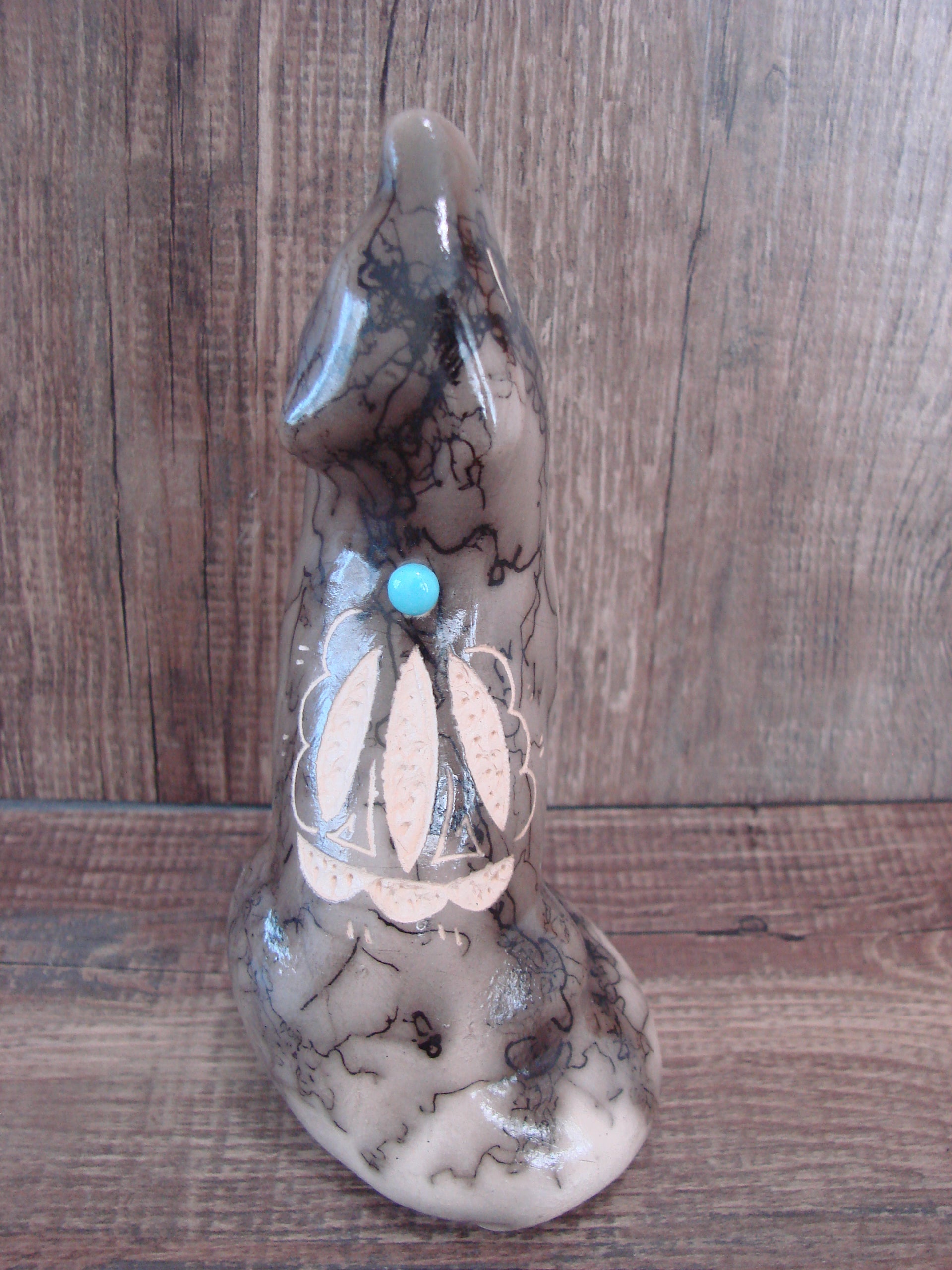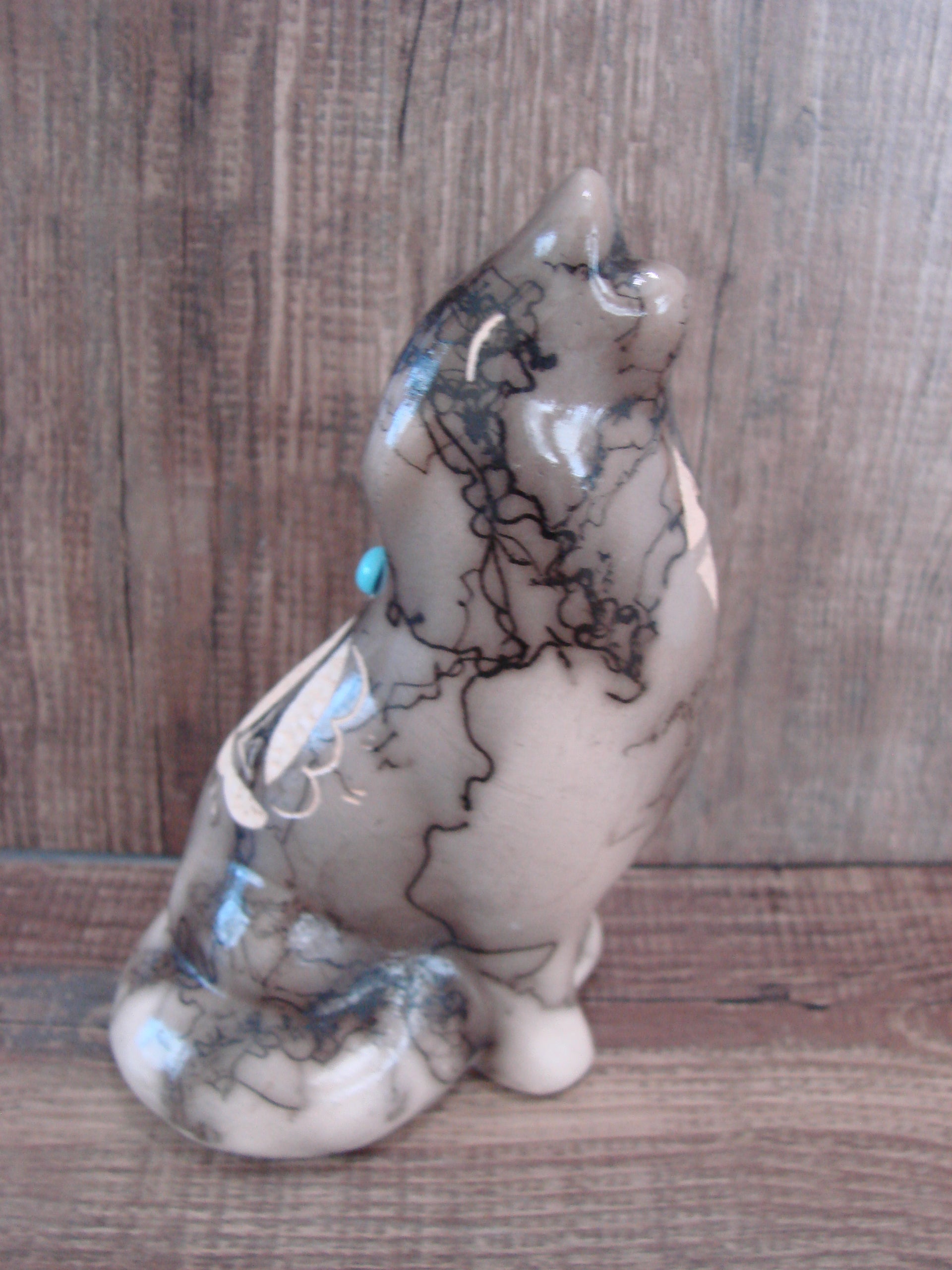 Navajo Pottery Horse Hair Howling Wolf Sculpture by Vail